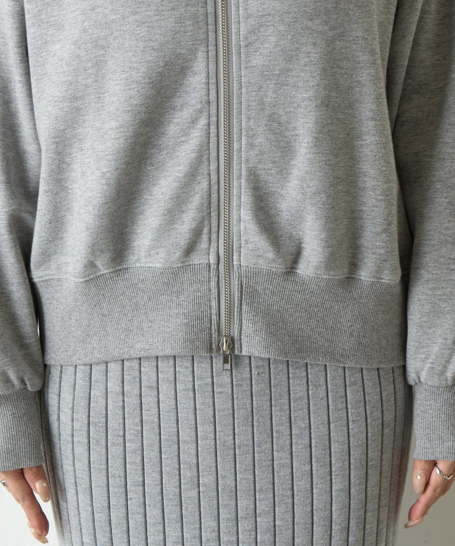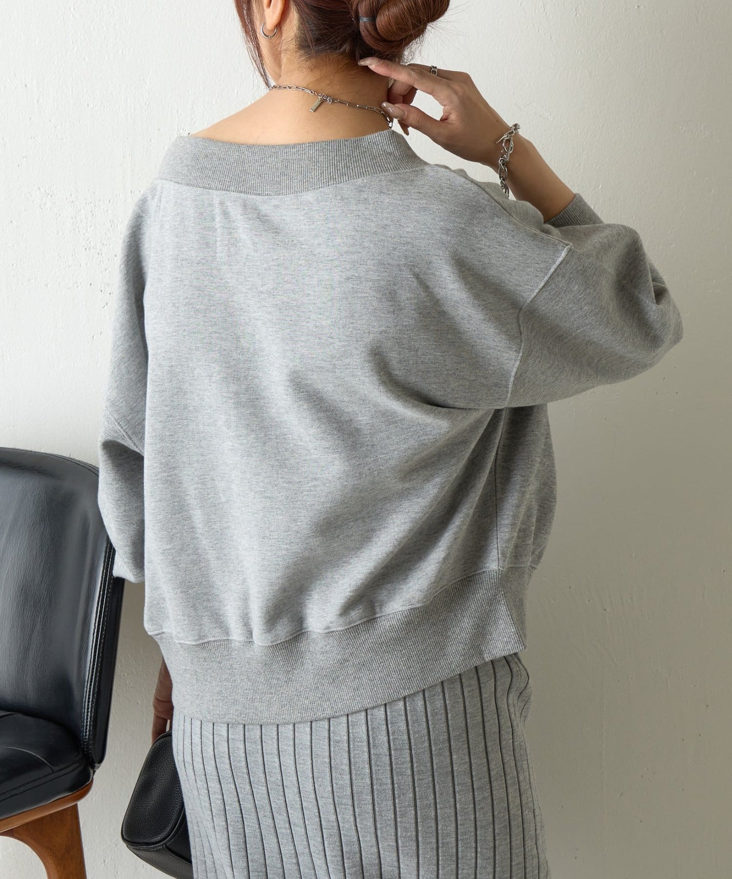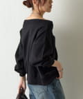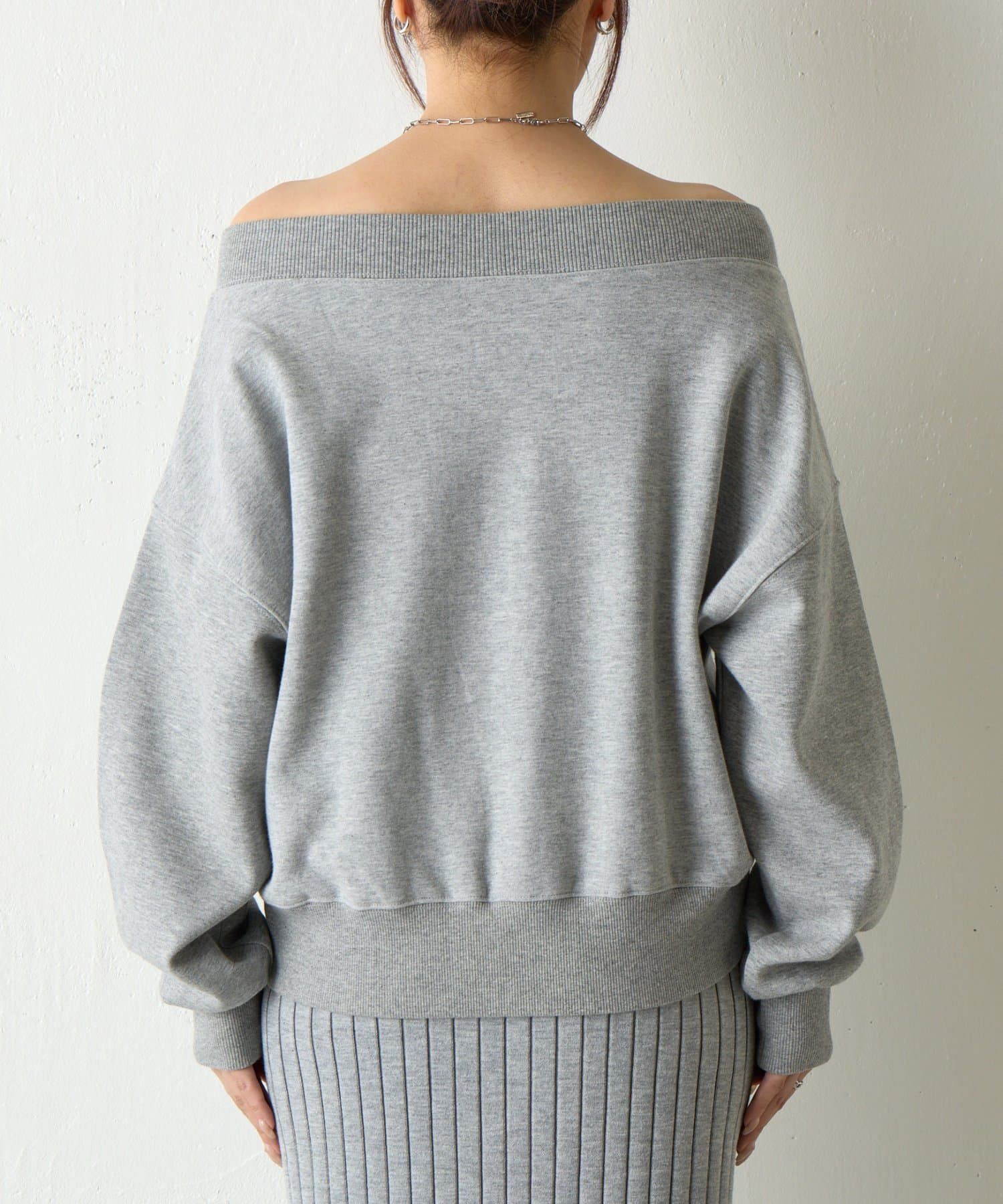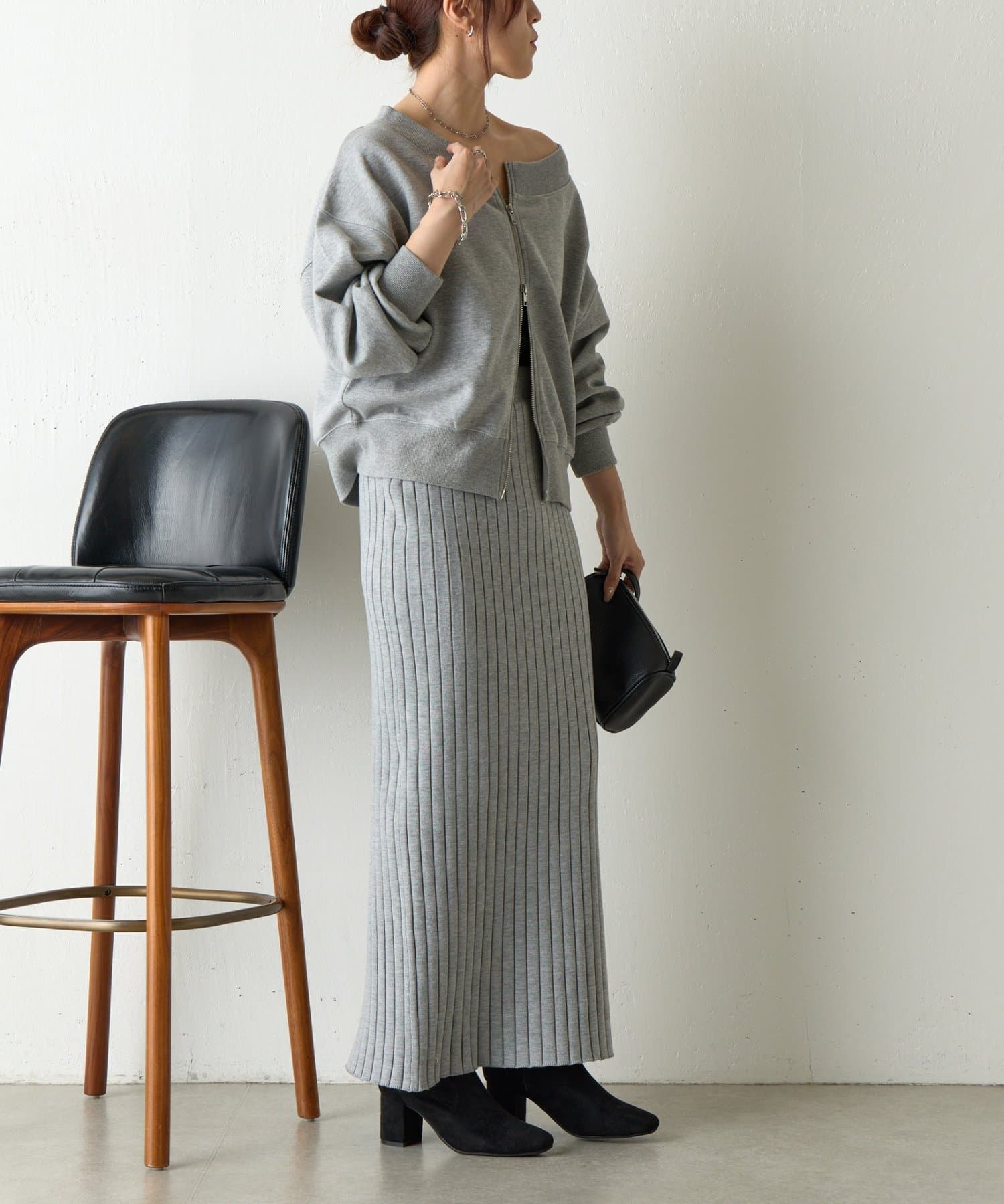 首元から肩にかけて広めに開いたオフショルデザインに、ZIPを効かせることで甘さを抑えた大人っぽい仕上がりに。