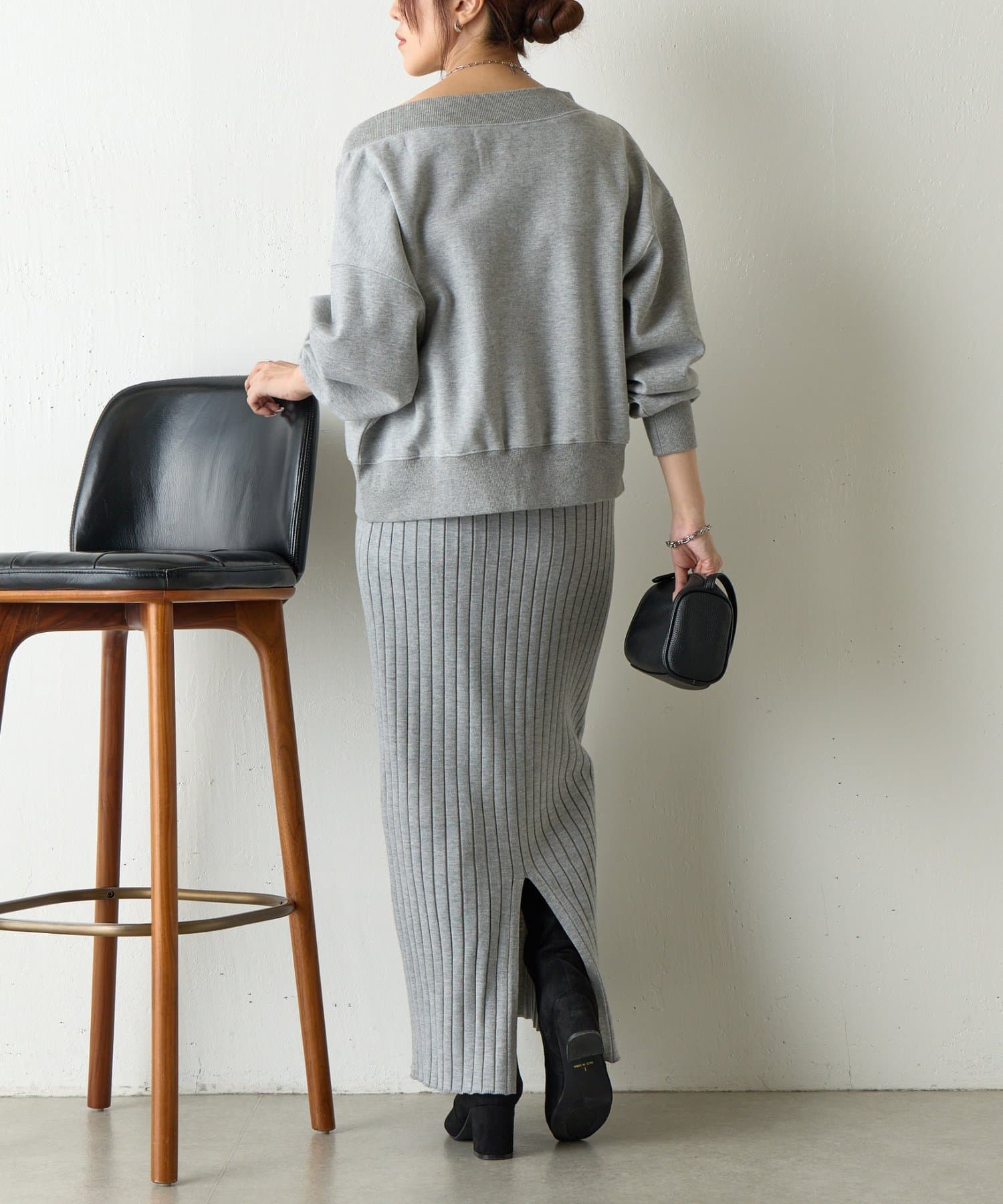 同素材のアイテムとセットアップとして合わせるスタイルもおすすめです。