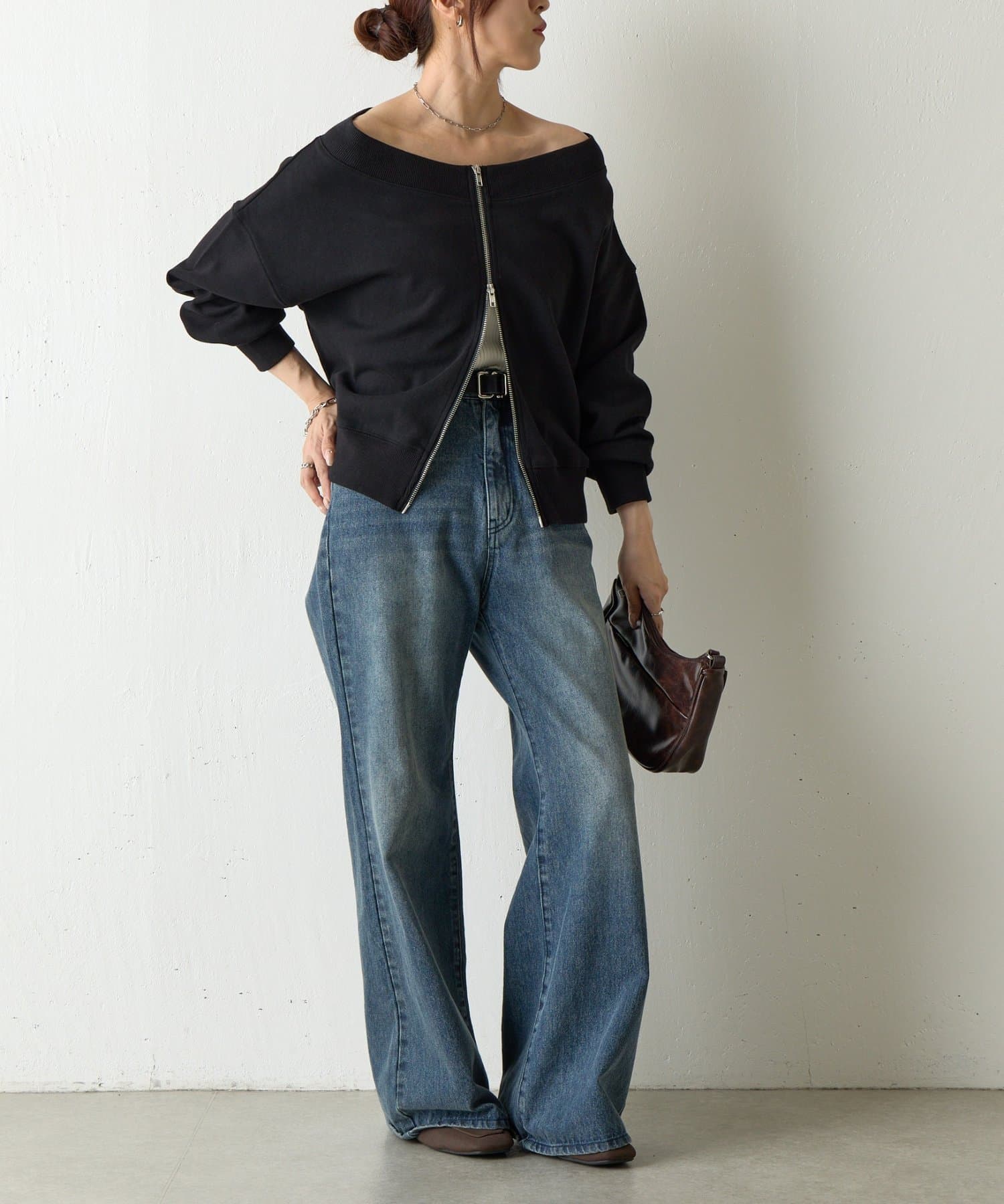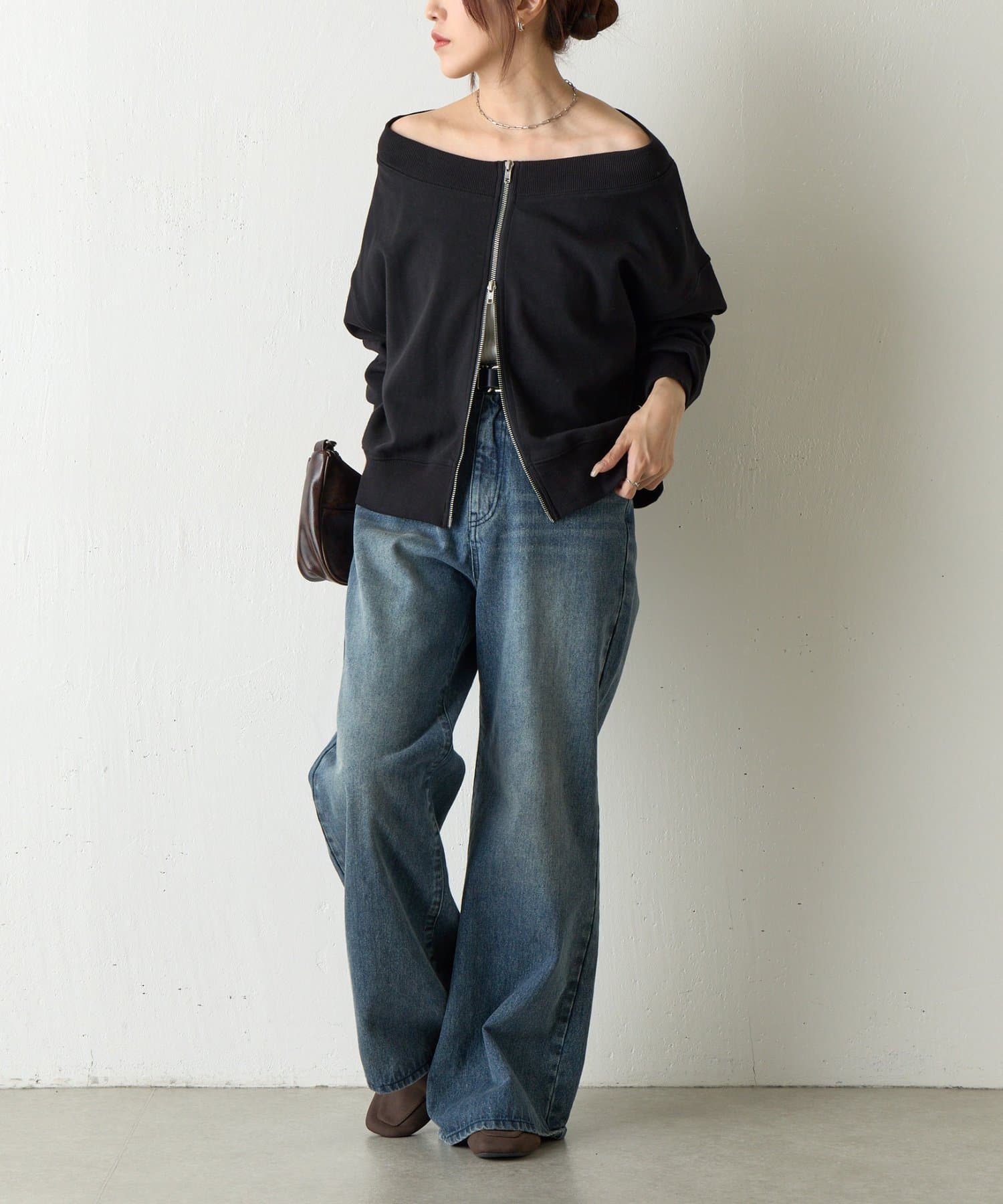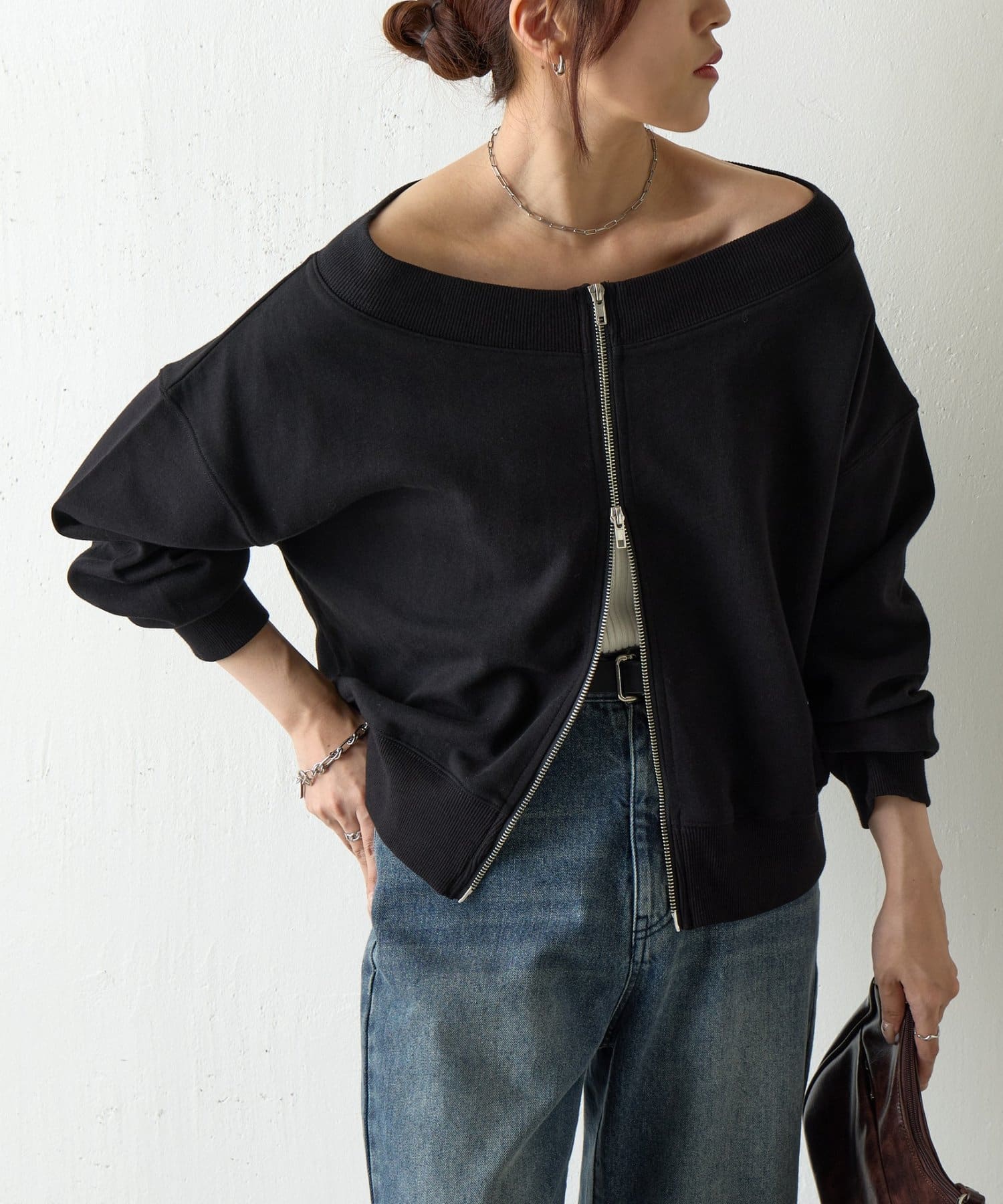 オフショルダー×ZIPディテールで仕上げた、立体感たっぷりの“映えトップス”。