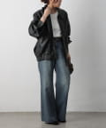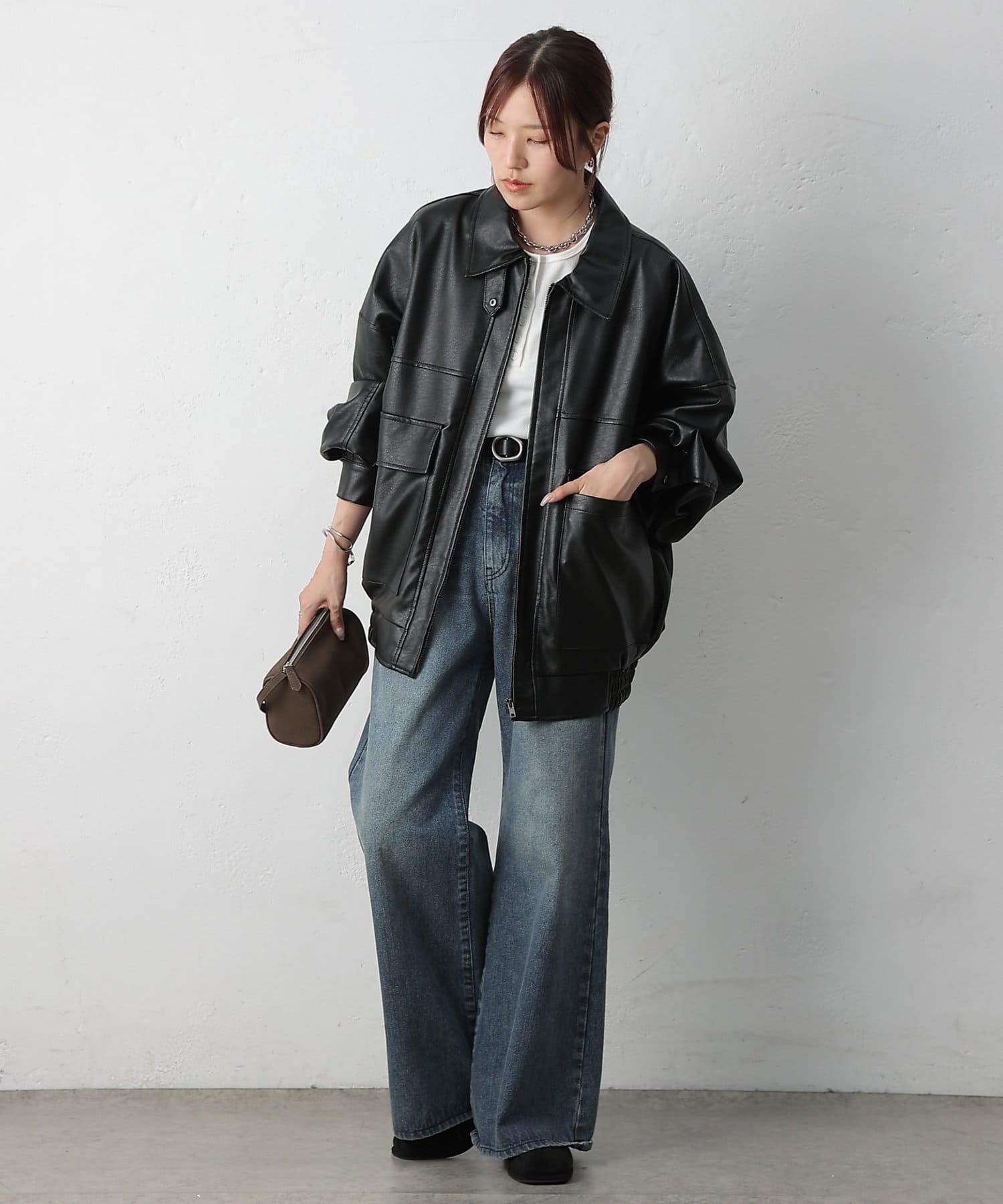 ゆったりとしたオーバーサイズで、レイヤードスタイルも楽しめる1着。