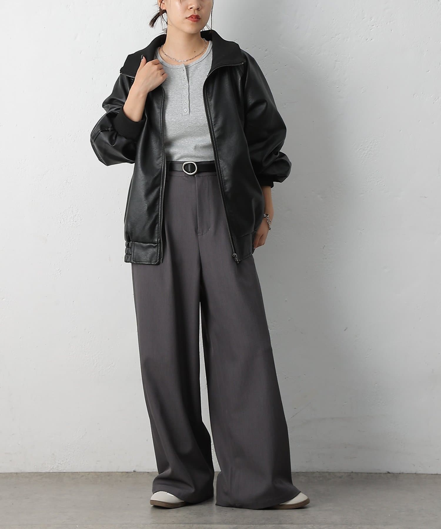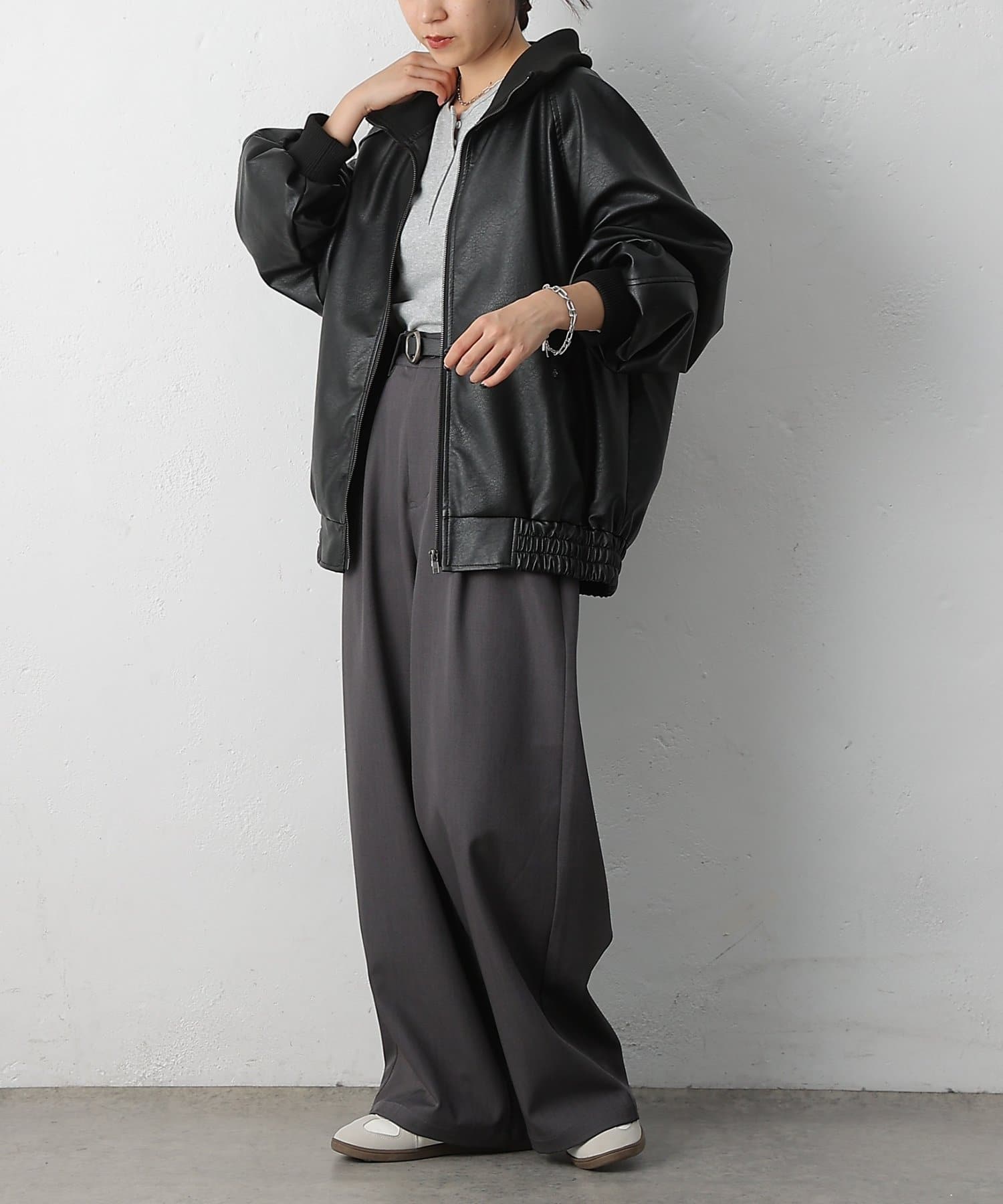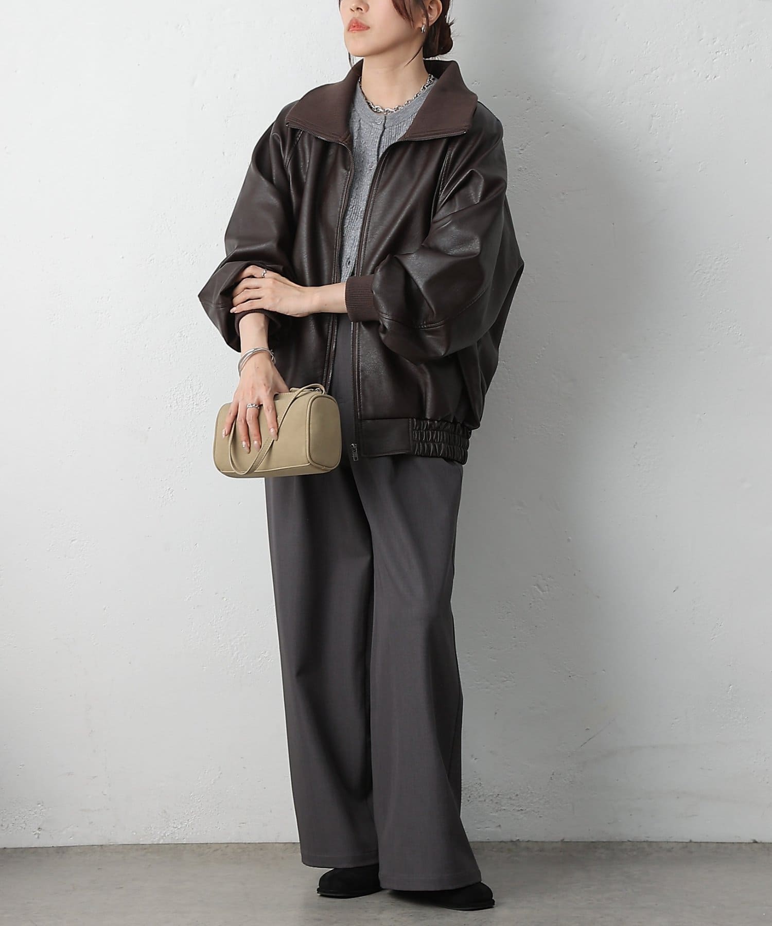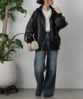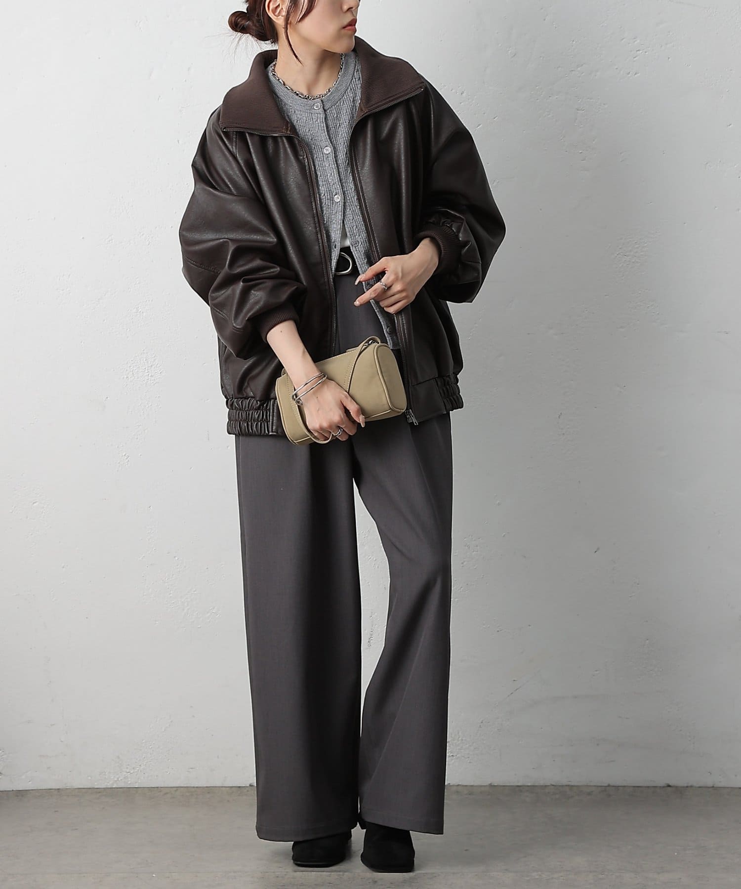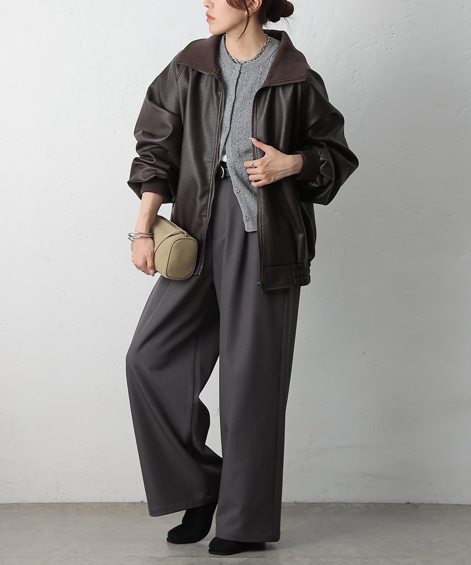 袖などがゆったりなシルエットなのでトップスを重ね着をしても着膨れ感なく羽織れるので秋口から真冬まで長く活躍する一着です。
