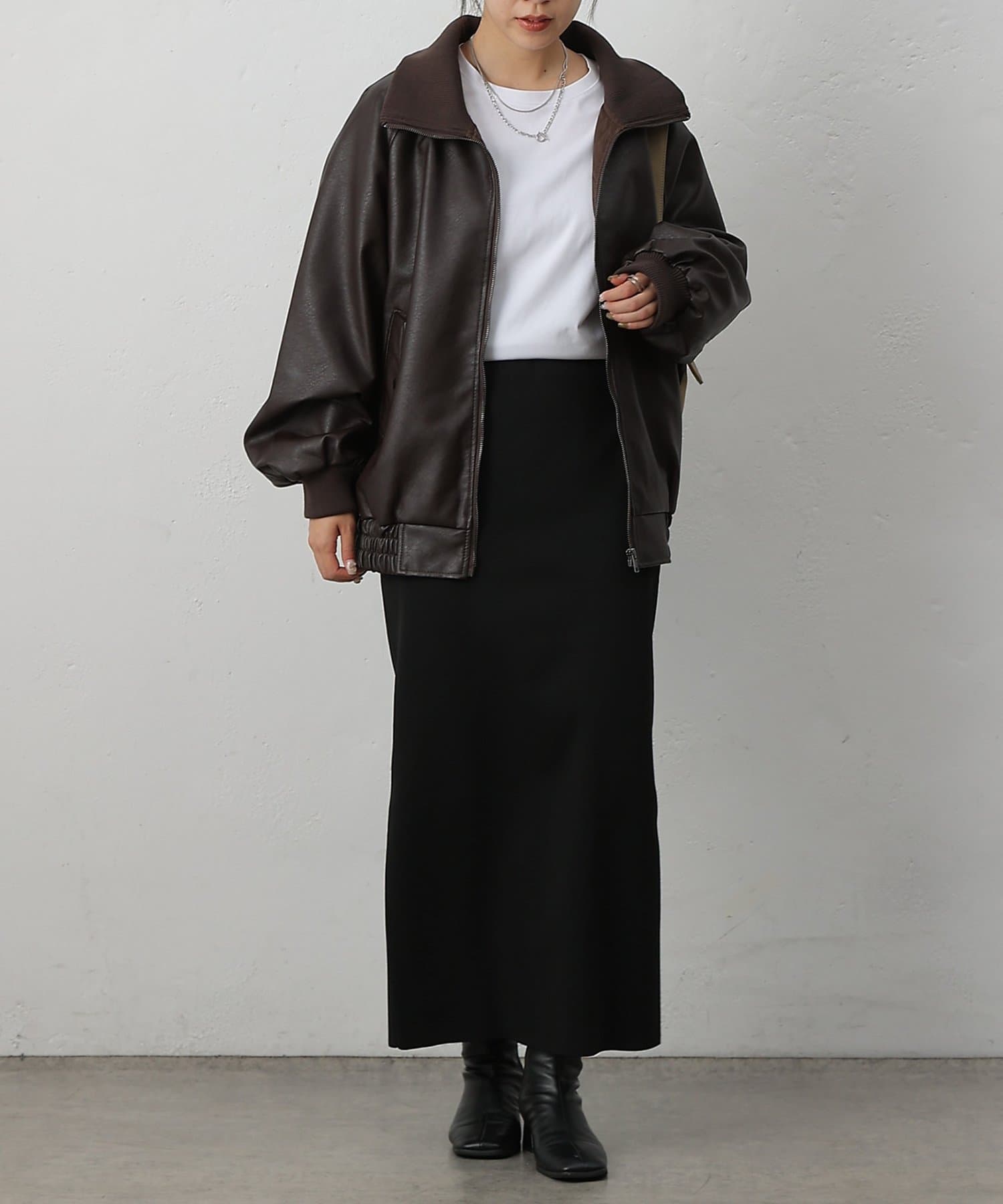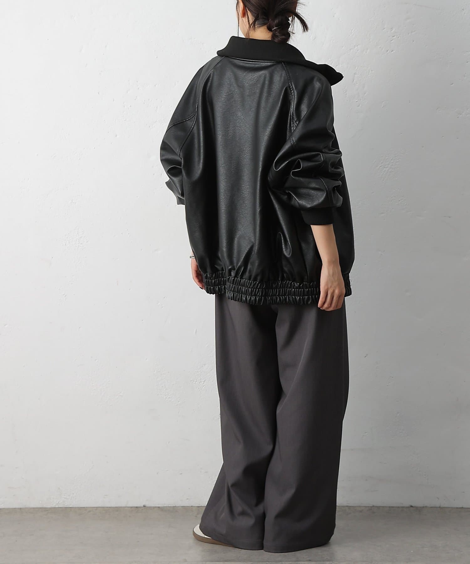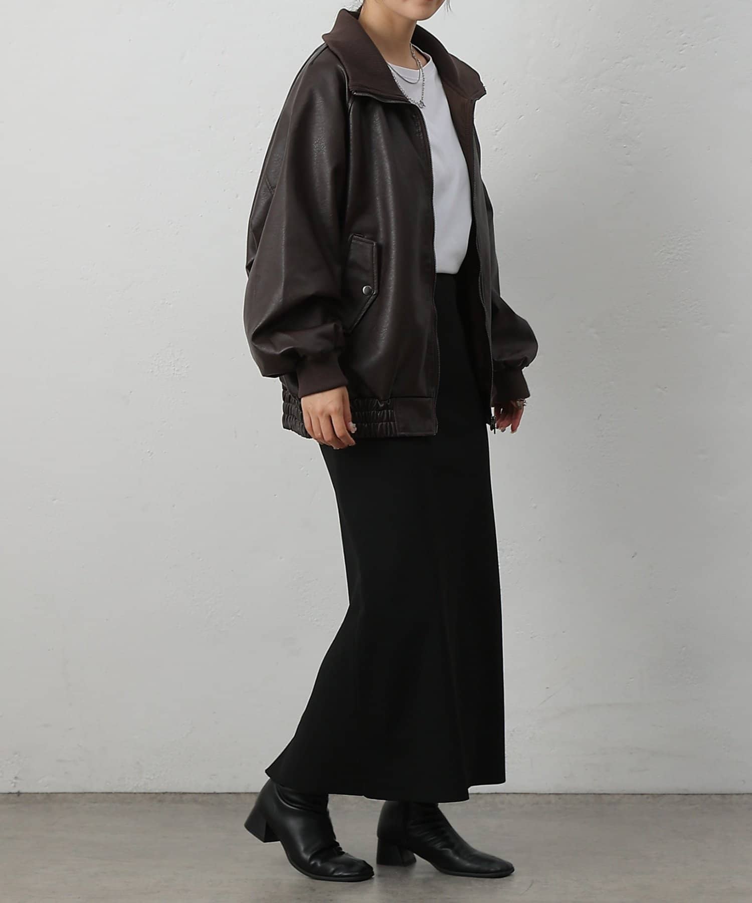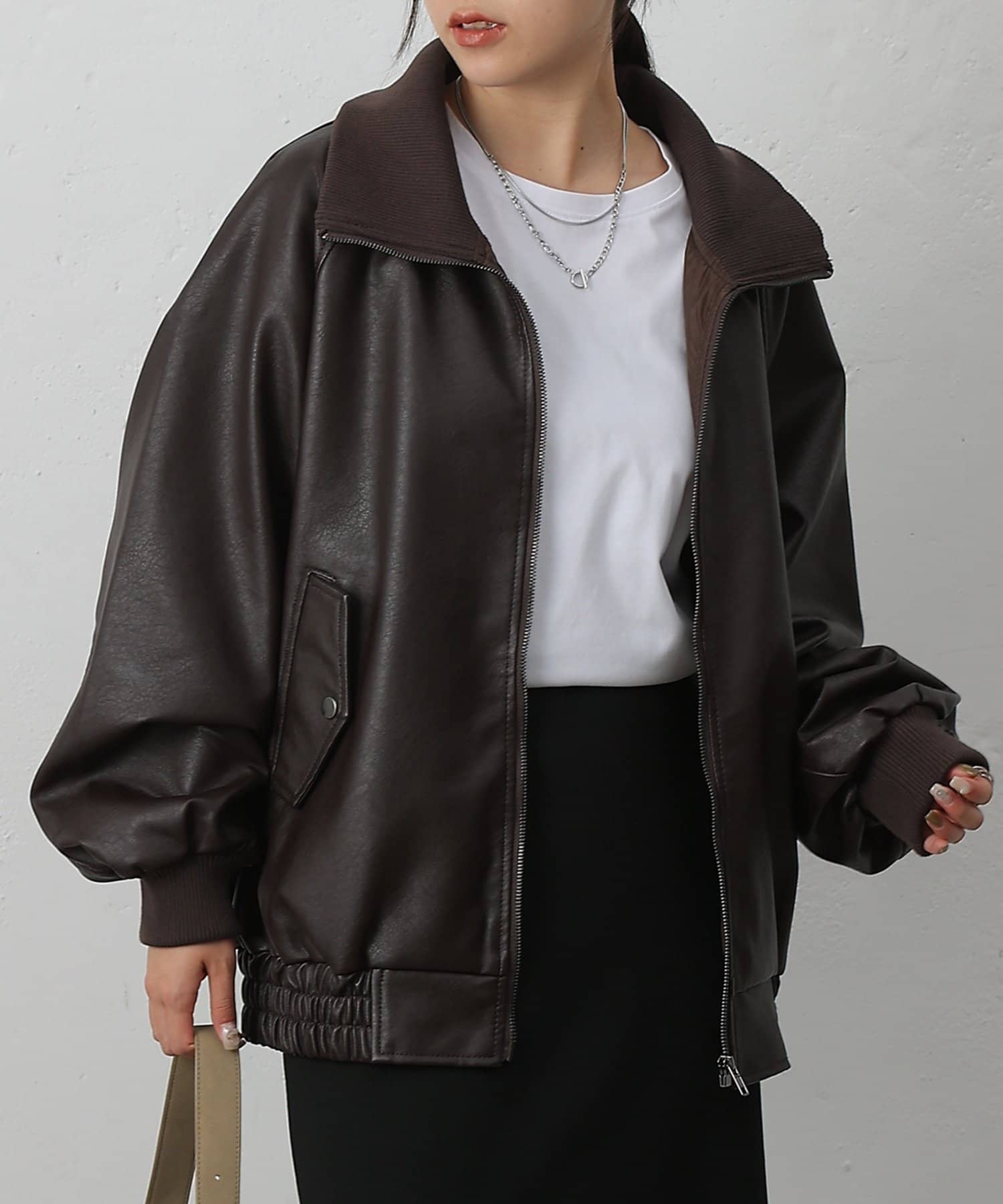 上質なフェイクレザーを使用した、定番のMA-1ジャケット。