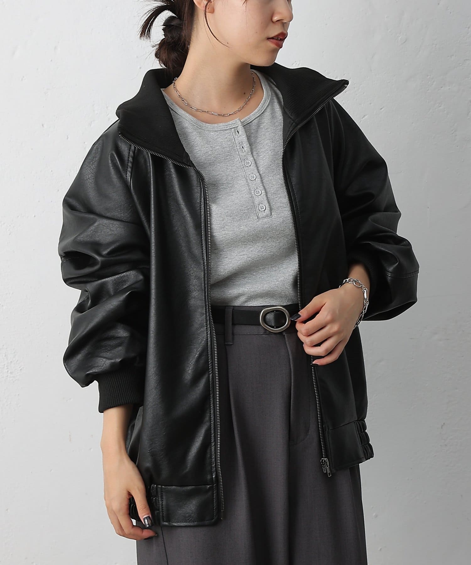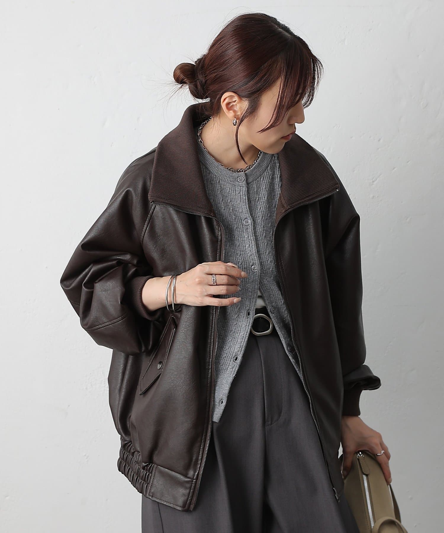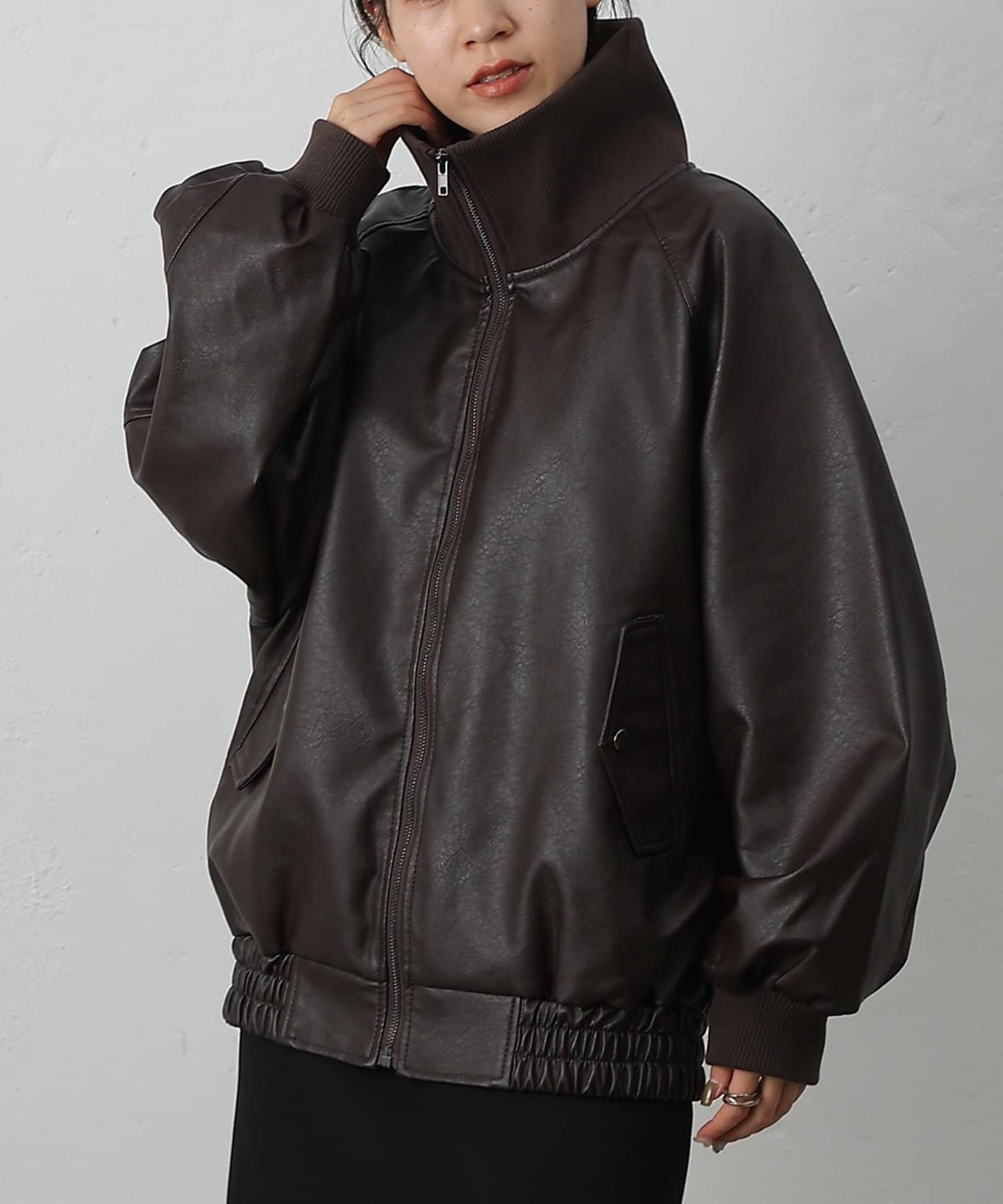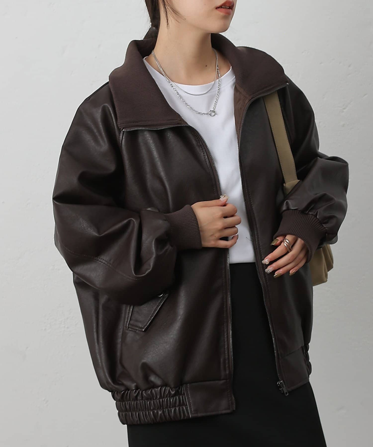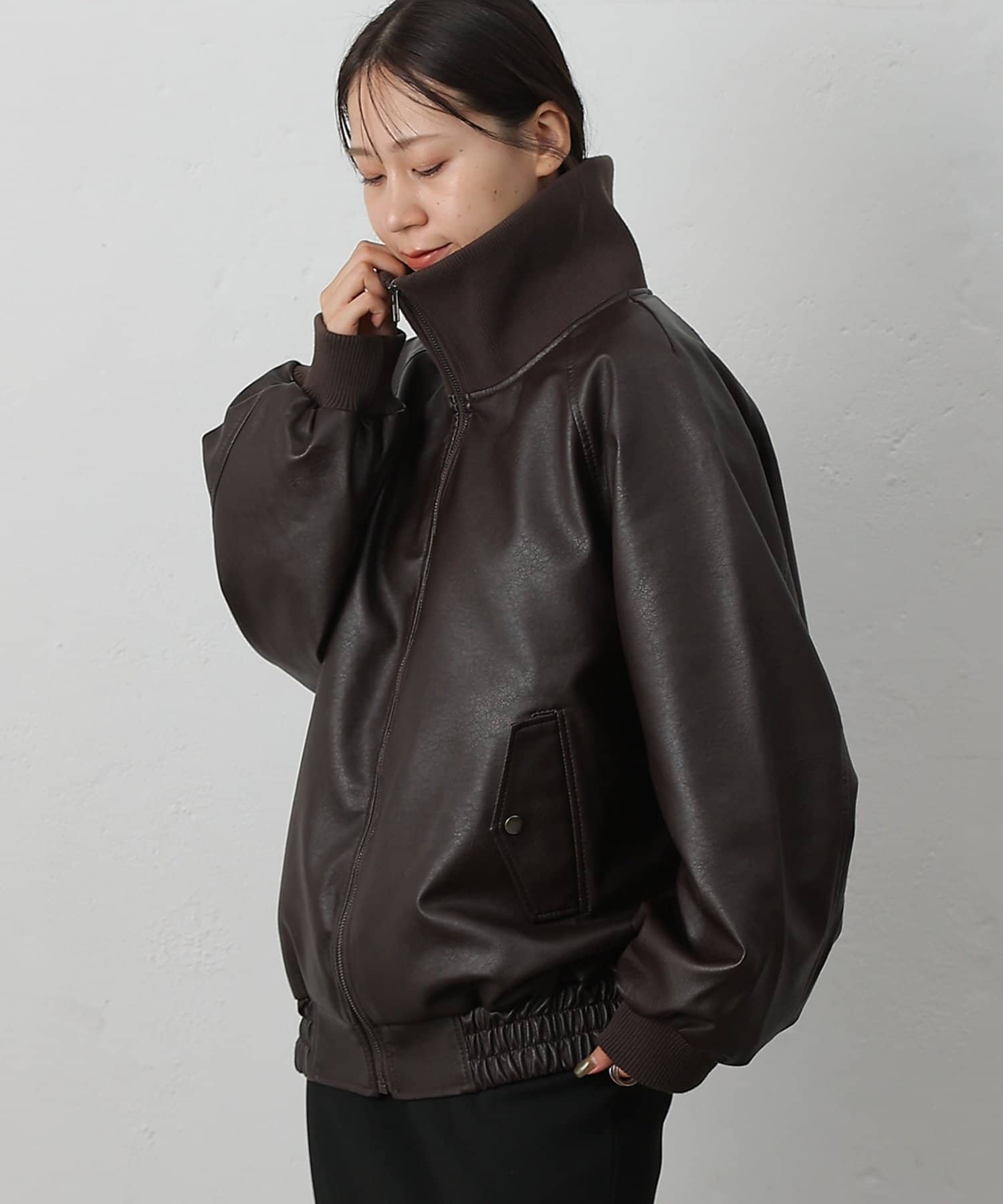 【スタンドネックにも◎ヴィンテージ風フェイクレザーMA-1】