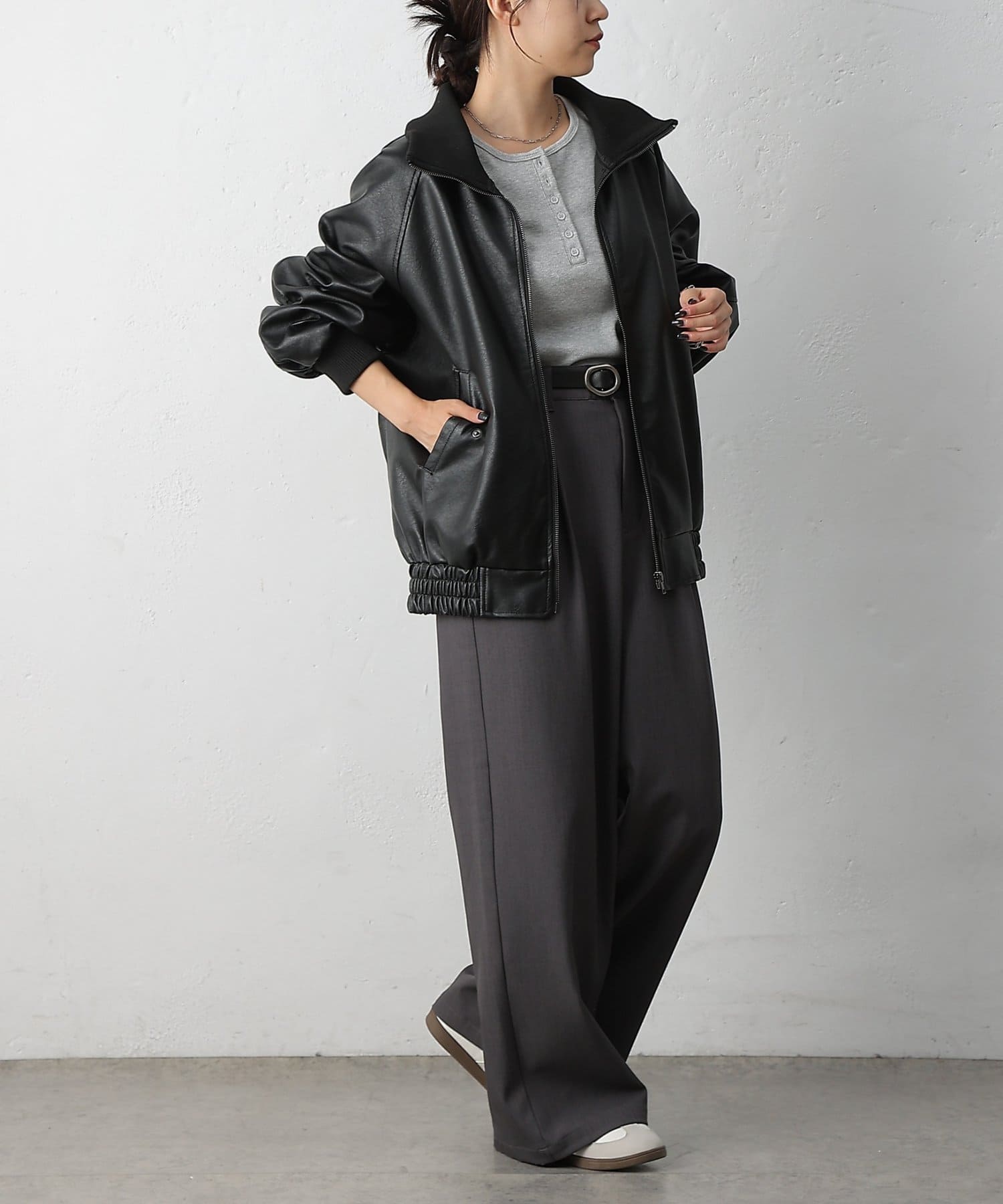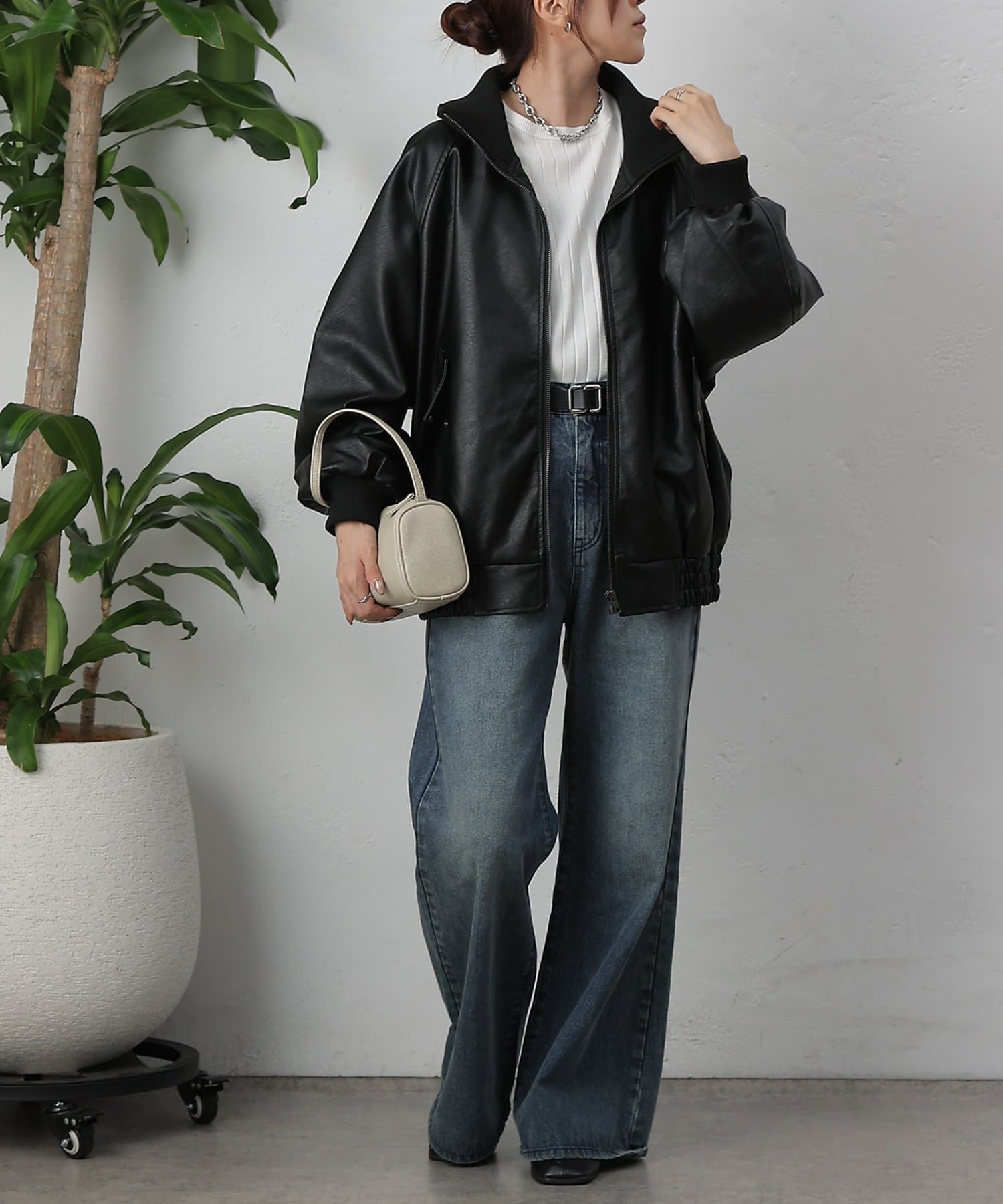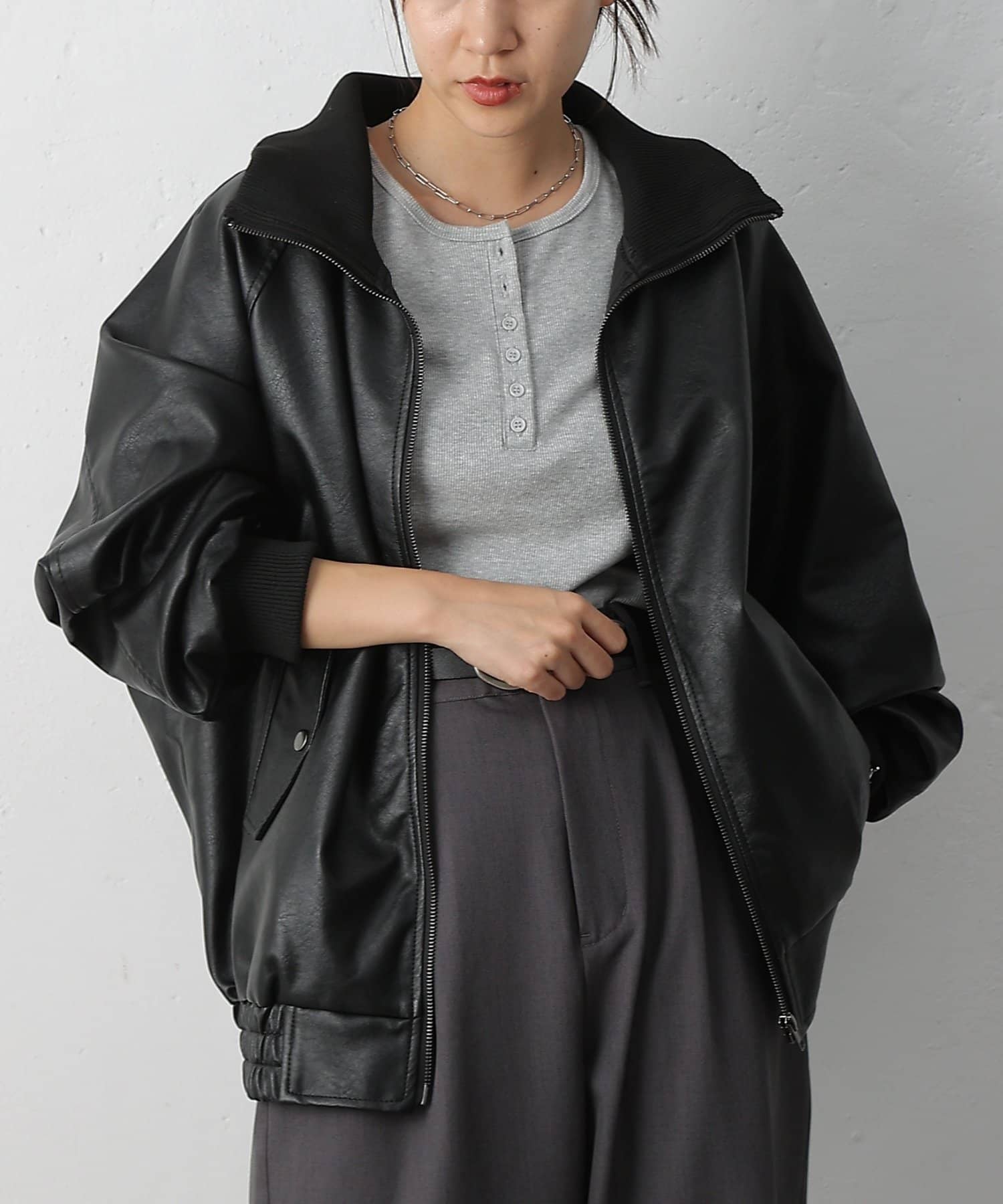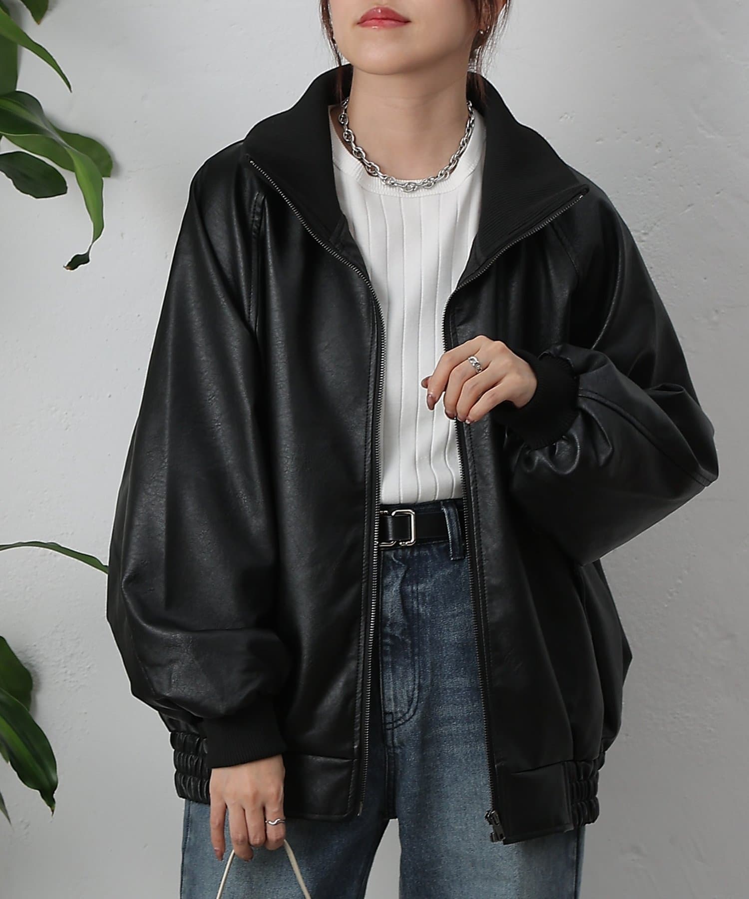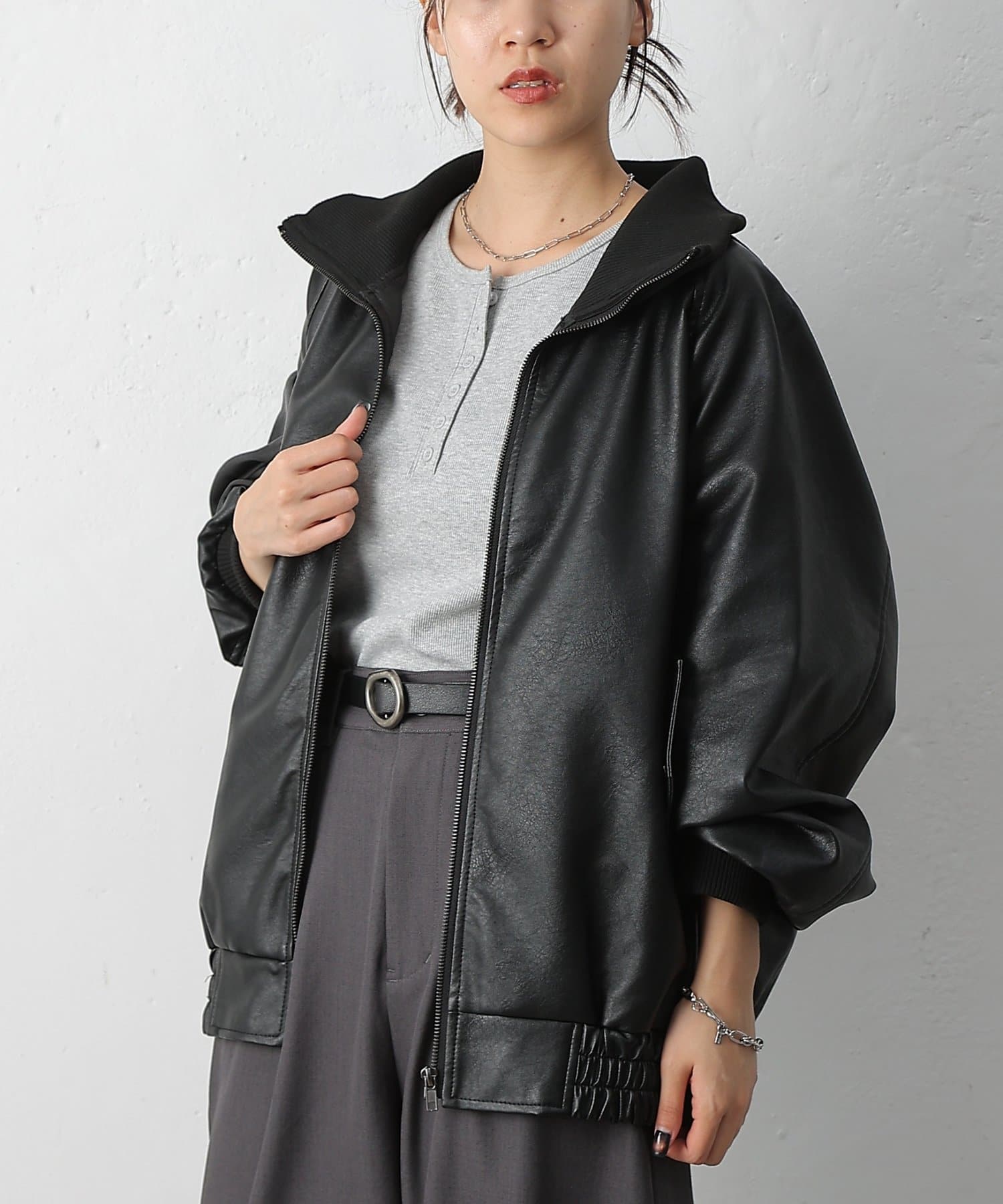 【スタンドネックにも◎ヴィンテージ風フェイクレザーMA-1】