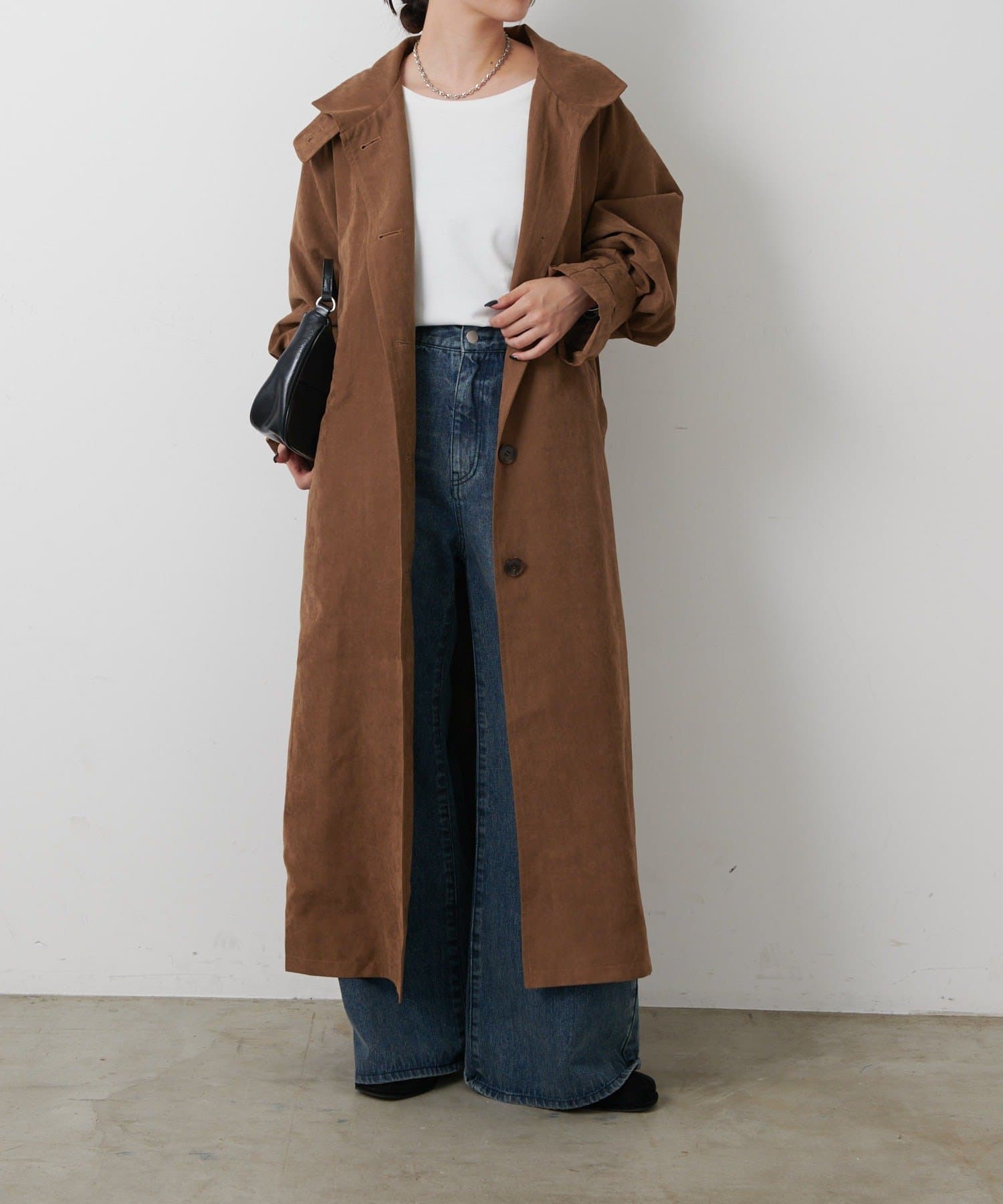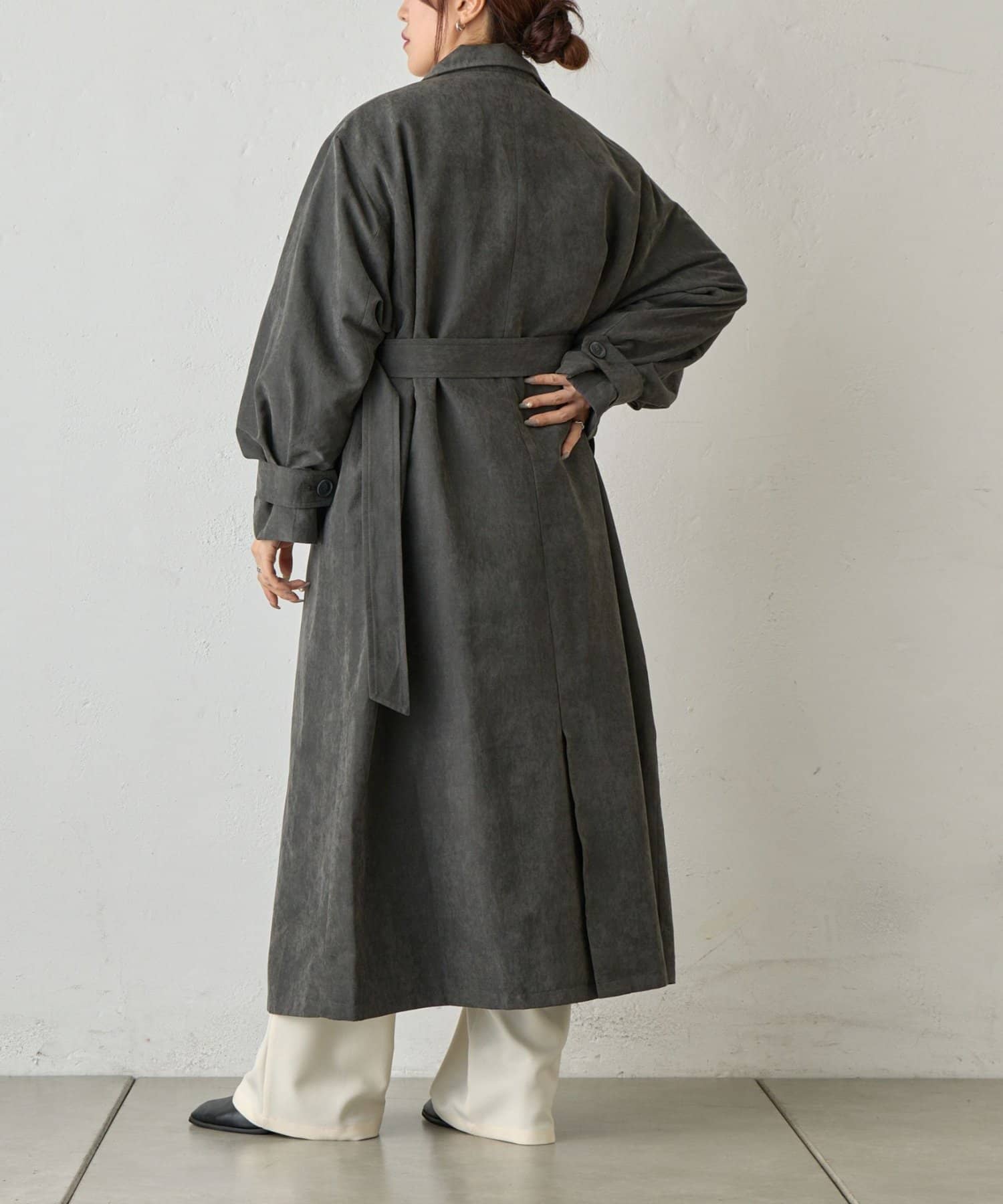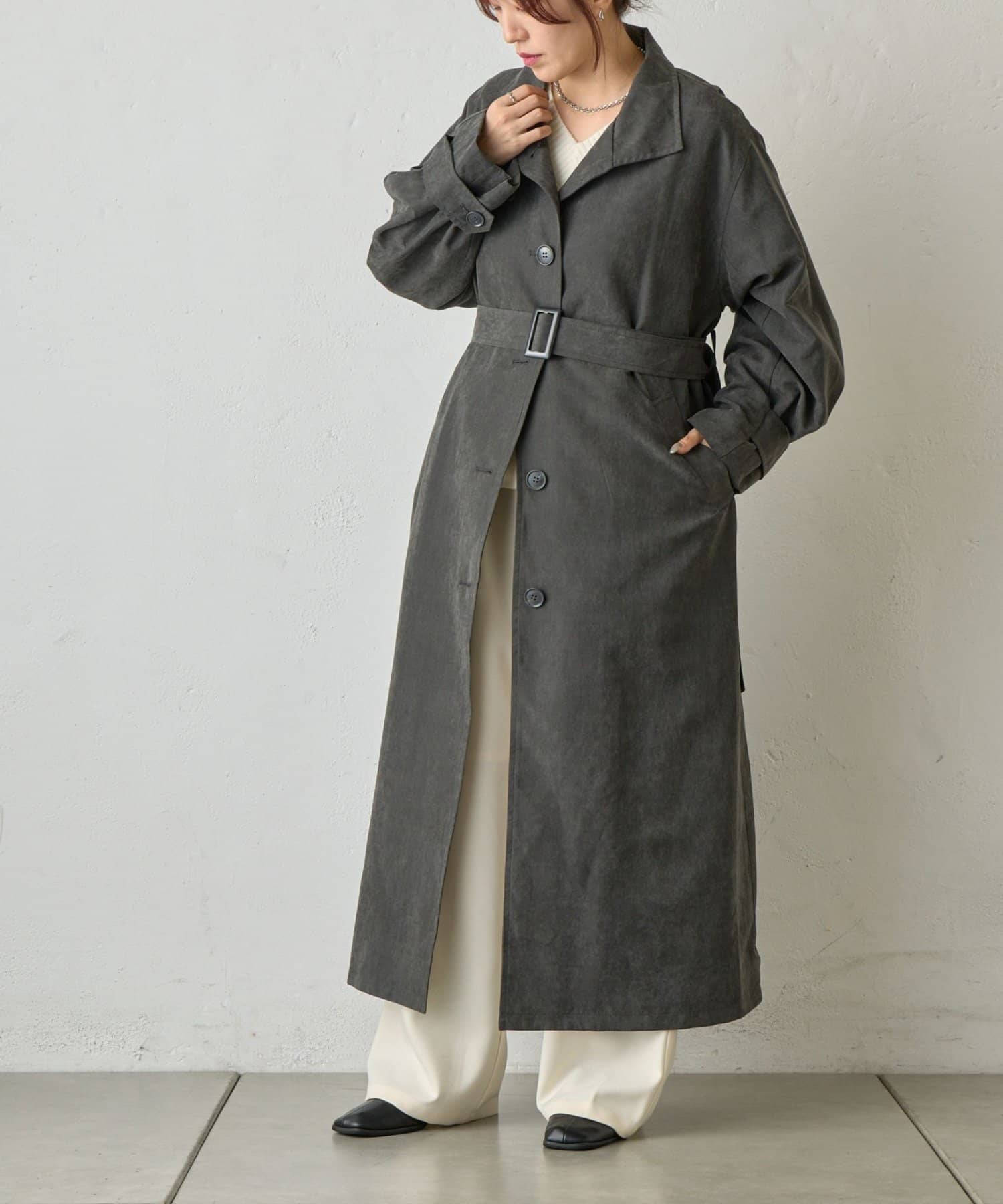 【美しい落ち感と女性らしいしなやかさ。ピーチロングトレンチコート】