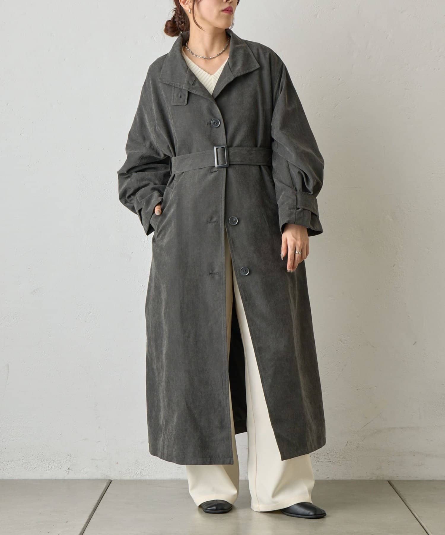 ウエストベルト付きで、ラフに羽織るのはもちろん、きゅっと締めてメリハリのある着こなしも可能◎