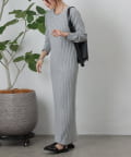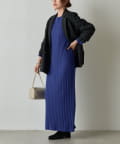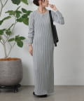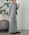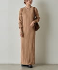 女性らしいシルエットを美しく引き立てる、ワイドリブ編みのニットワンピースです。
