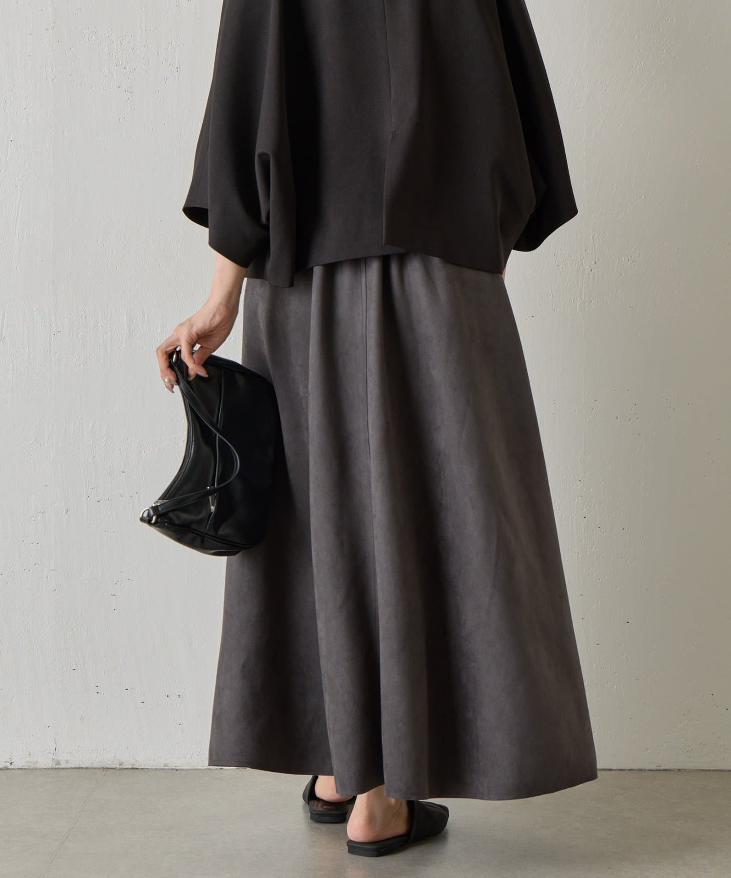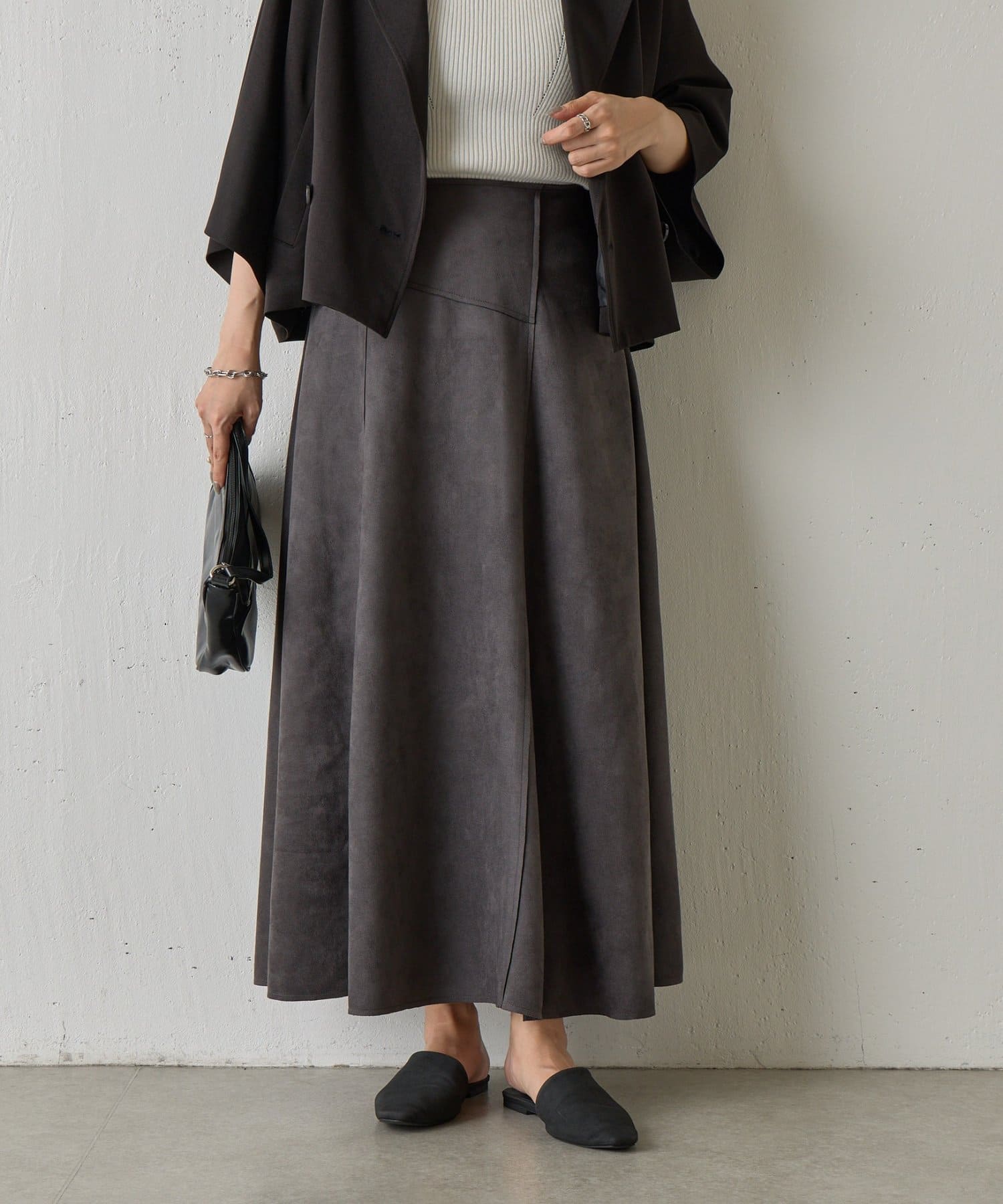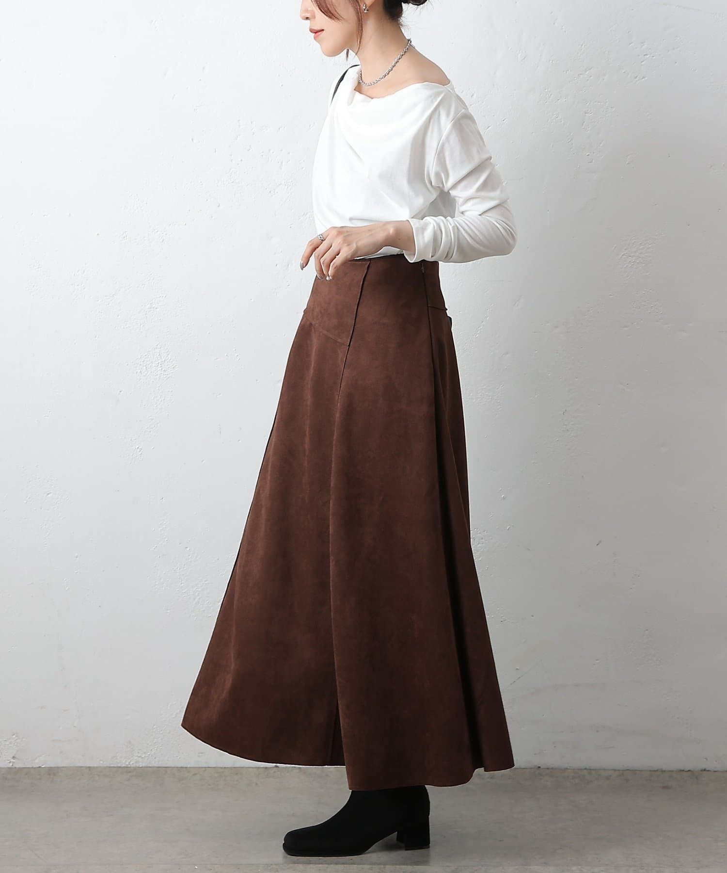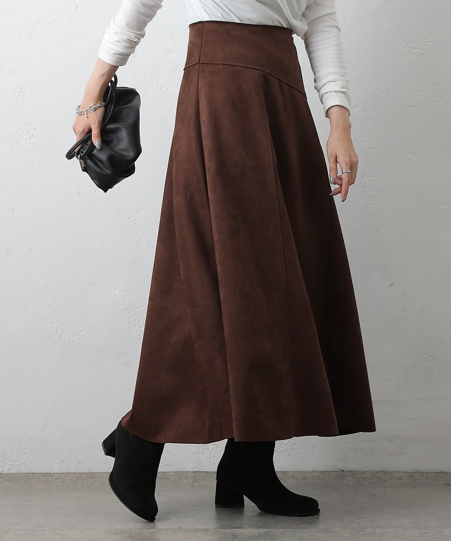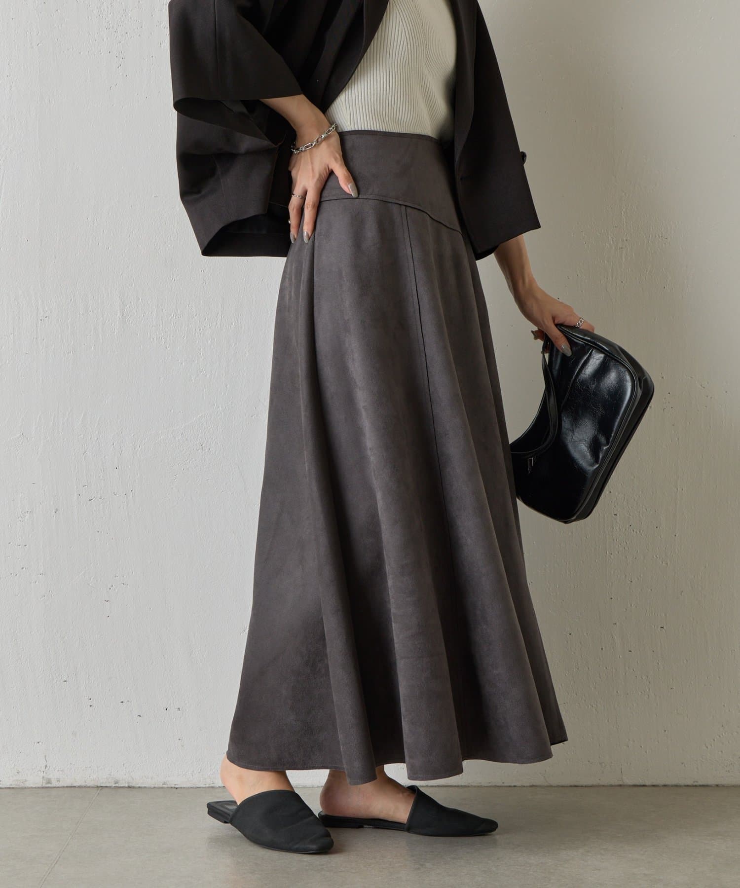 スエードポンチ切替フレアスカート