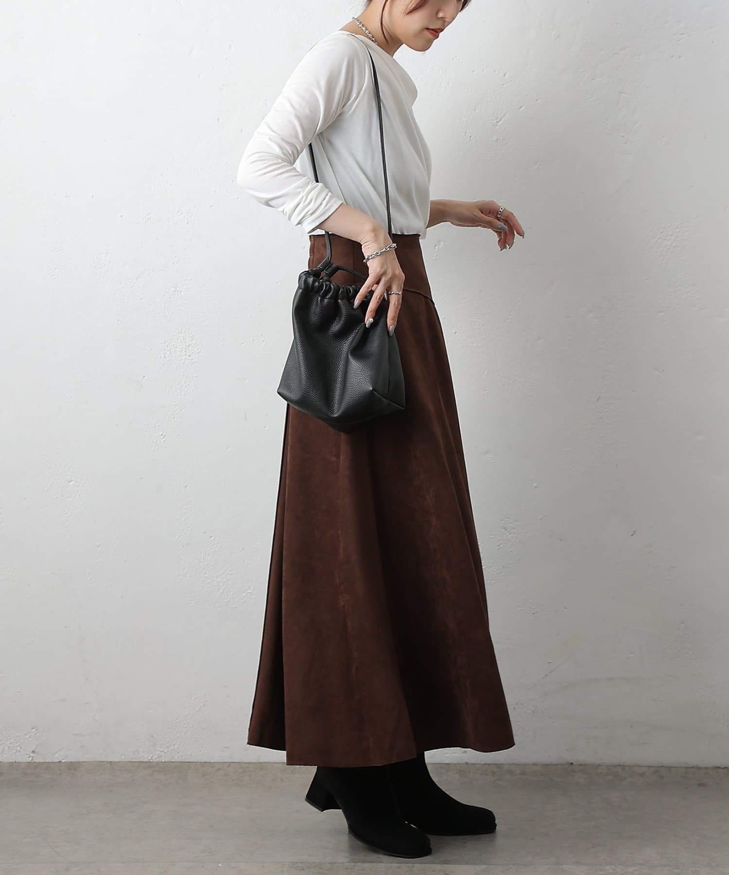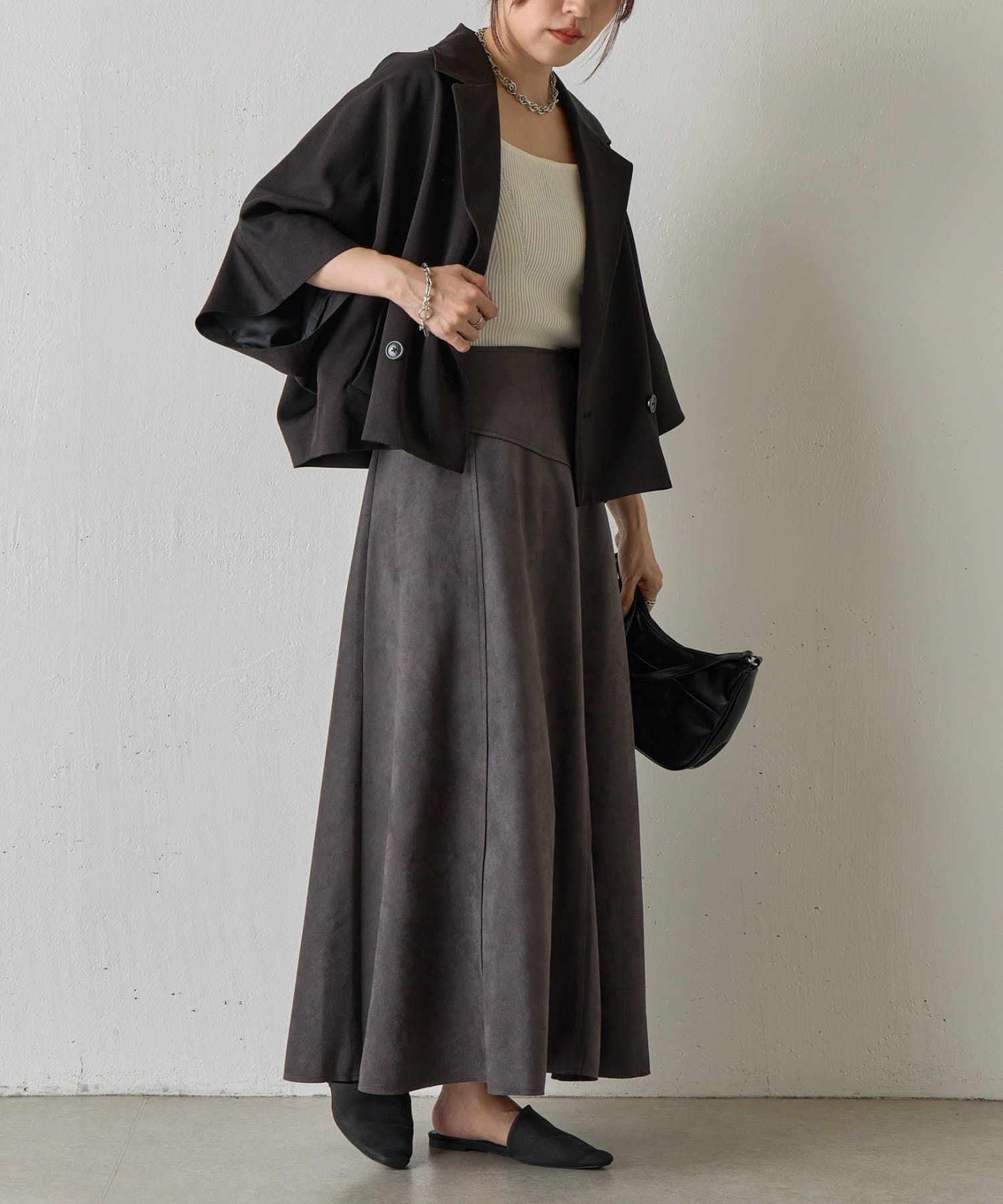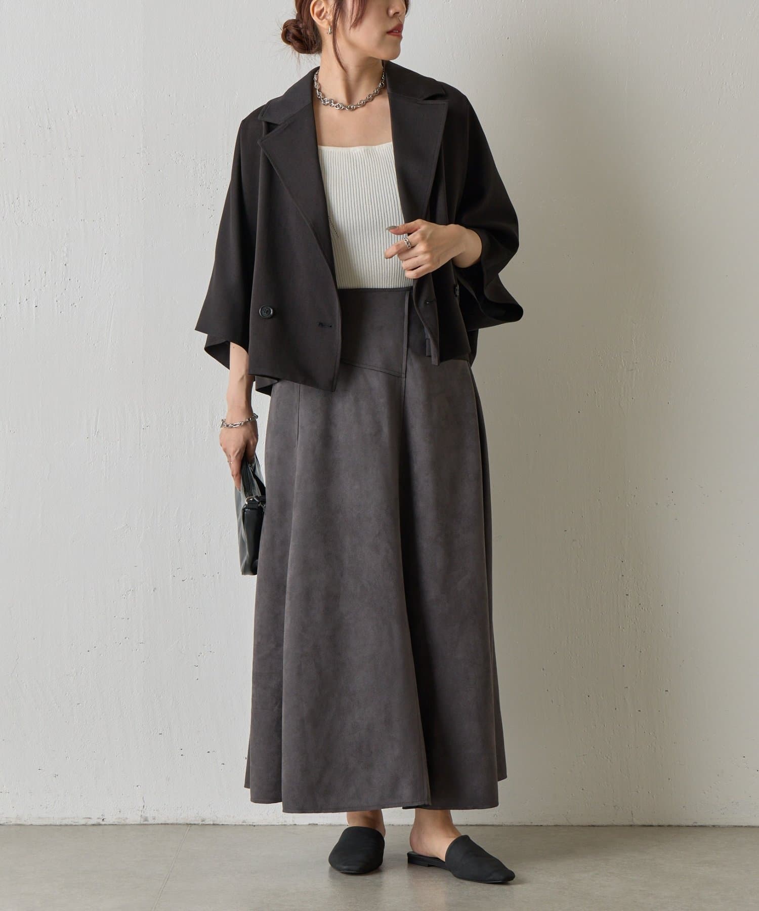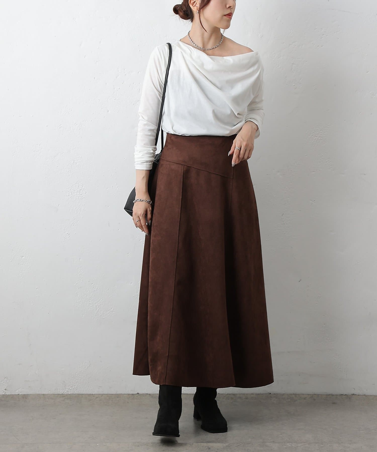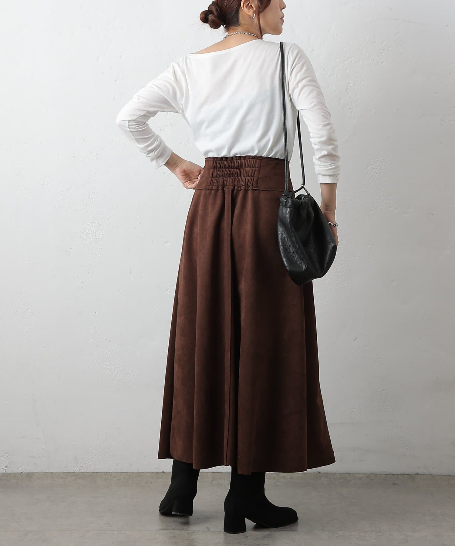 スエードポンチ切替フレアスカート