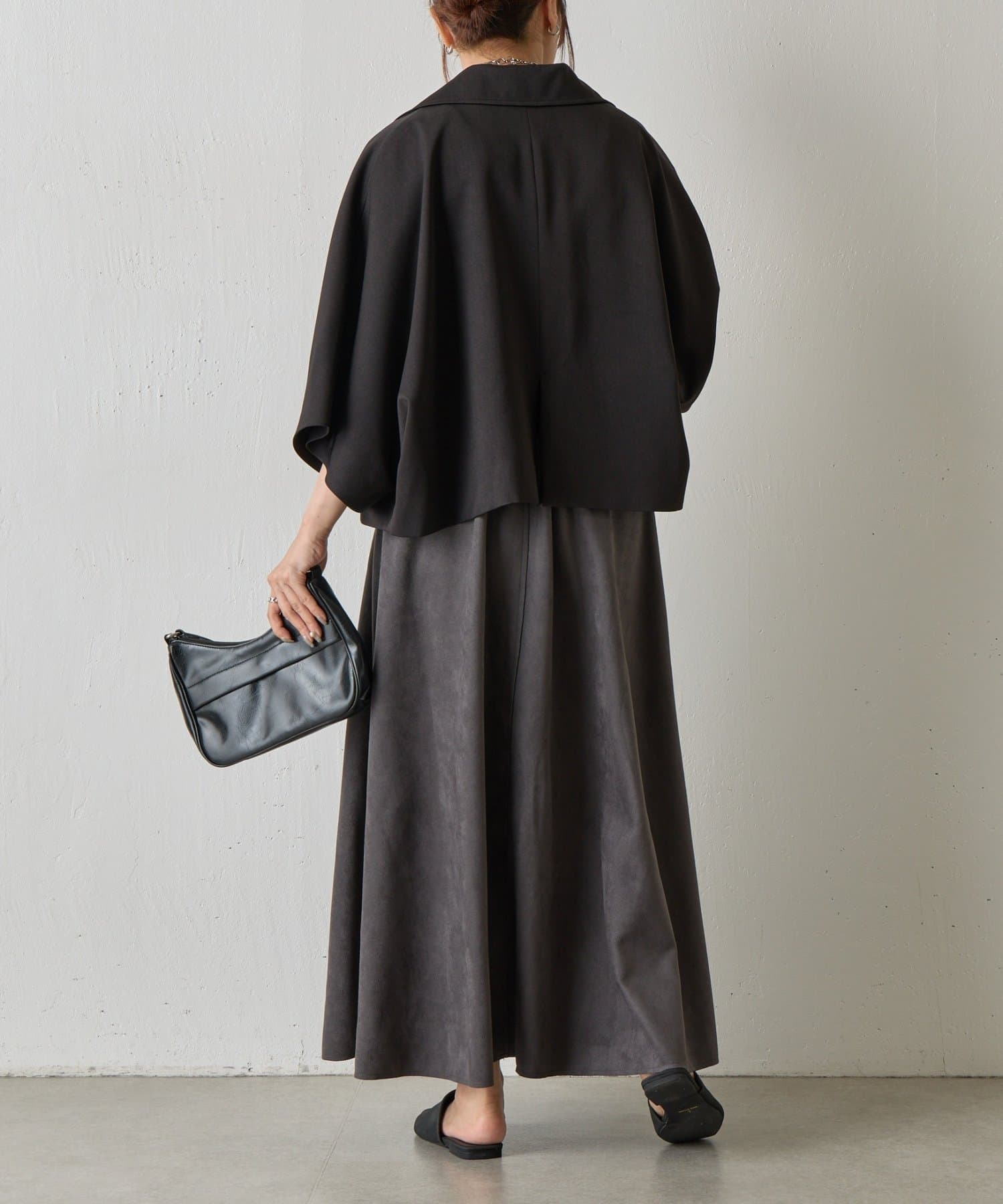 裾に向かってフレアに広がるシルエットなので体系カバーもしつつスタイルアップも叶えます◎