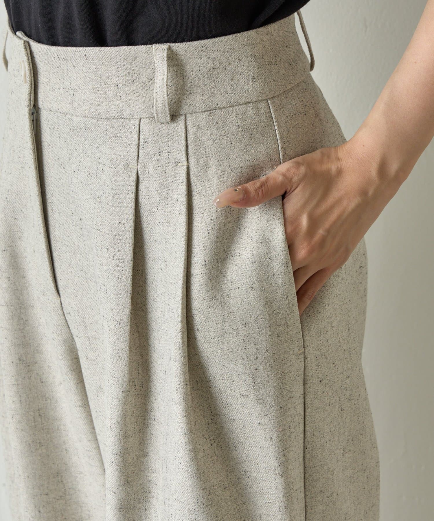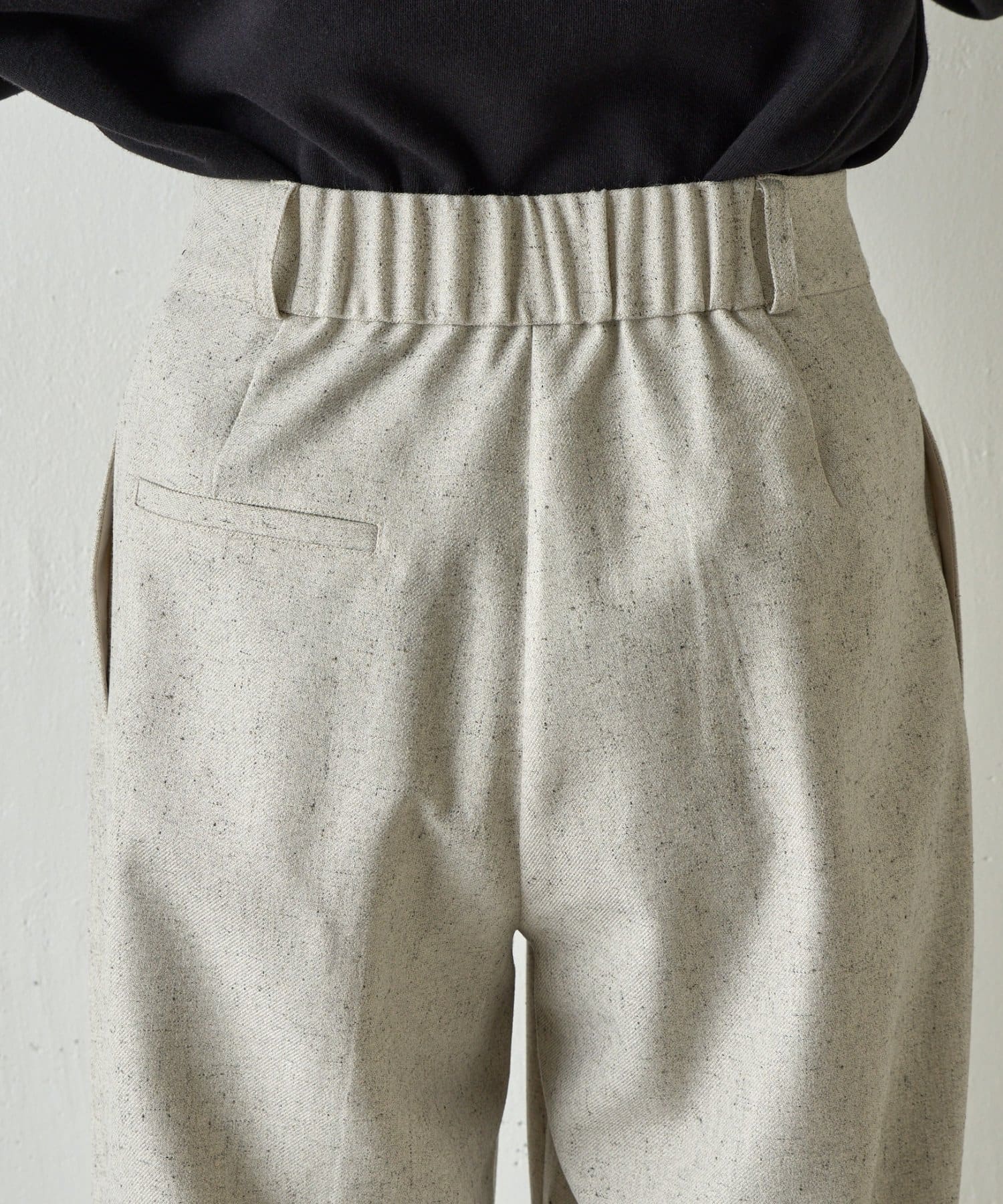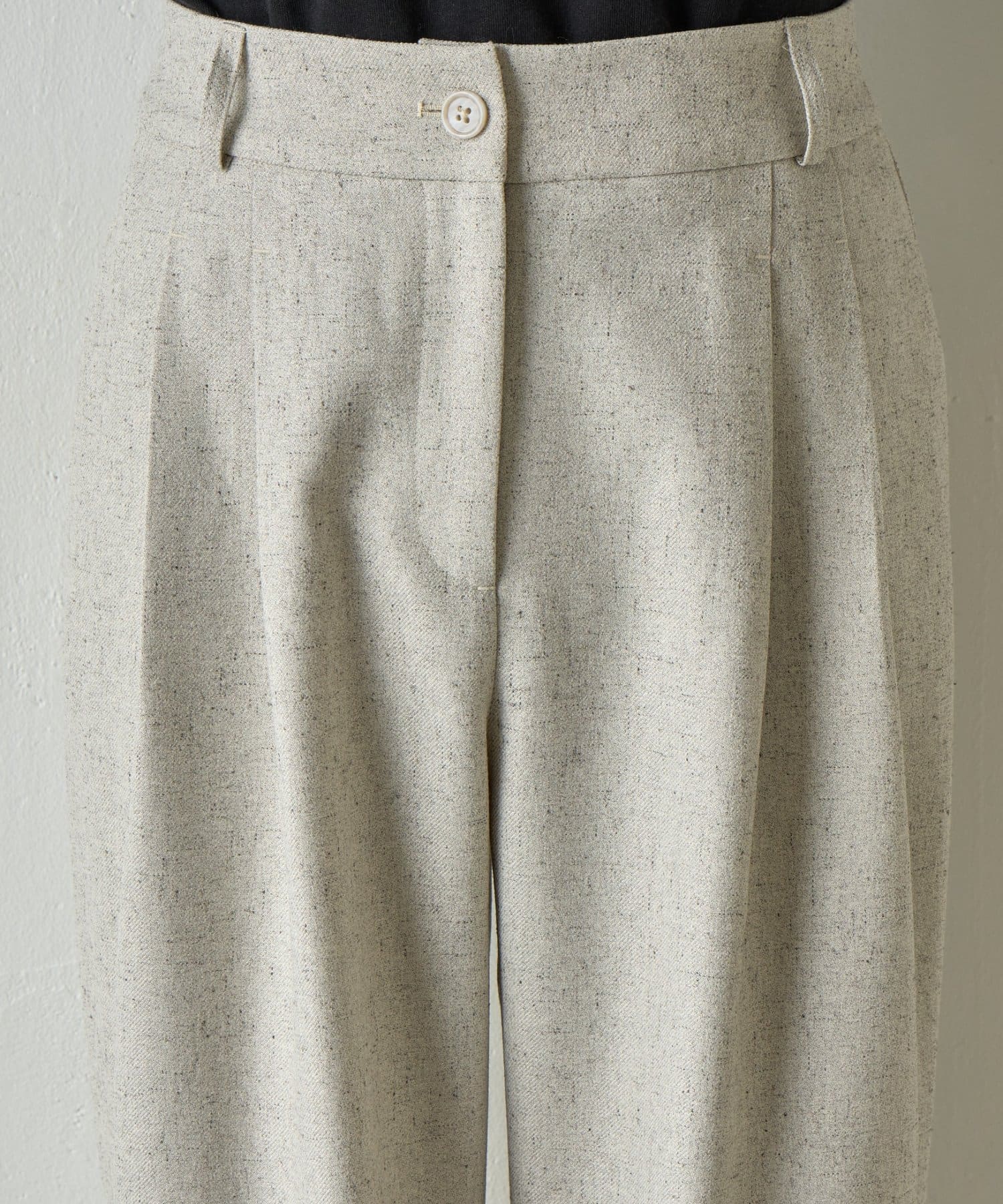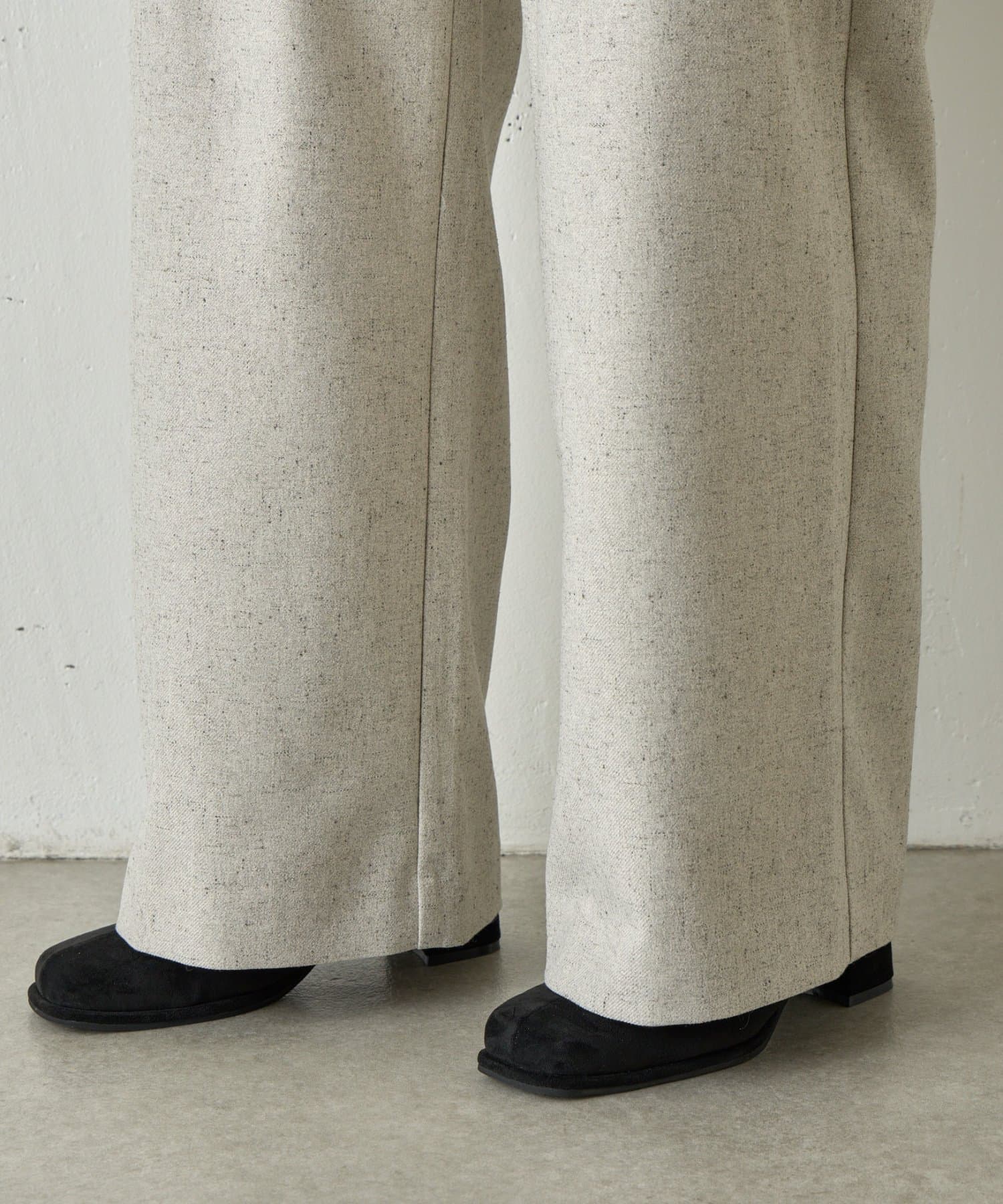 【織り込まれたネップ糸がアクセント。上質で柔らかな風合いのネップワイドパンツ。】
