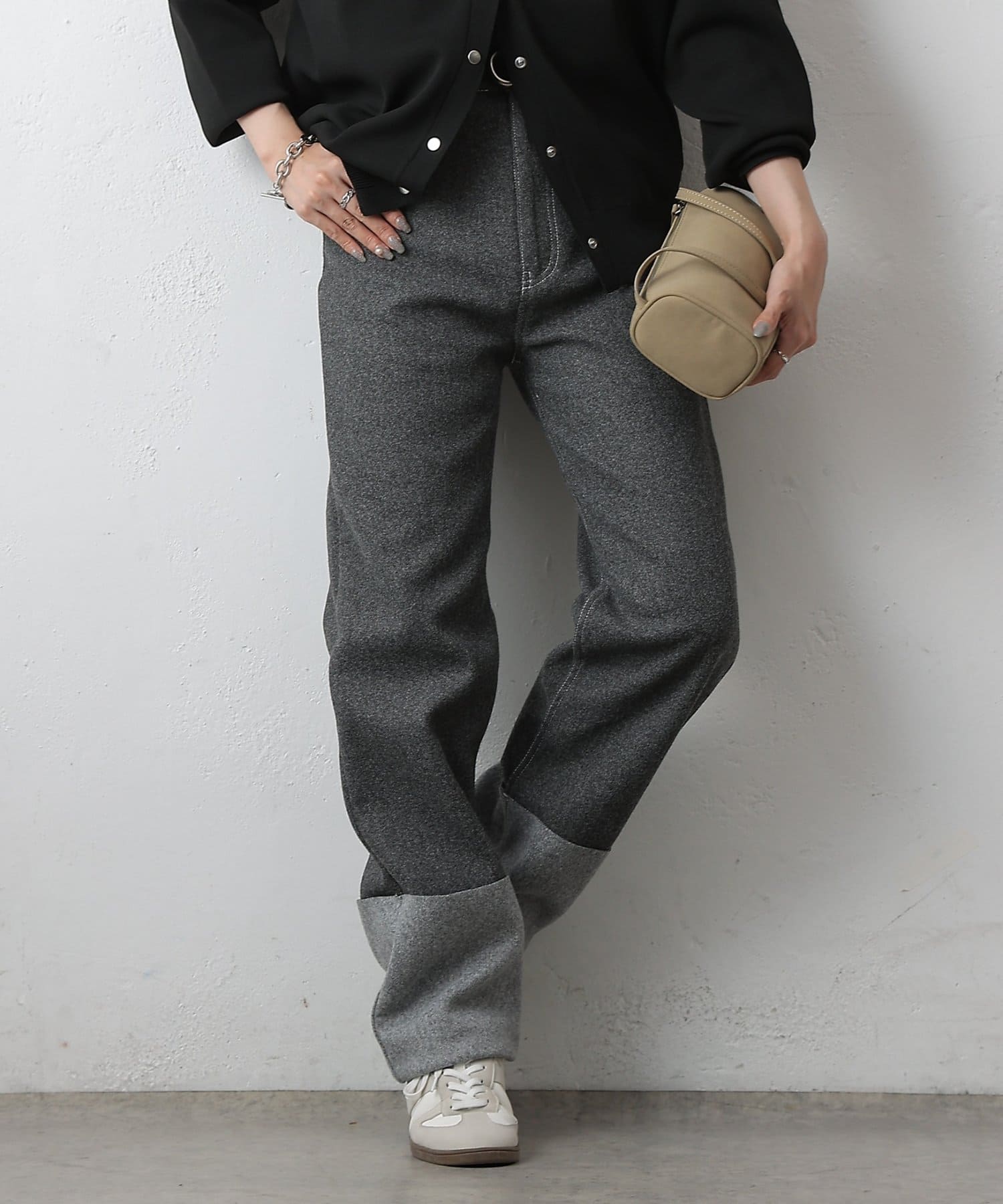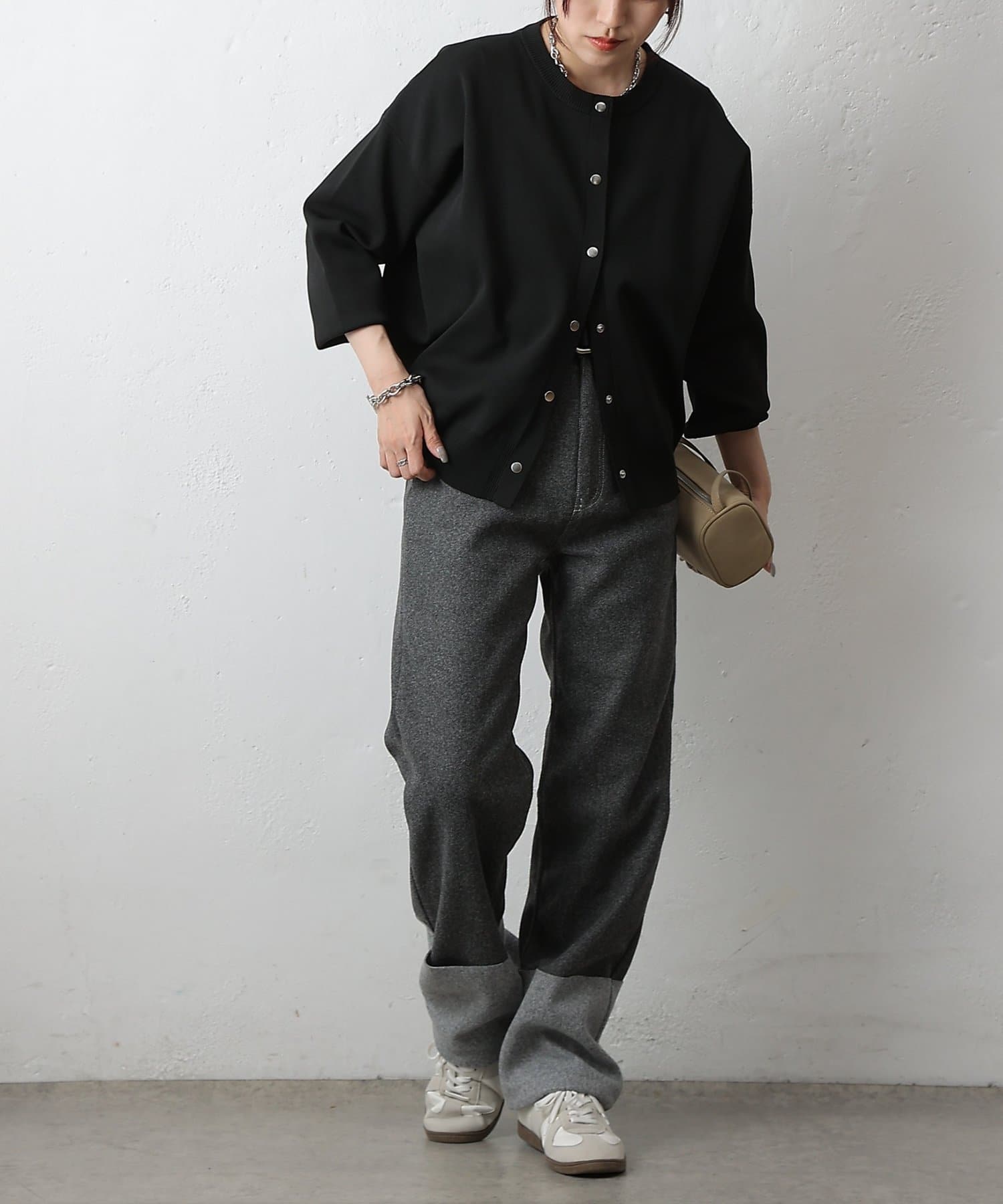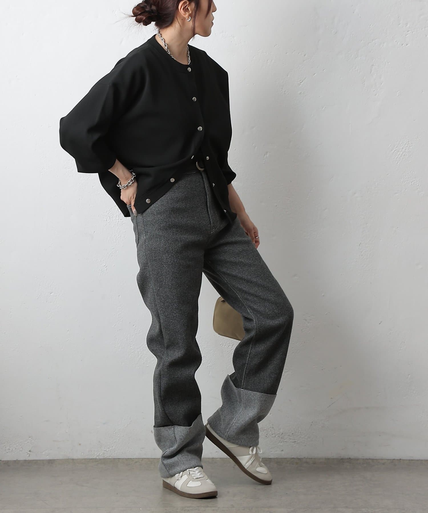 ロールアップ部分は両端を縫い付けているので形をキープしたまま穿けるのも嬉しいポイントです。