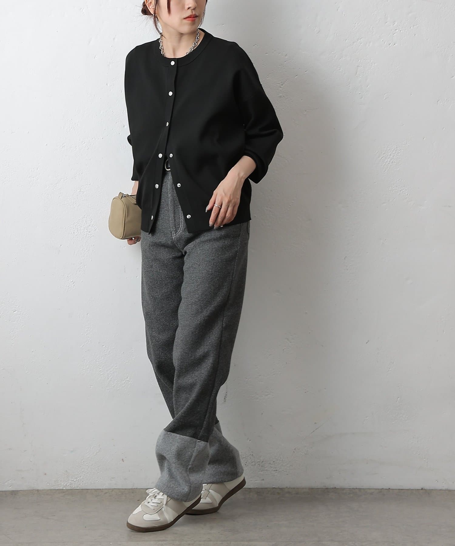 シンプルなデザインでどんなトップスにも合わせやすく、カジュアルからキレイめスタイルまで幅広く活躍します。