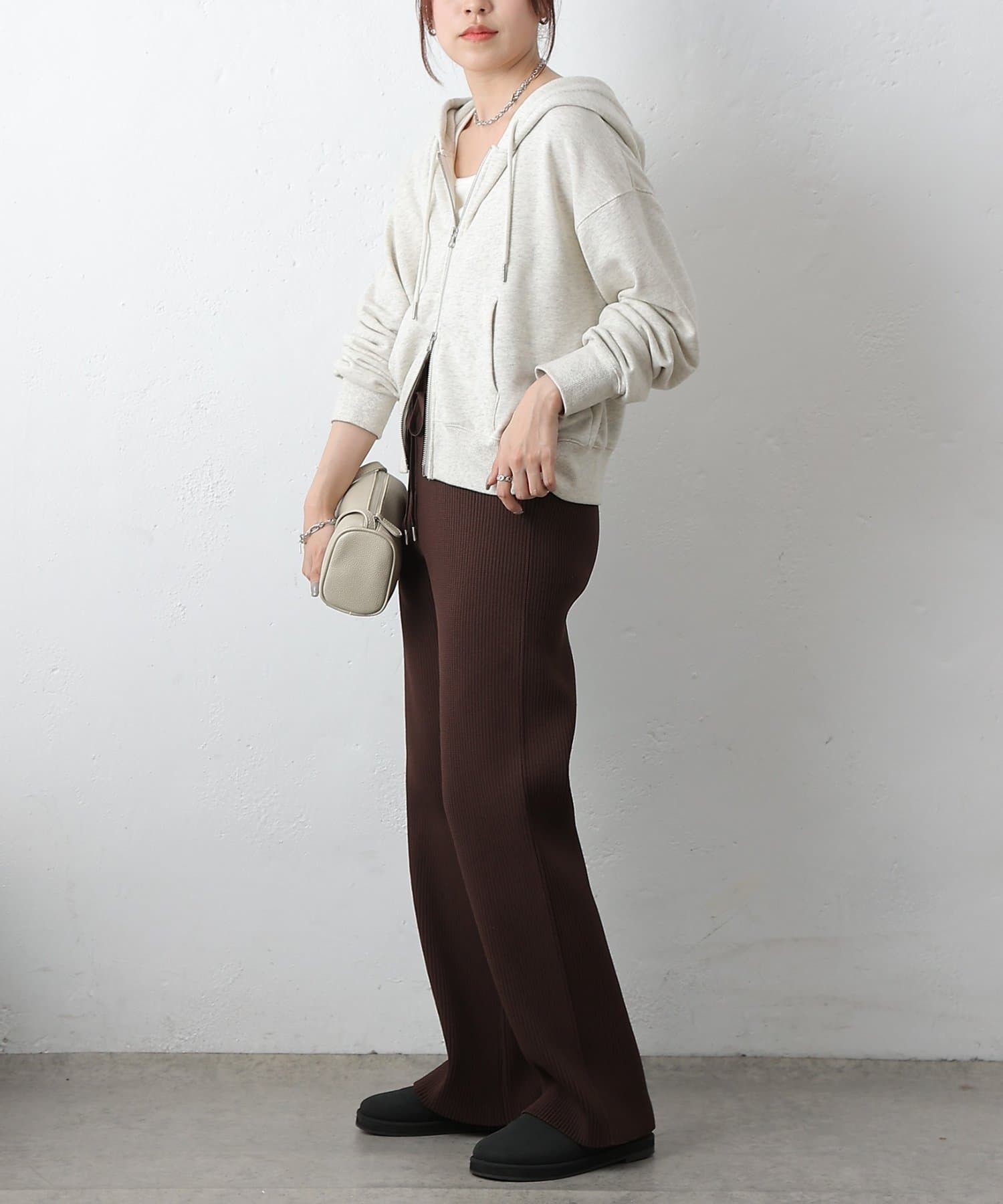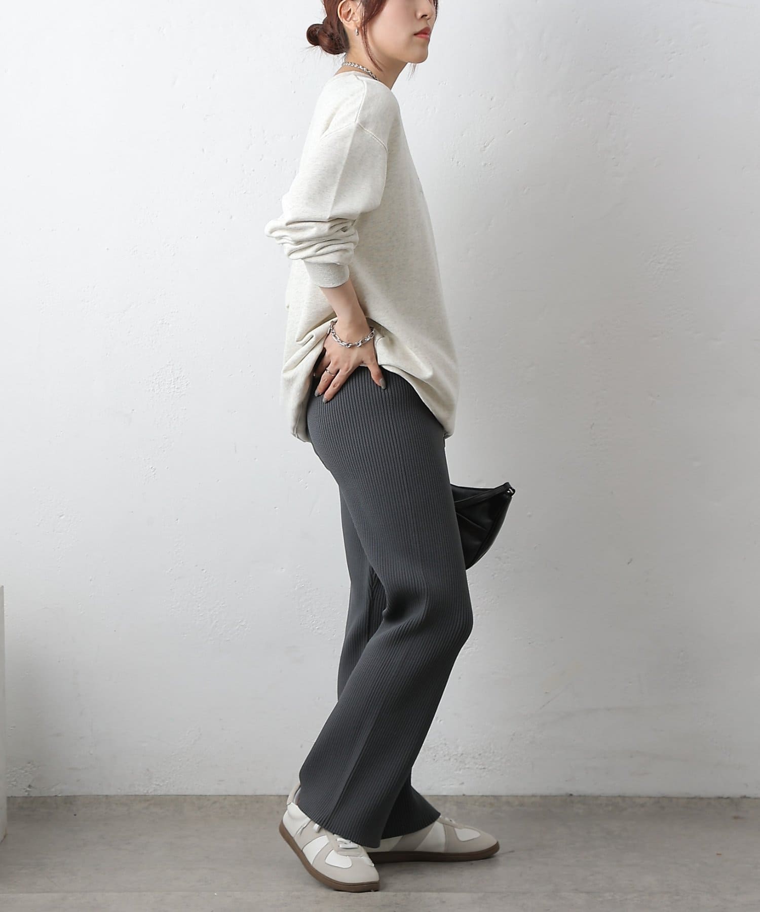 リブの縦ラインが、気になるレッグラインをすっきりと見せてくれるのも嬉しいポイント◎カジュアルになりすぎず、大人の女性らしい上品な印象を与えてくれます。シンプルなデザインなので、お手持ちのトップスと合わせやすく、コーディネートの幅が広がります。