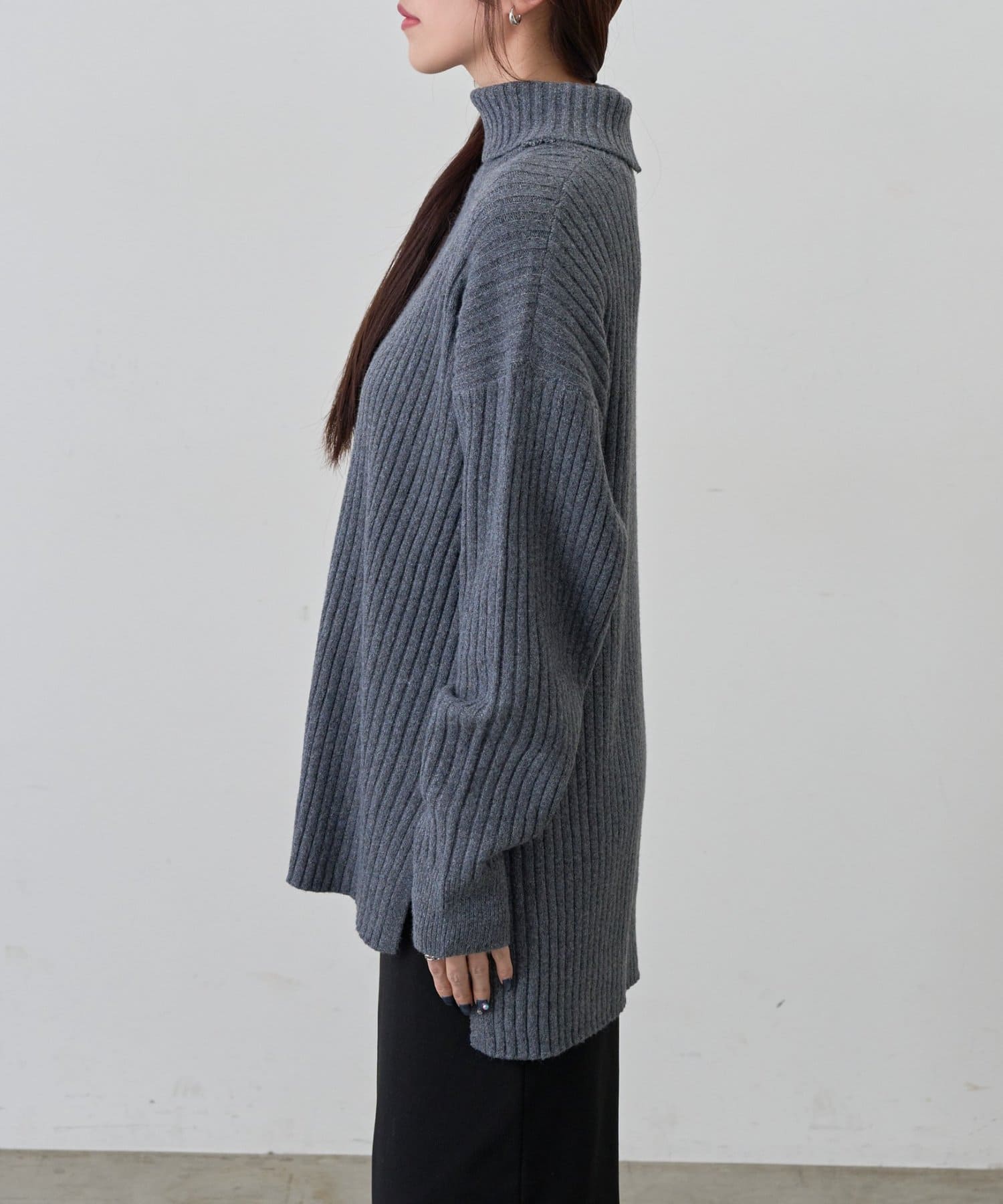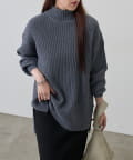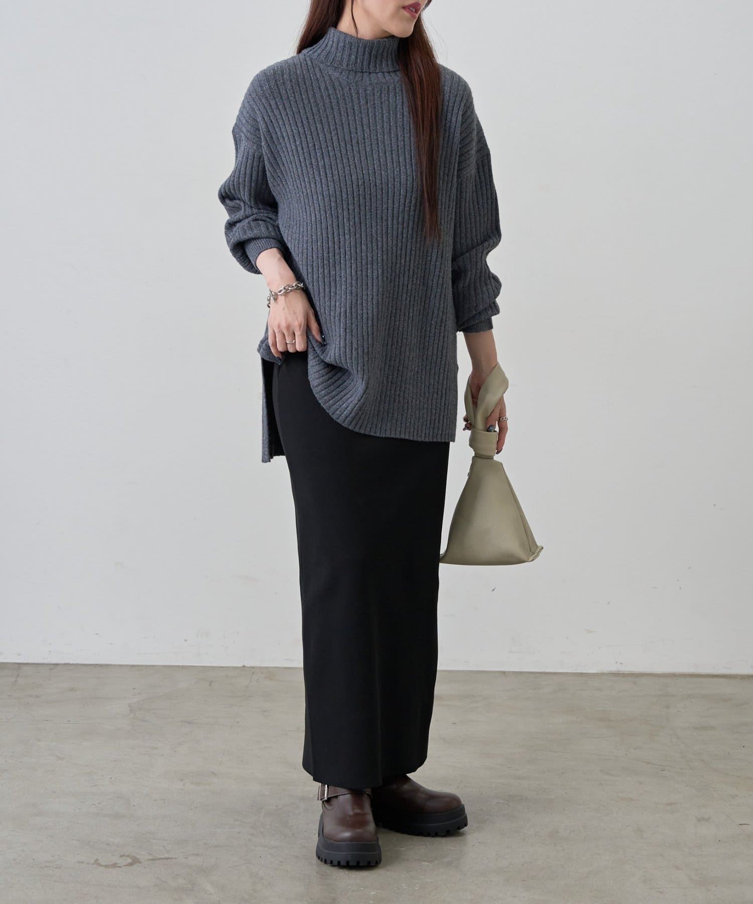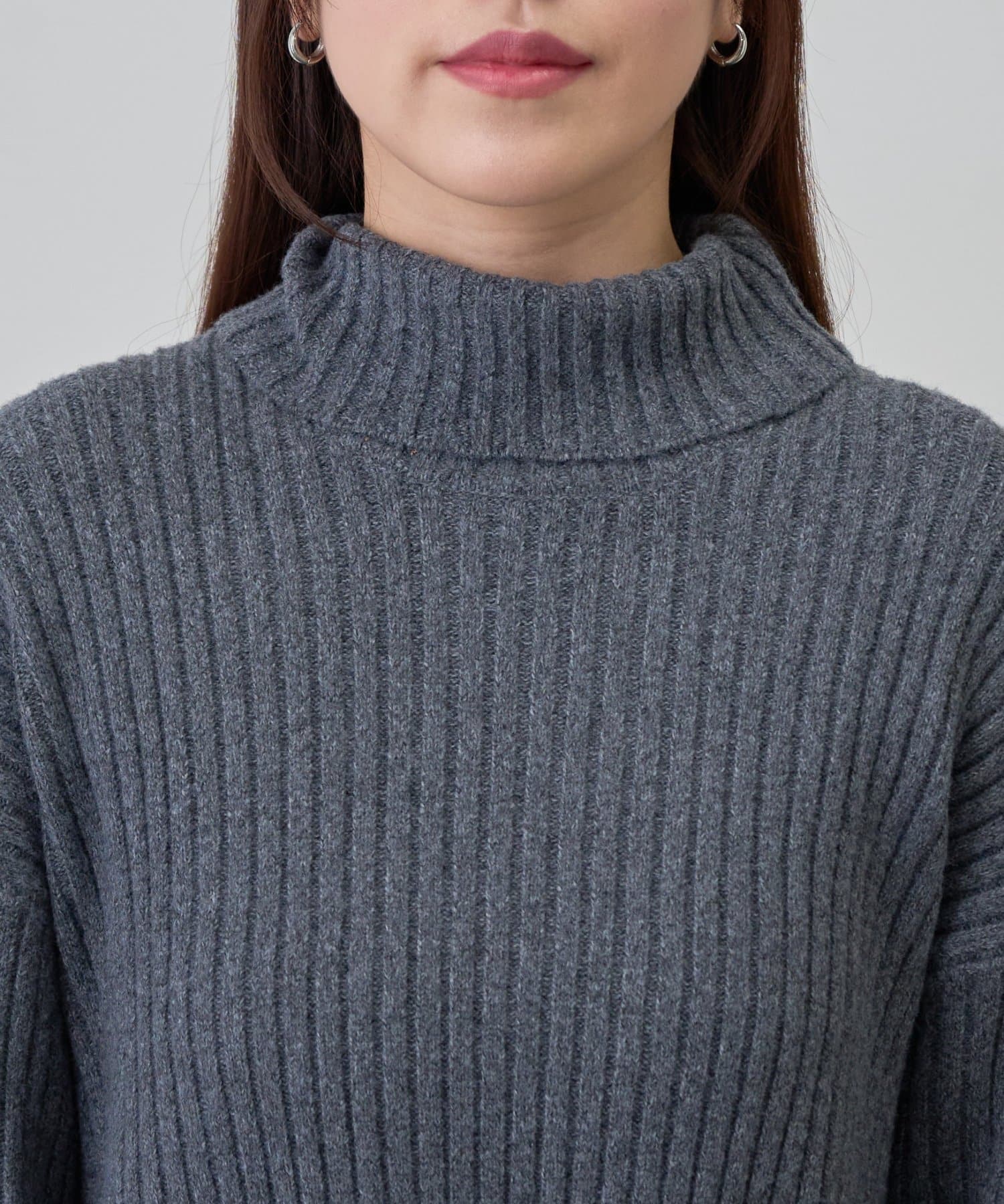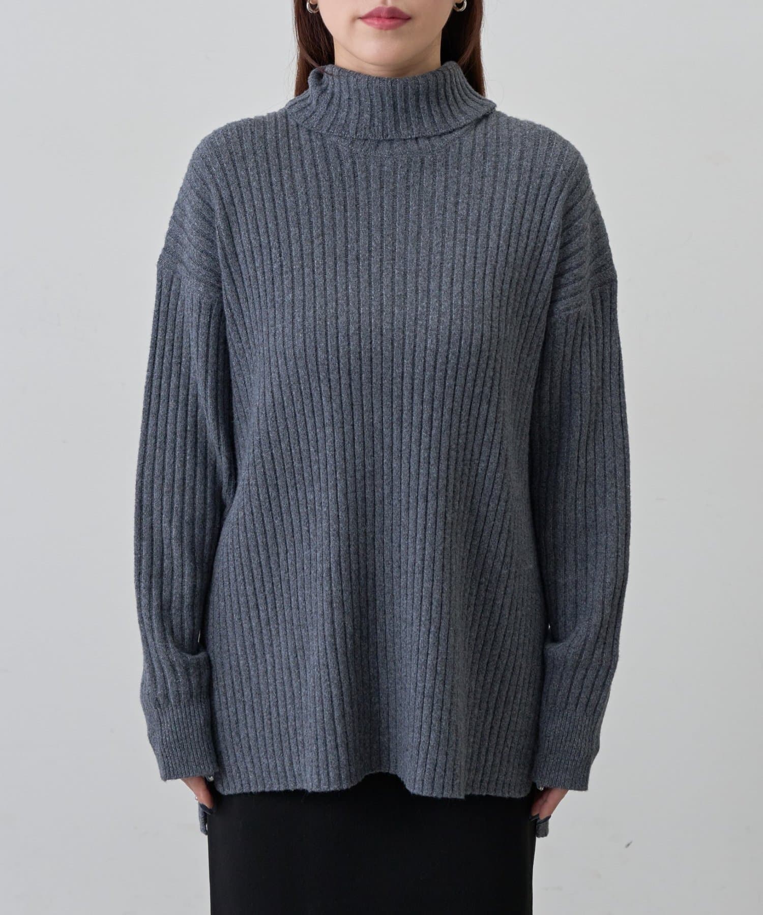 やわらかなリブ編み素材で仕上げたリラックスリブタートルニットです。