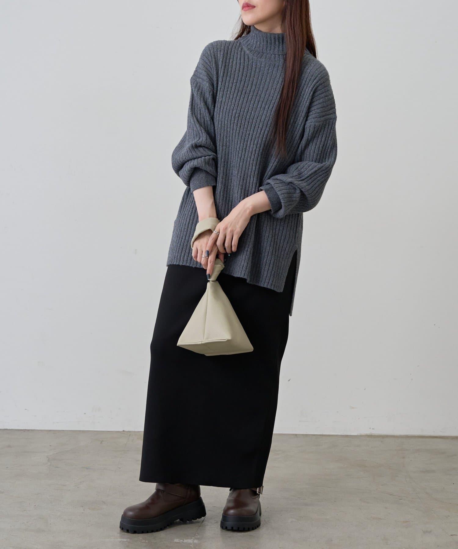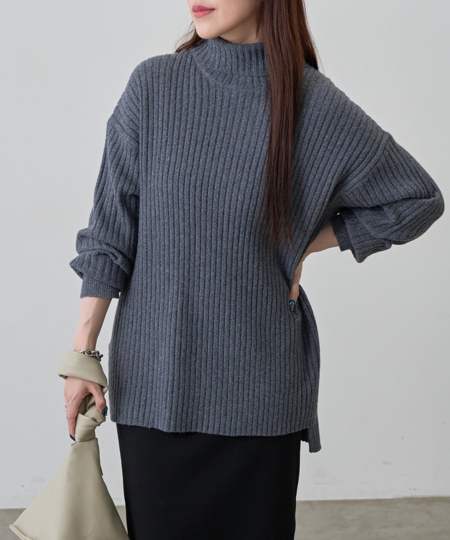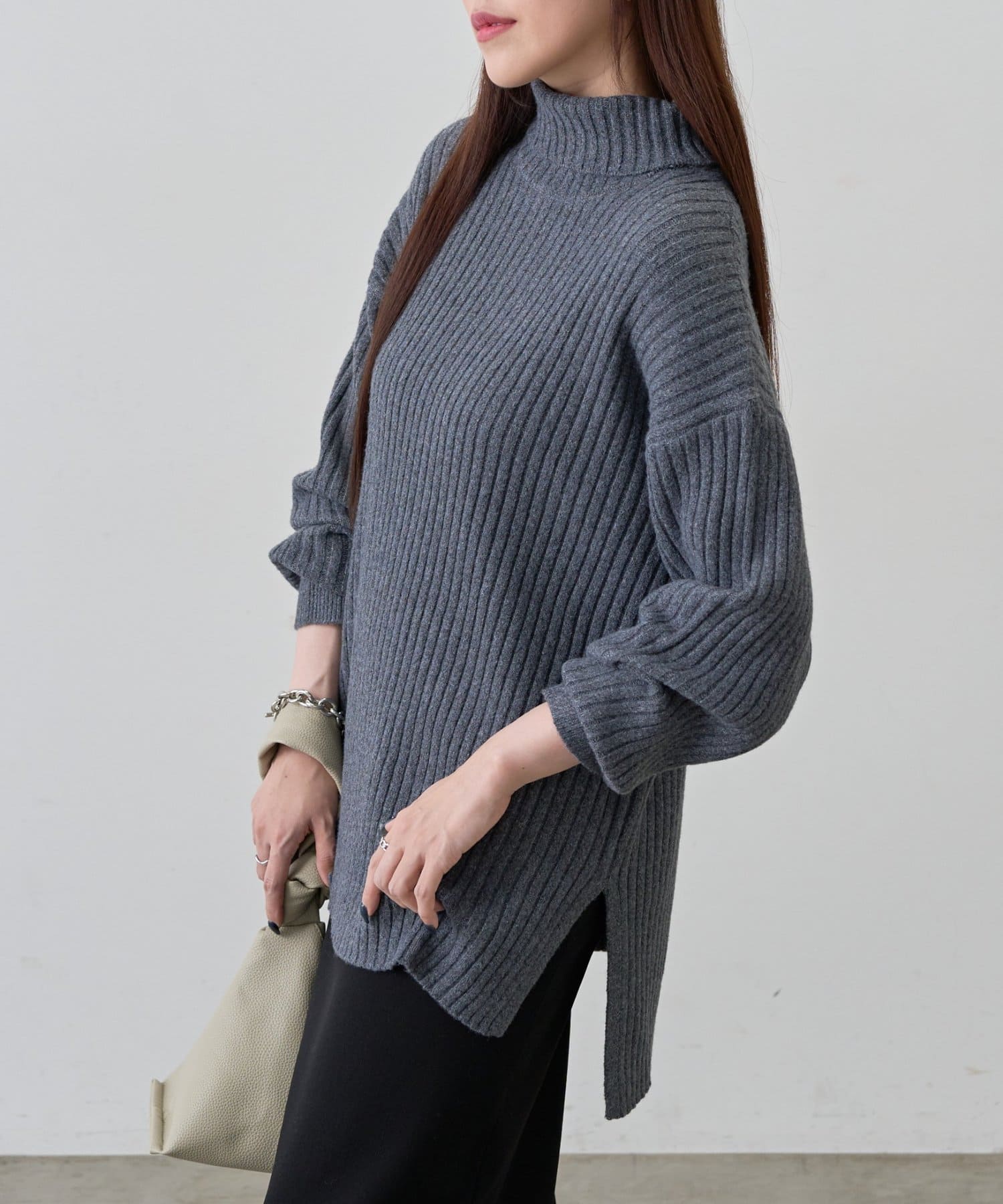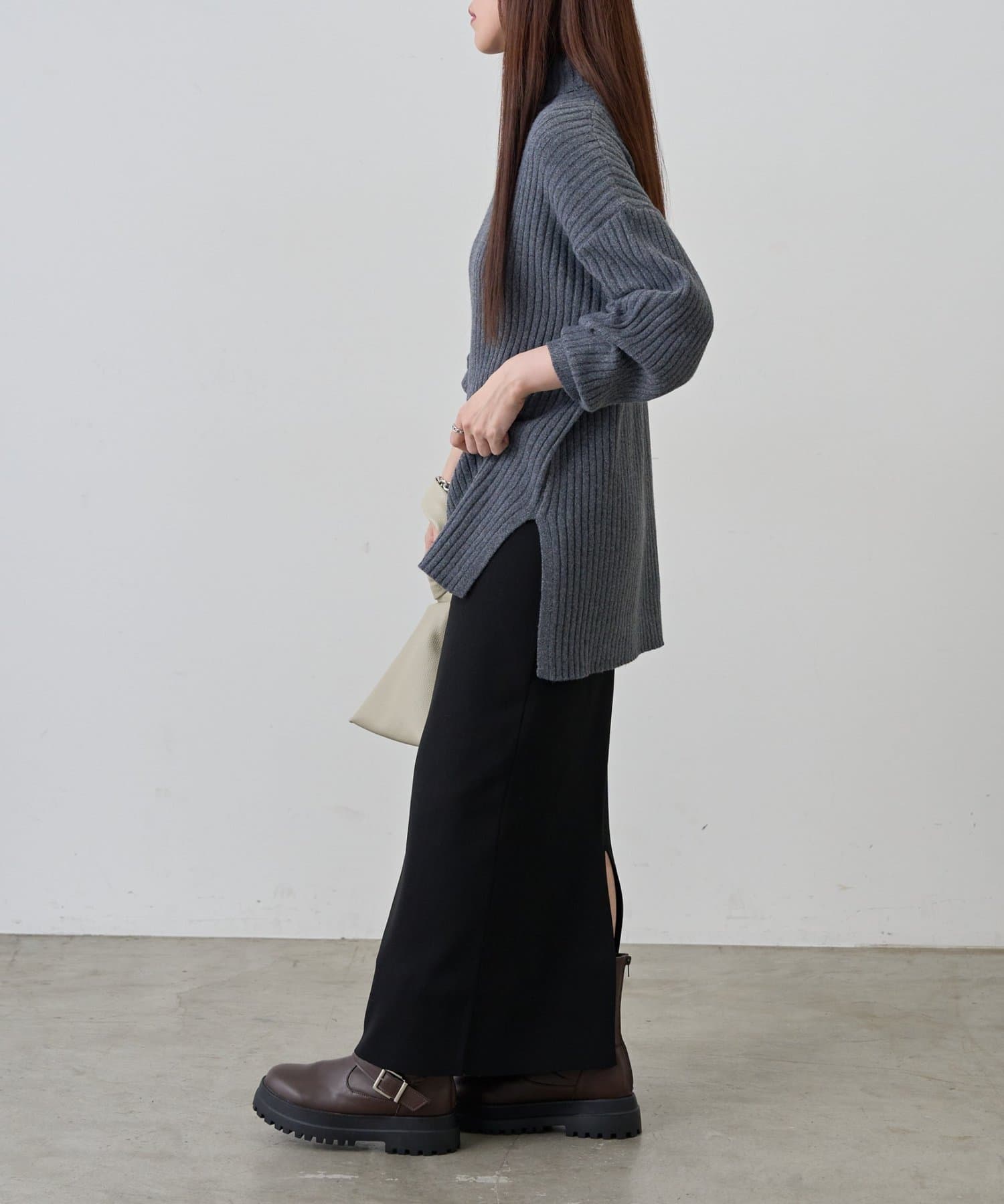 やわらかなリブ編み素材で仕上げたリラックスリブタートルニットです。