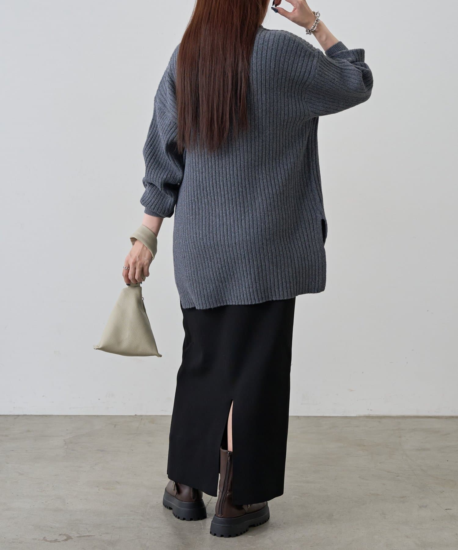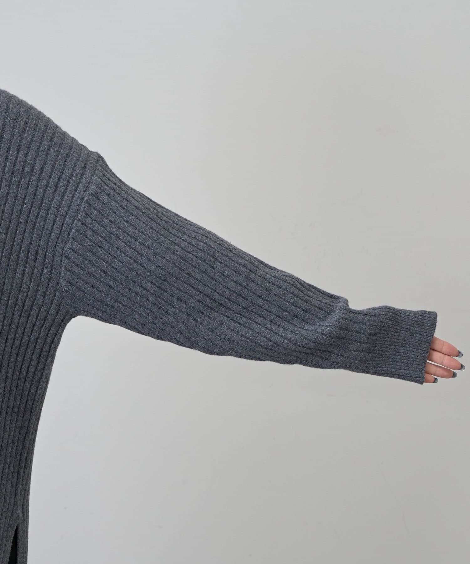 体にほどよくフィットするリブ編みで、美しいシルエットを演出。
