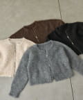 ウール混であたたかなブークレニットのカーディガン。