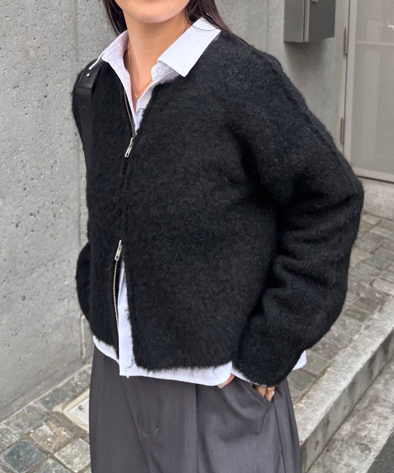 やわらかく立体感のある素材でアウター感覚でも着用できるのも嬉しいポイント◎