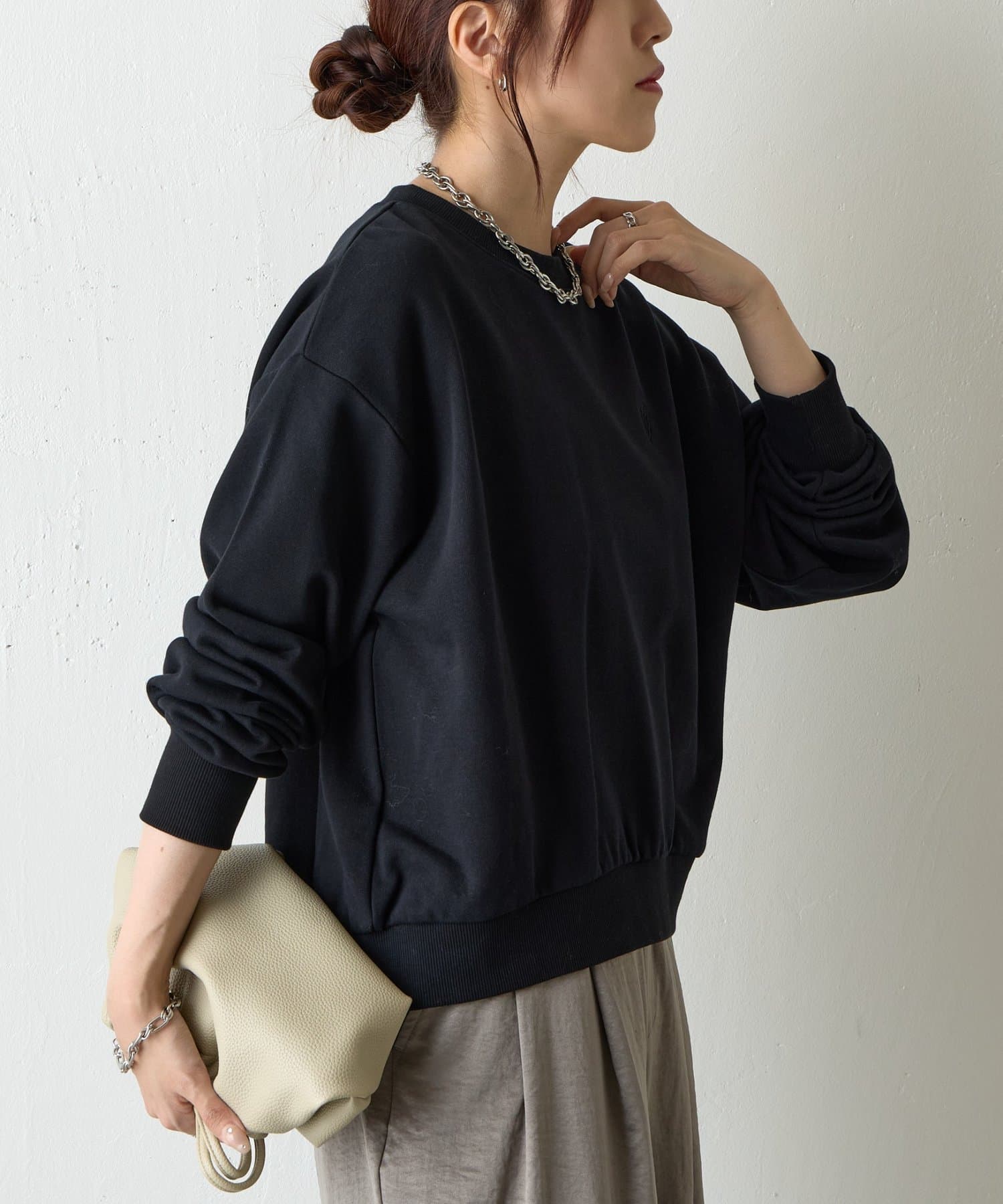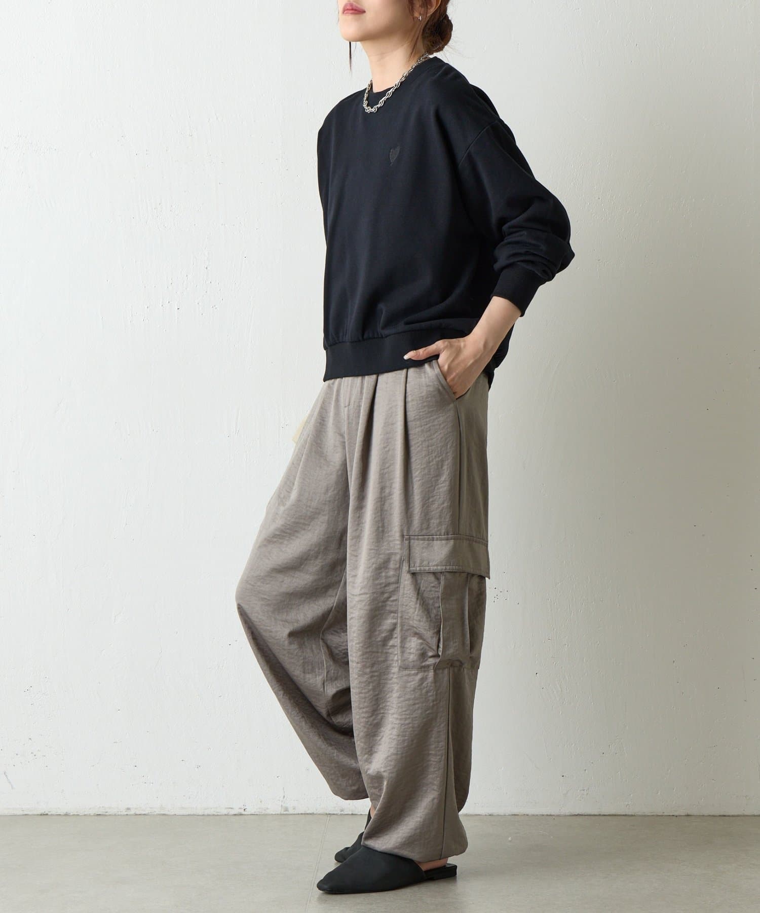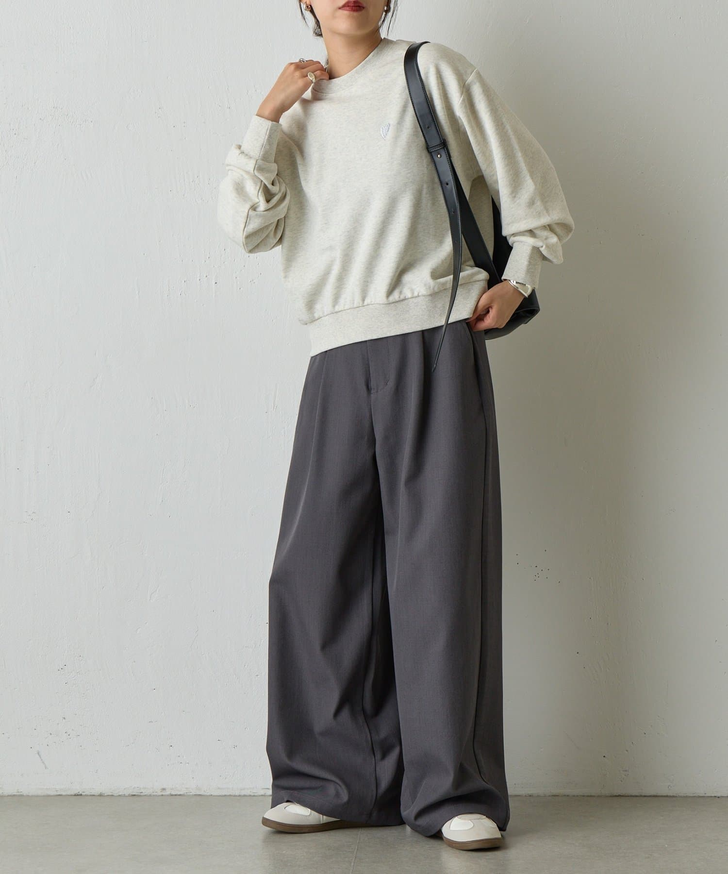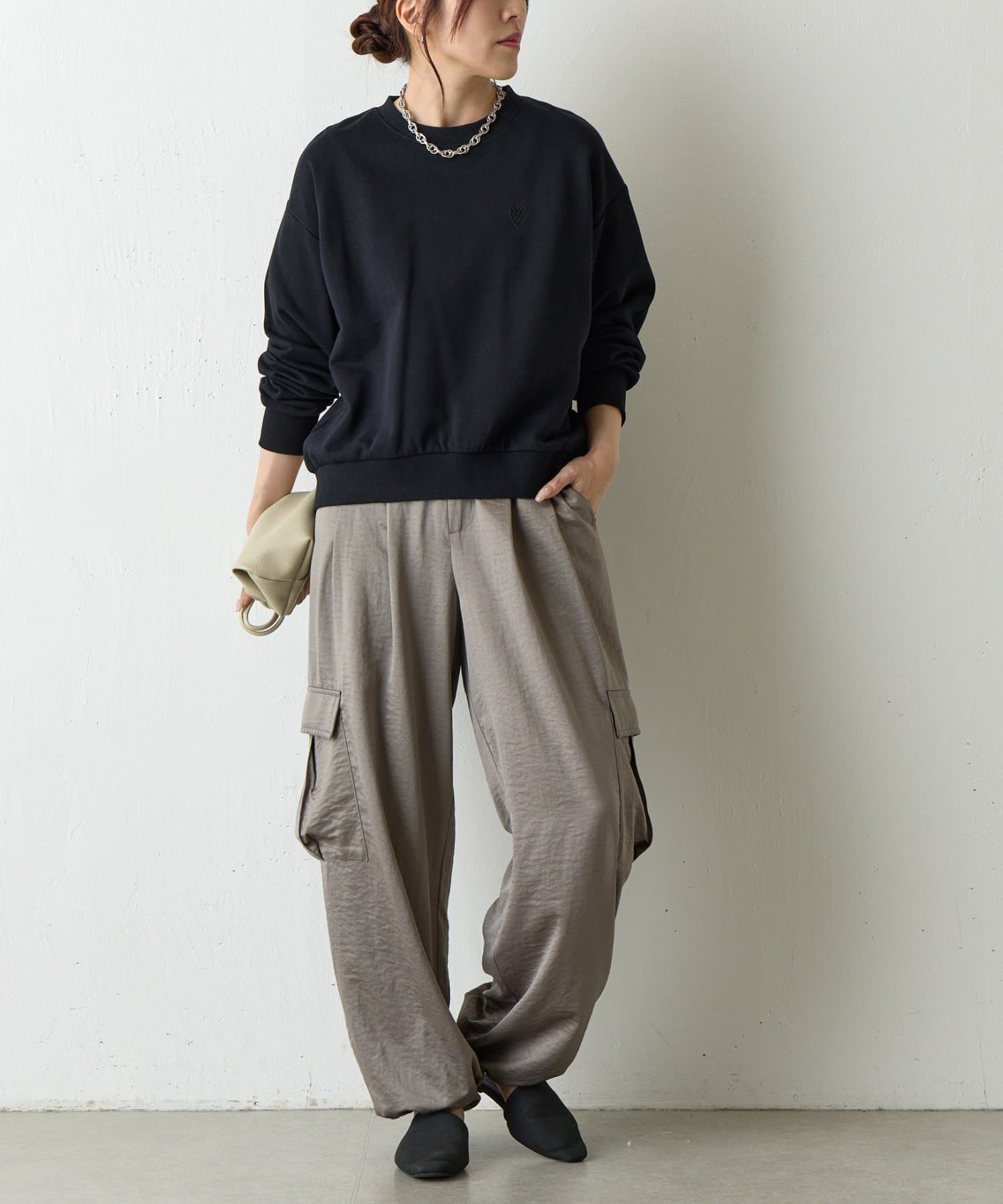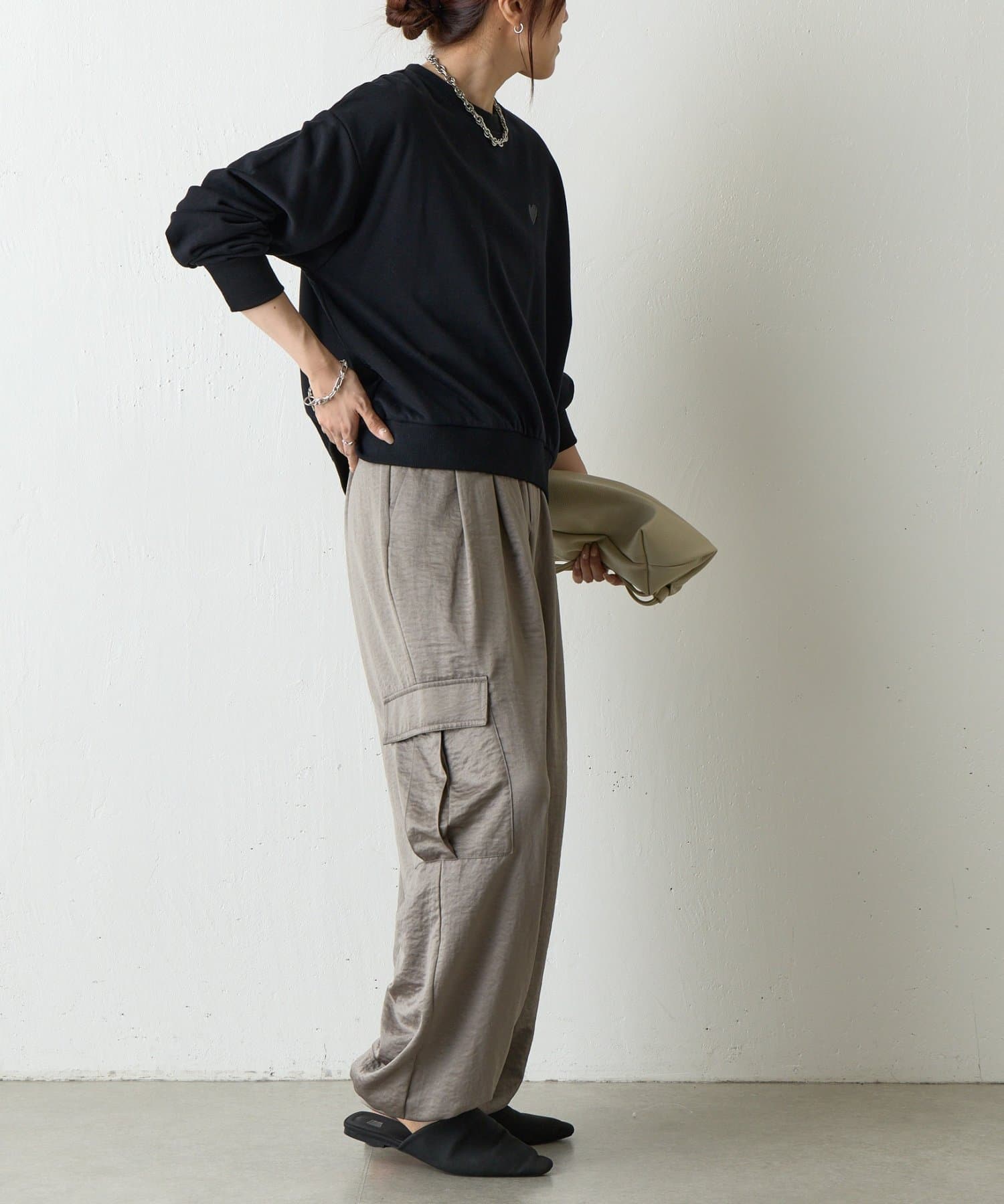 全体の色味と同系色の刺繍がさりげないワンポイントのハート刺繍プルオーバーです。