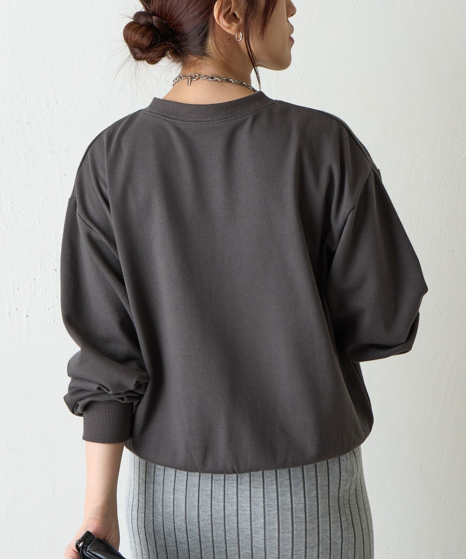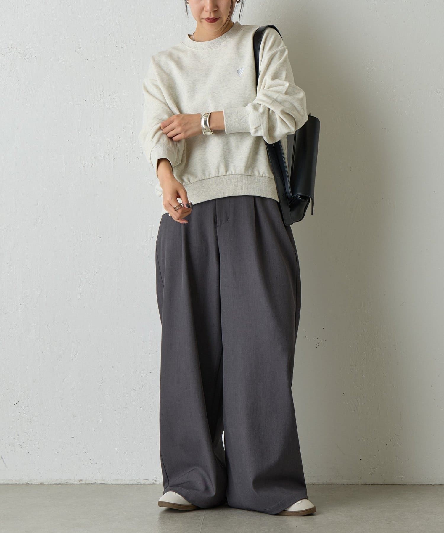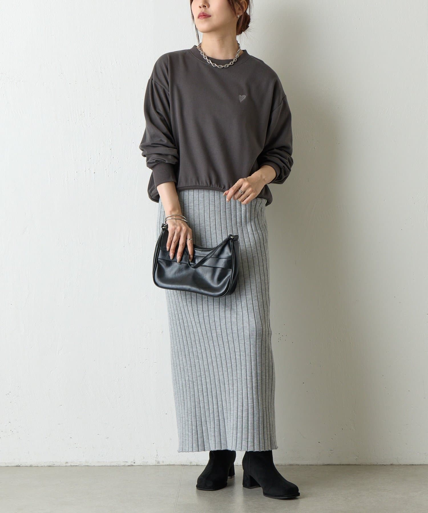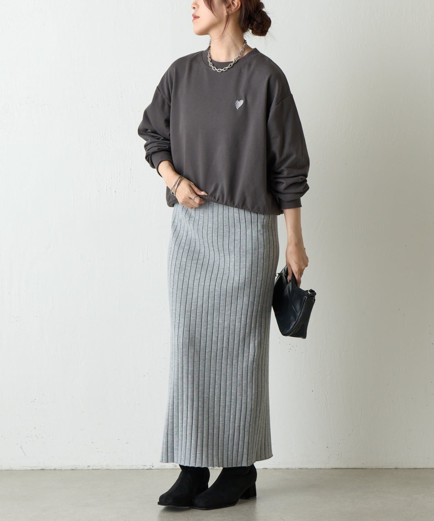 ハートモチーフを取り入れたいけれど、子供っぽく見せたくない、そんな方にもおすすめの大人かわいいスウェットです。