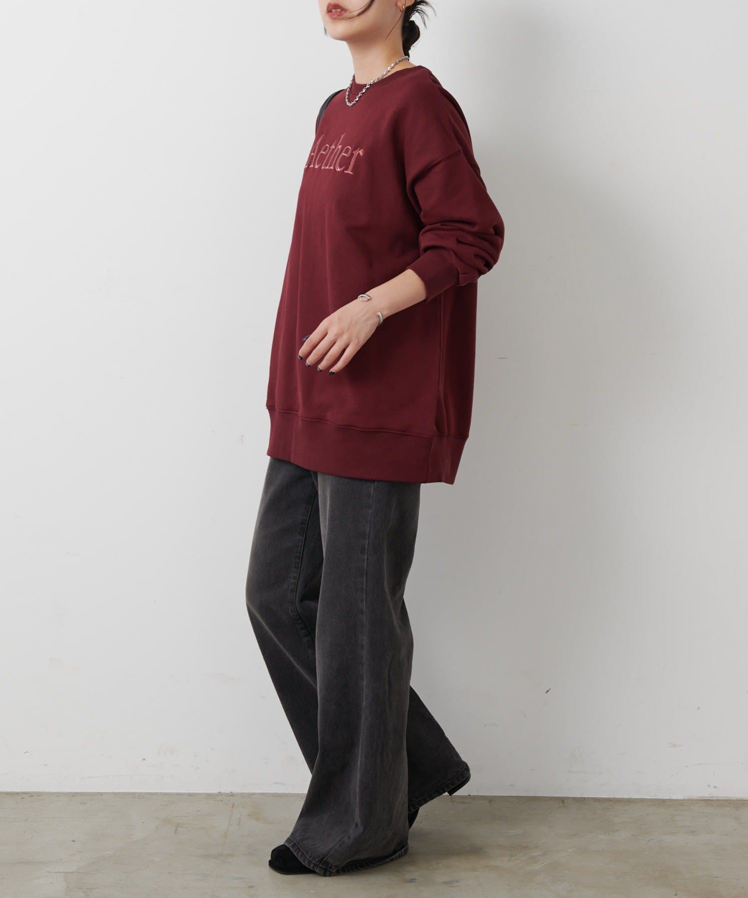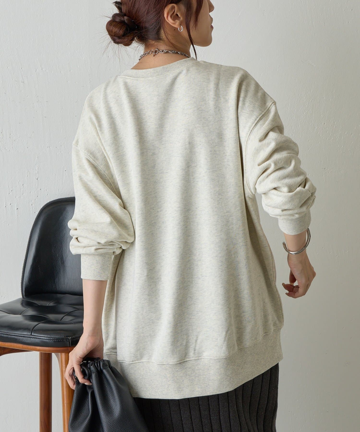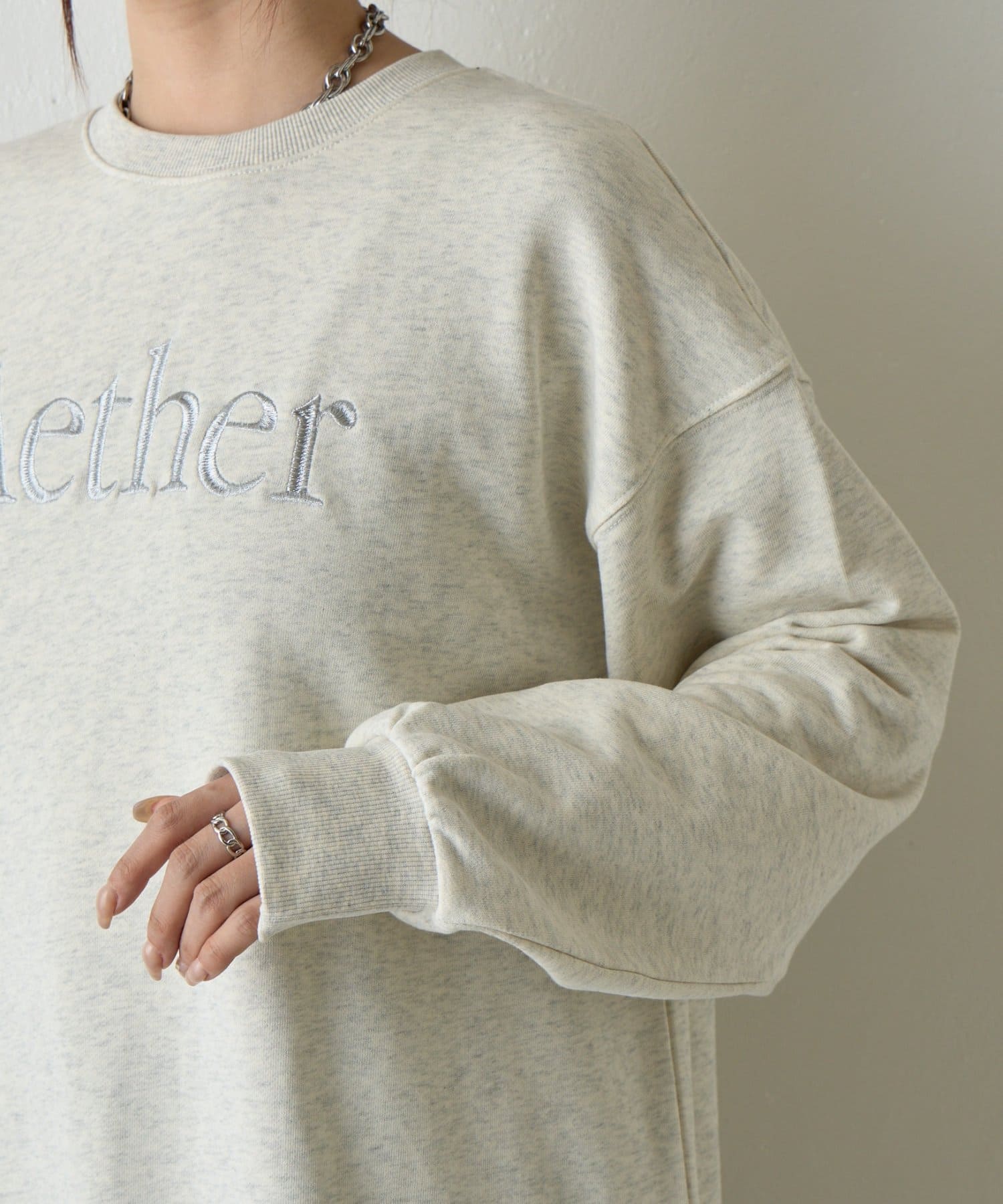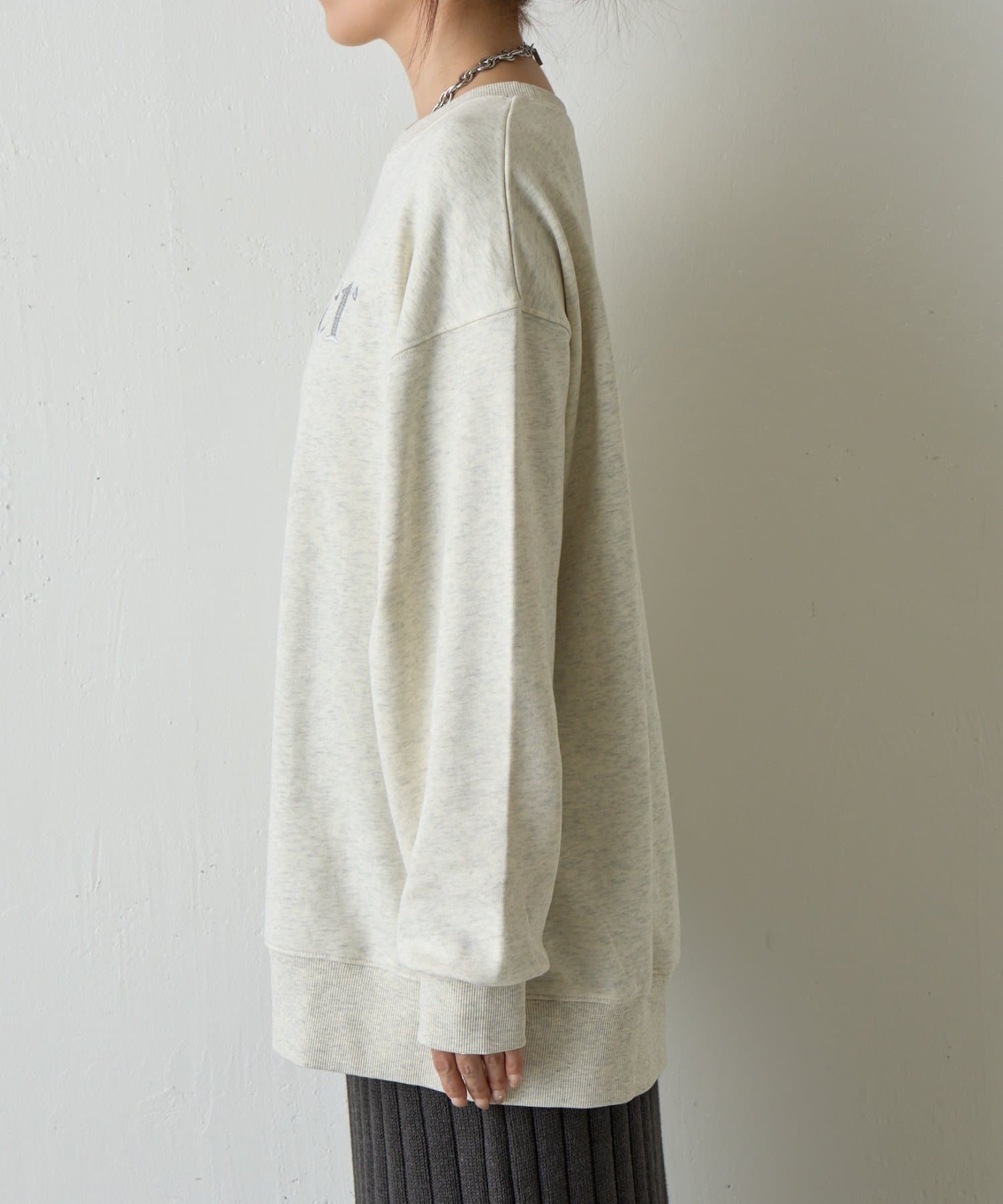 ゆとりのあるシルエットと、全体と同系色の刺繍がポイントのオーバースウェットプルオーバーです。