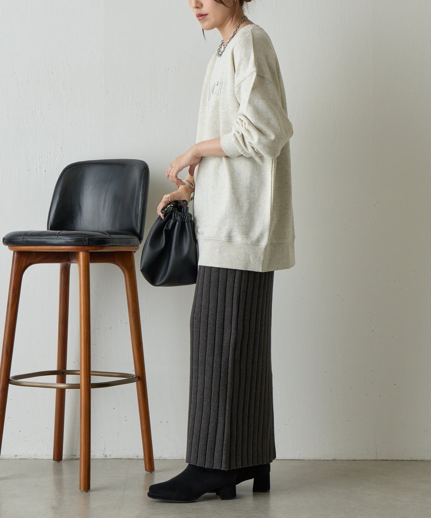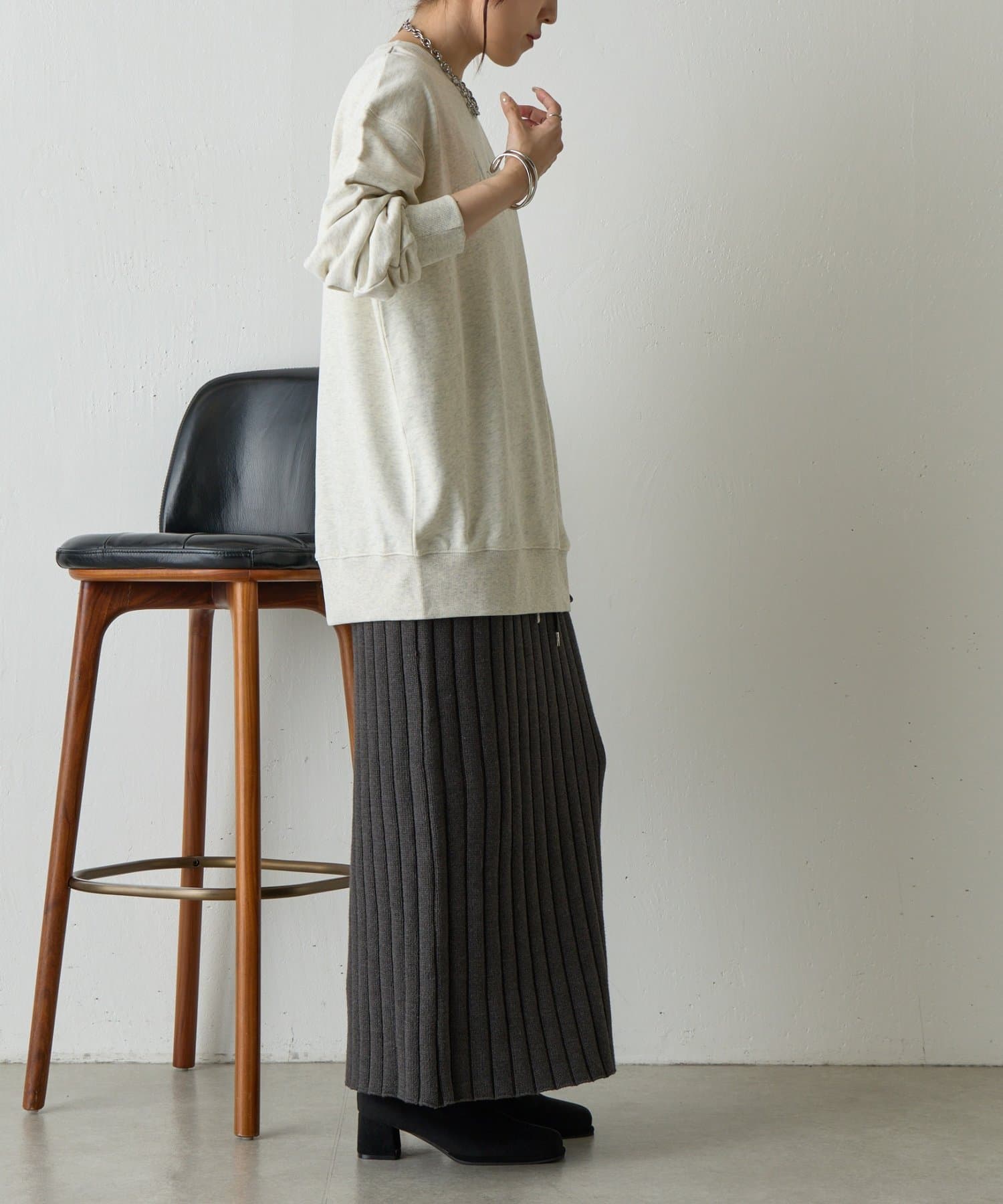デニムはもちろん、スカートとも相性が良く着回ししやすいプルオーバーです。