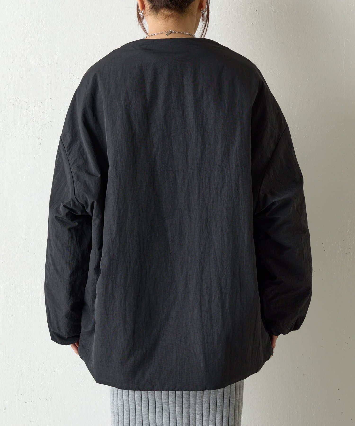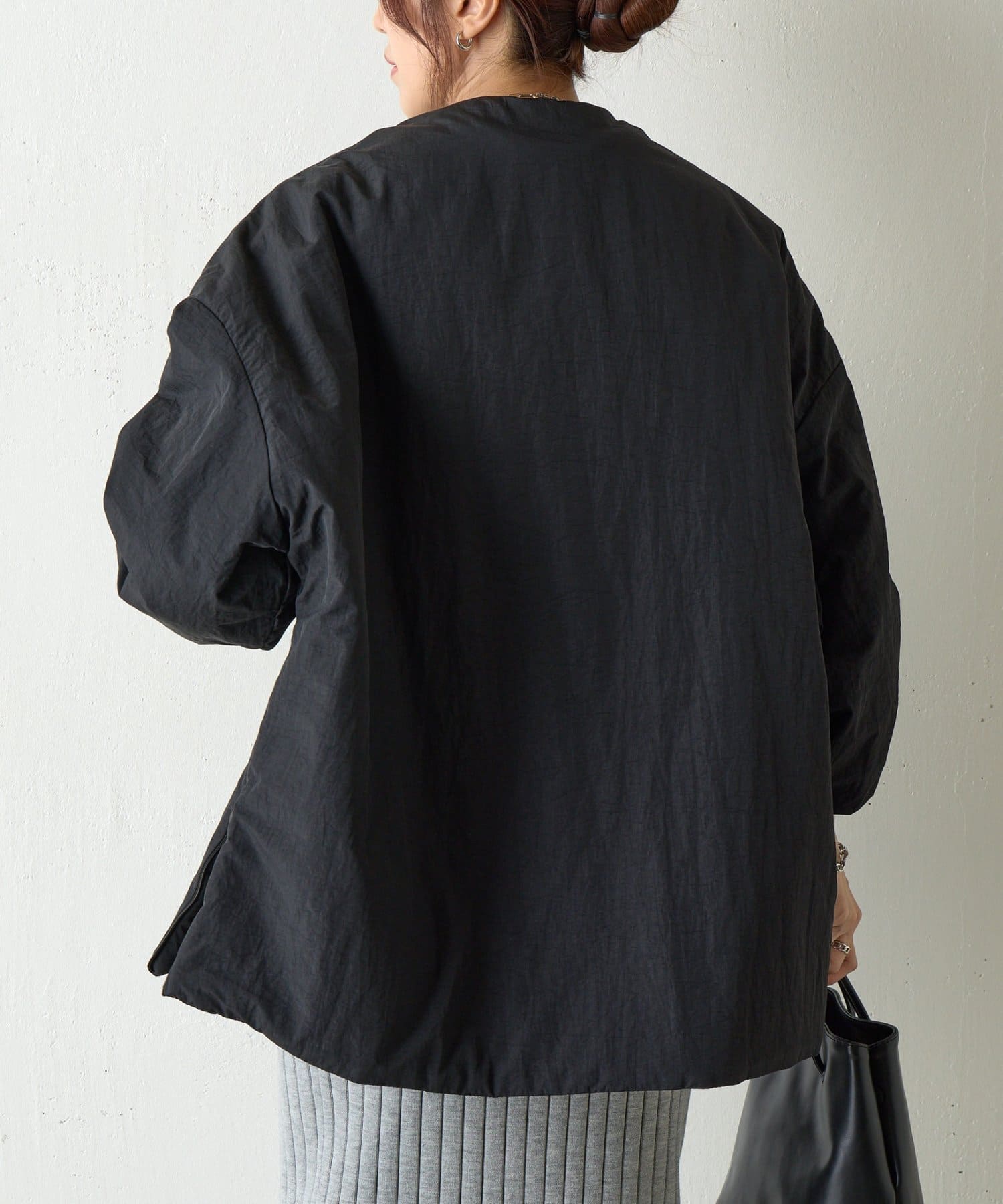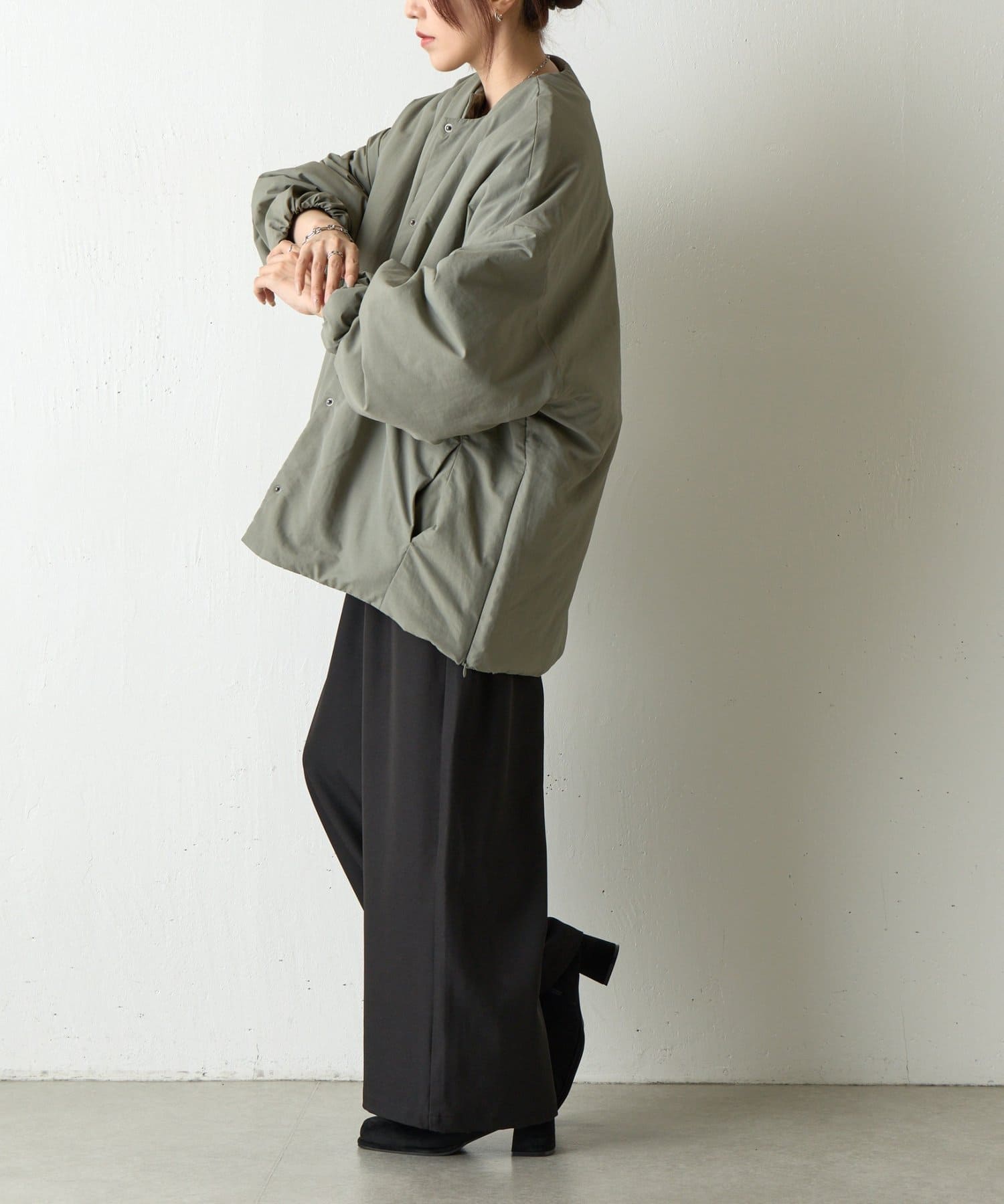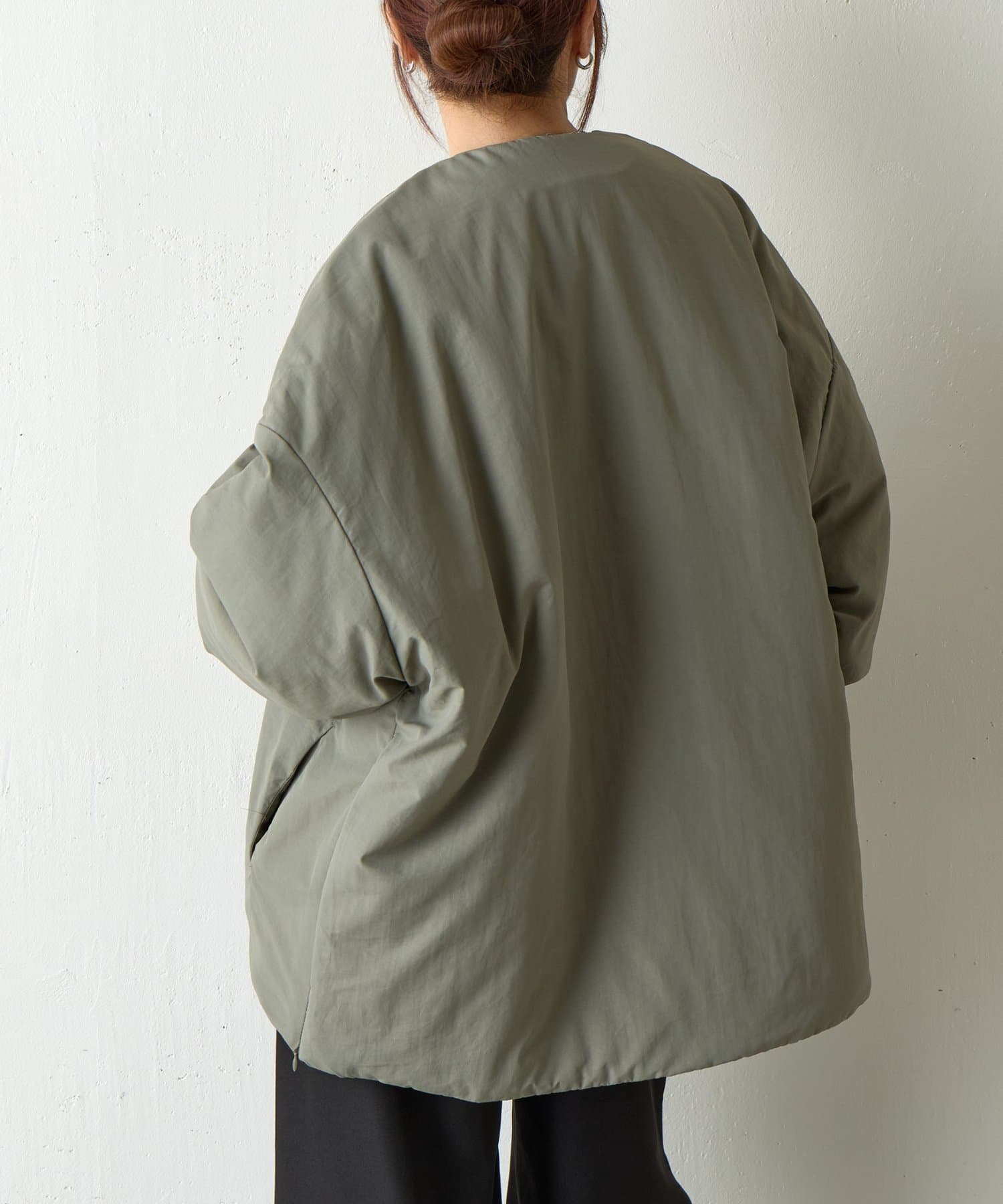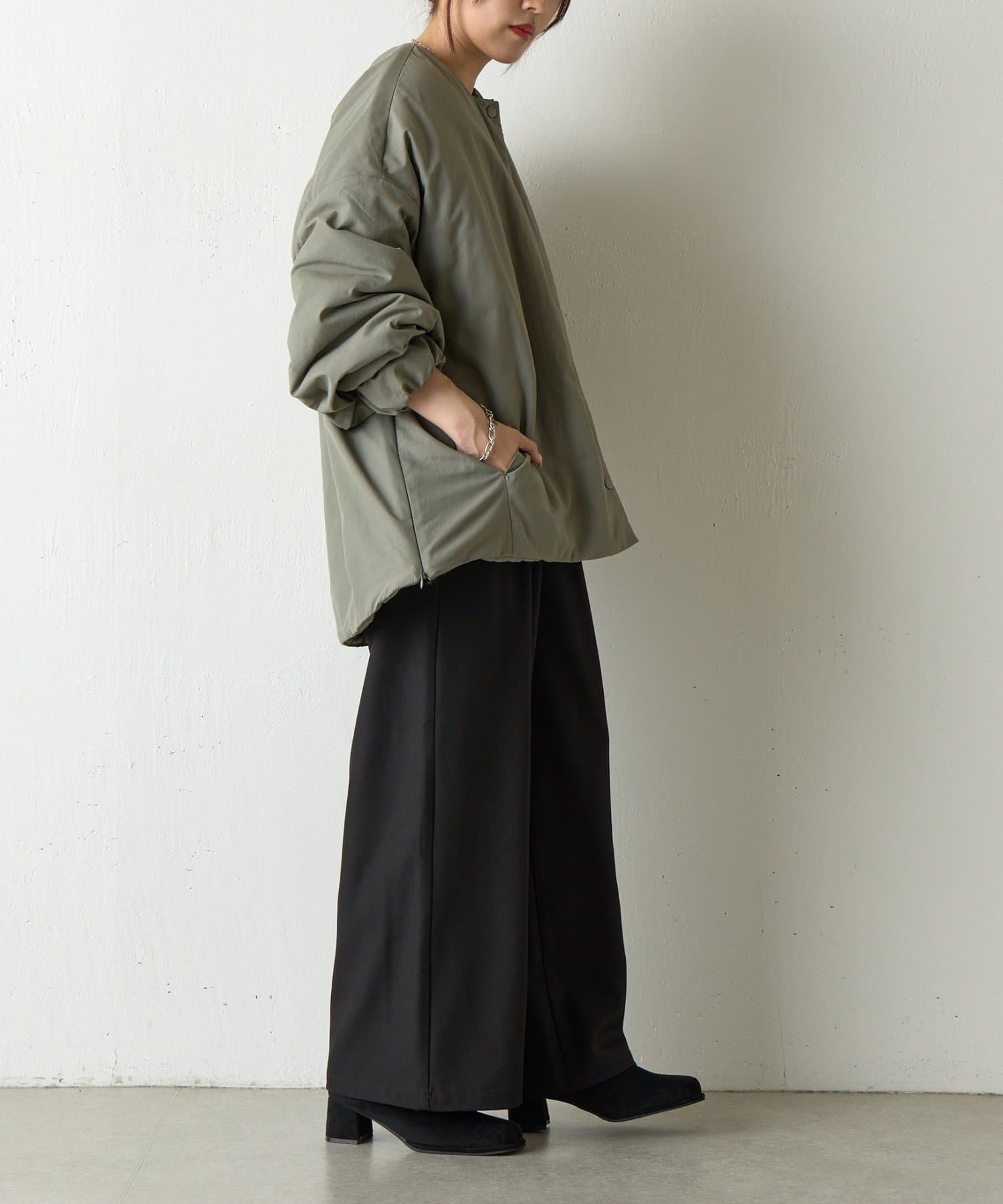 【WEB限定】サイドZIPノーカラー中綿ジャケット