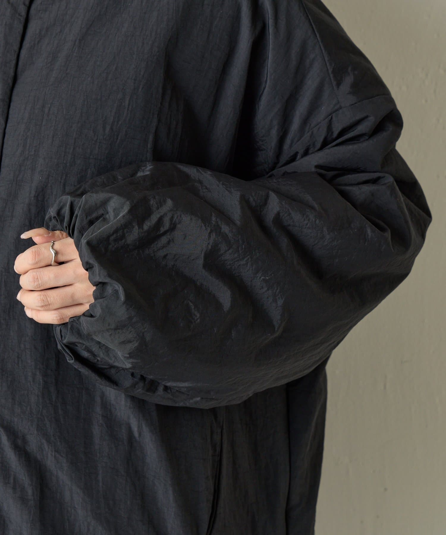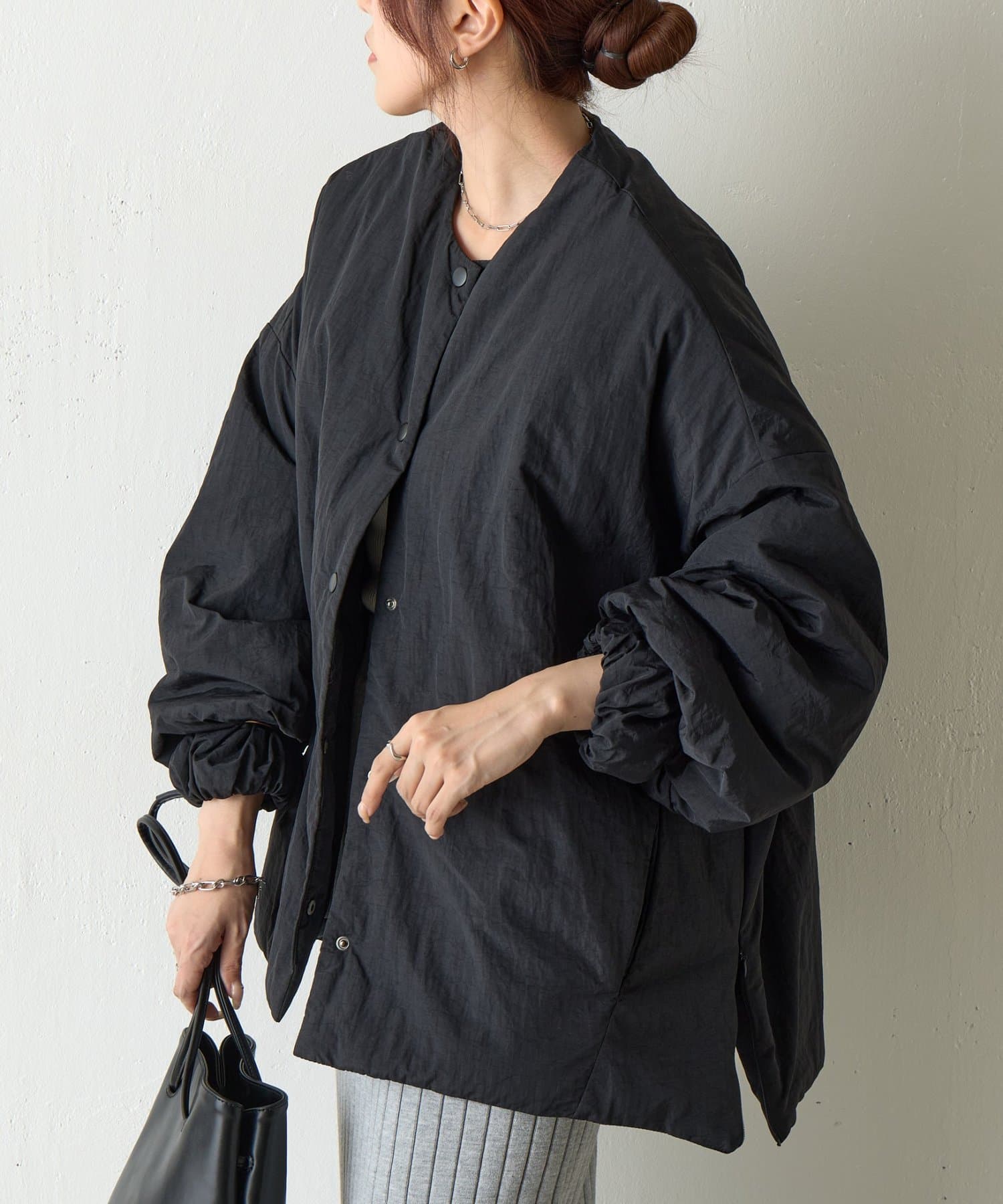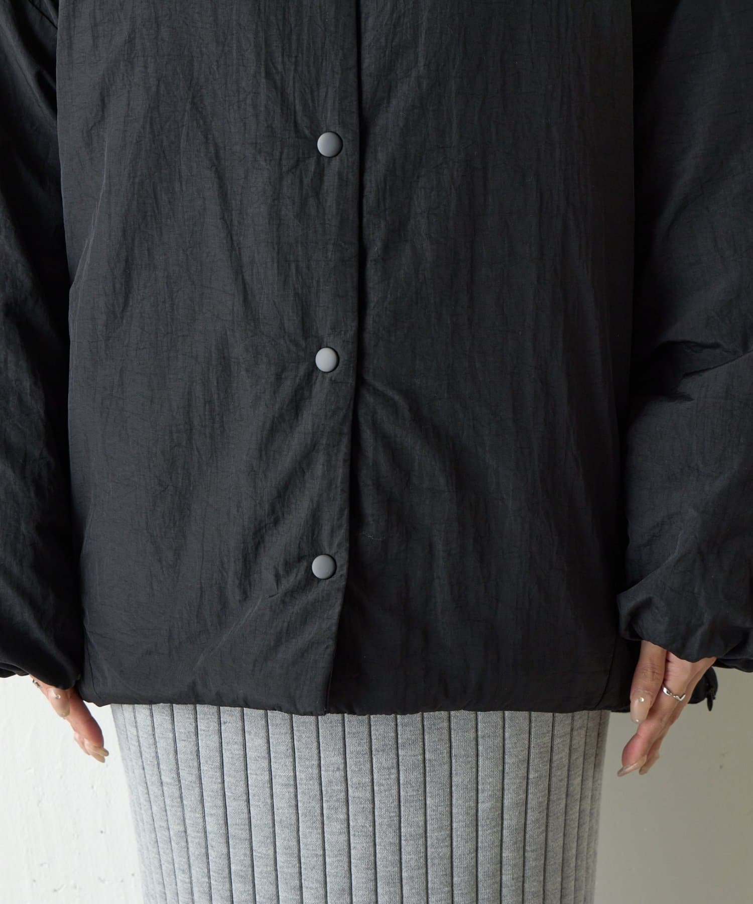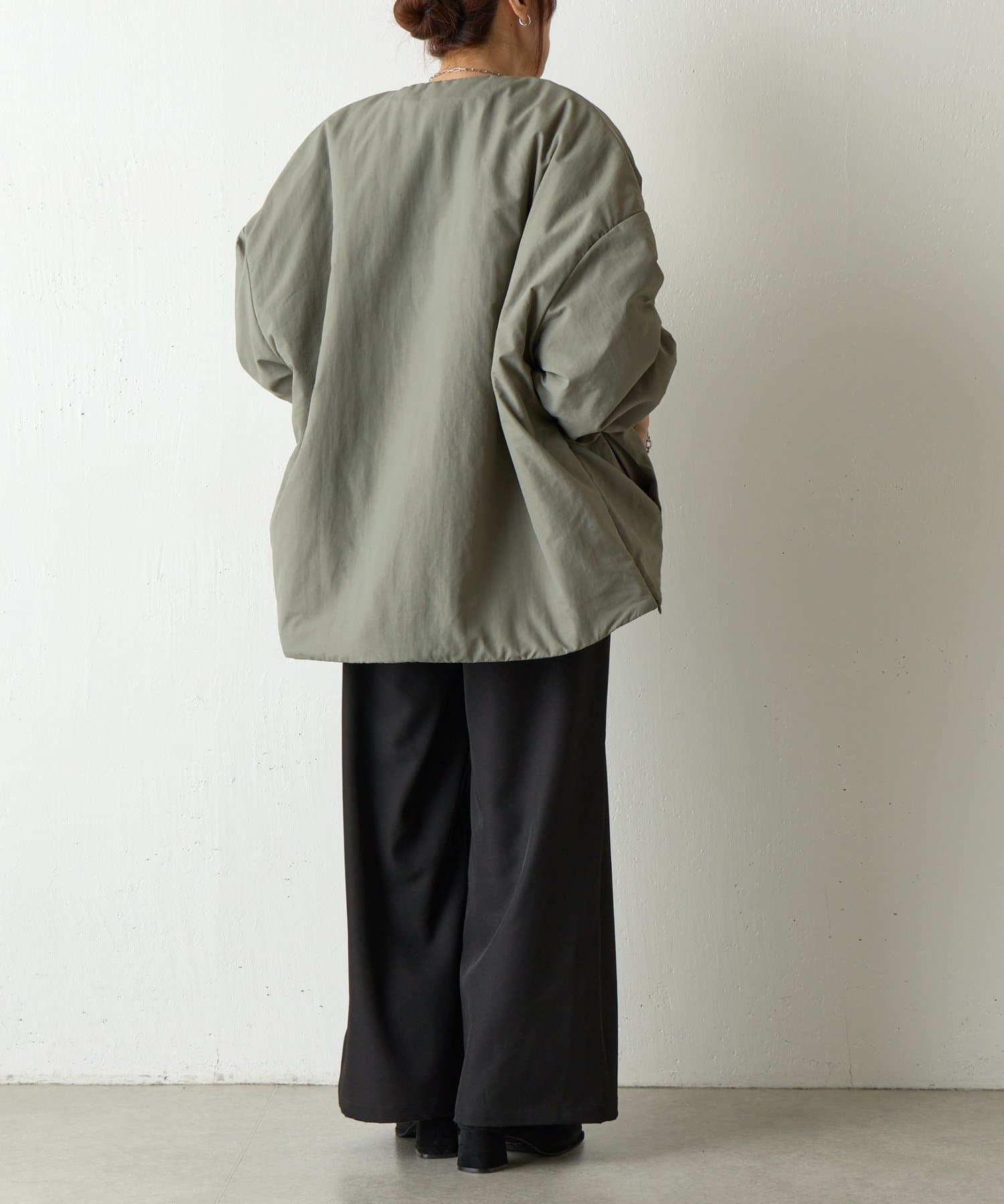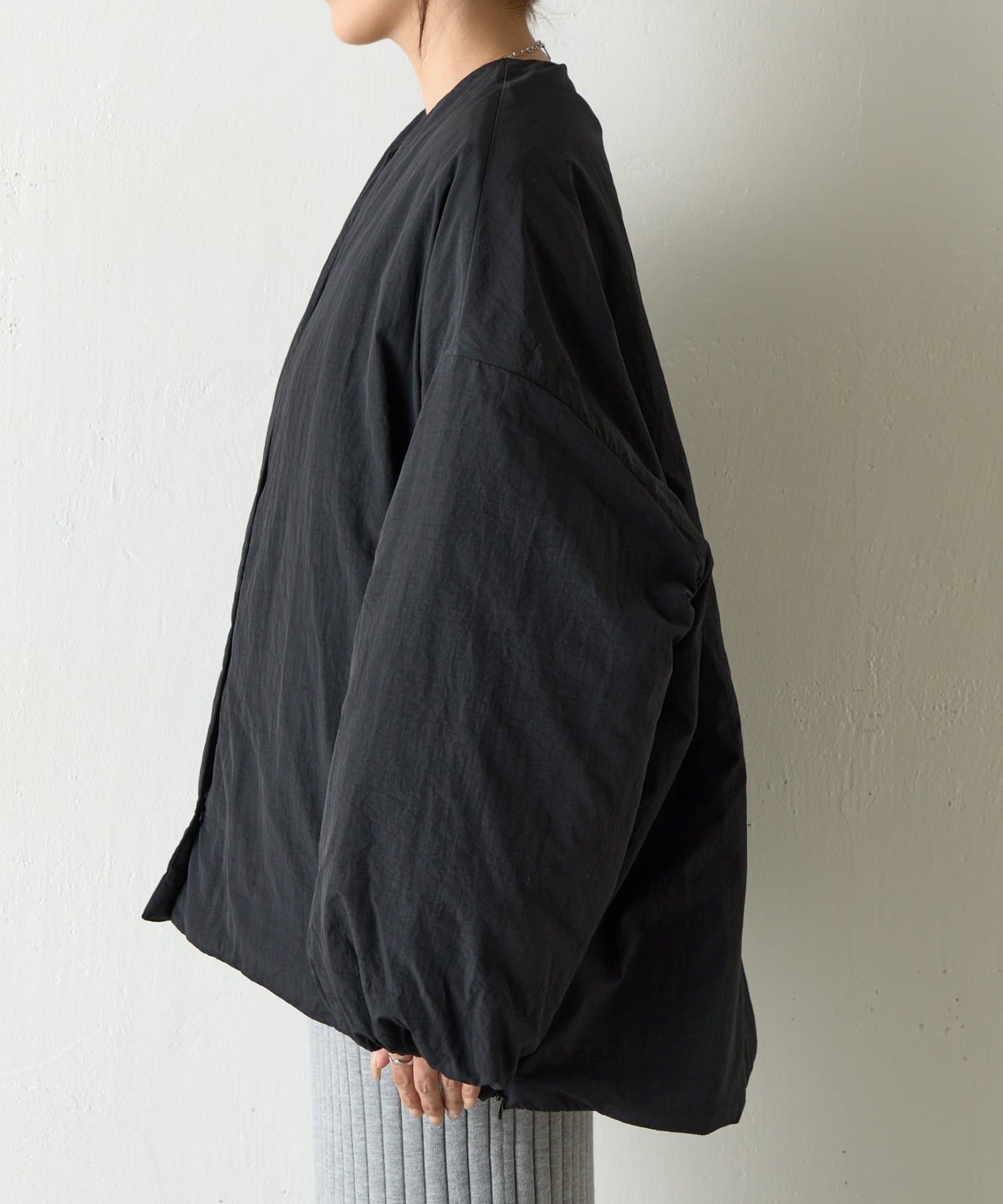 【WEB限定】サイドZIPノーカラー中綿ジャケット