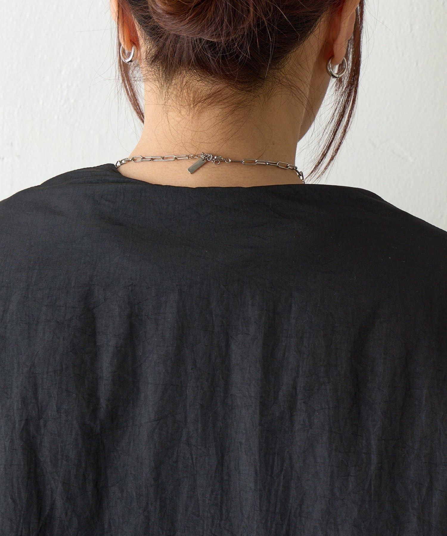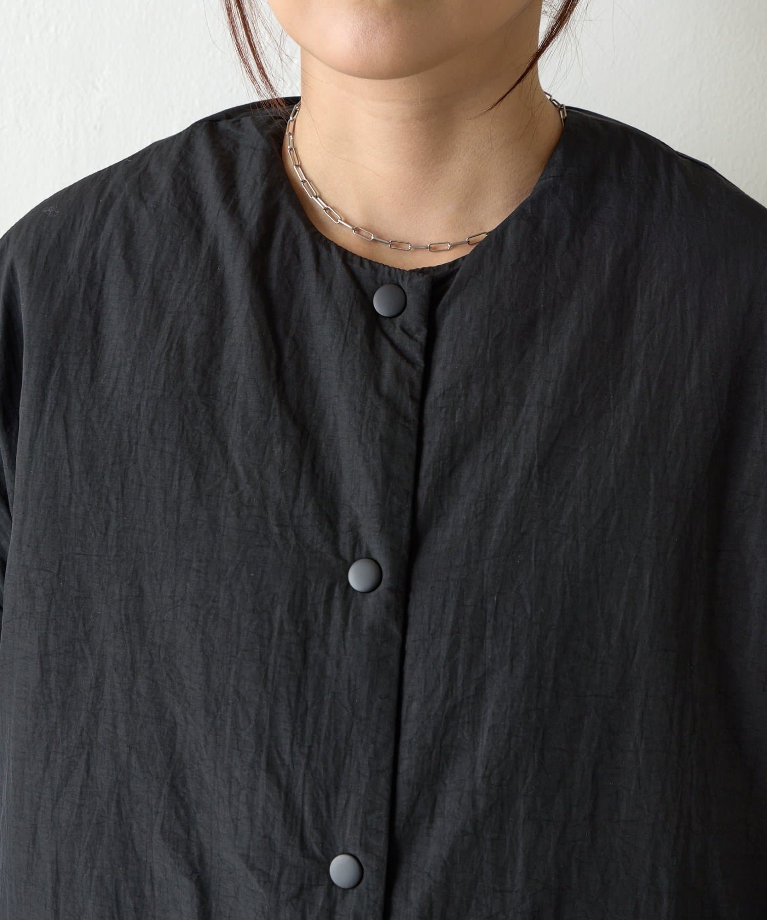 ・首元すっきりのノーカラーデザイン