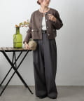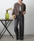同素材のボトムと合わせれば、セットアップスタイルも楽しめます。