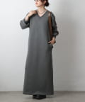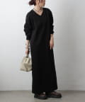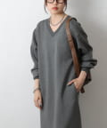 上品な印象とリラクシーな着心地を両立した、ダンボール素材のVネックワンピースです。