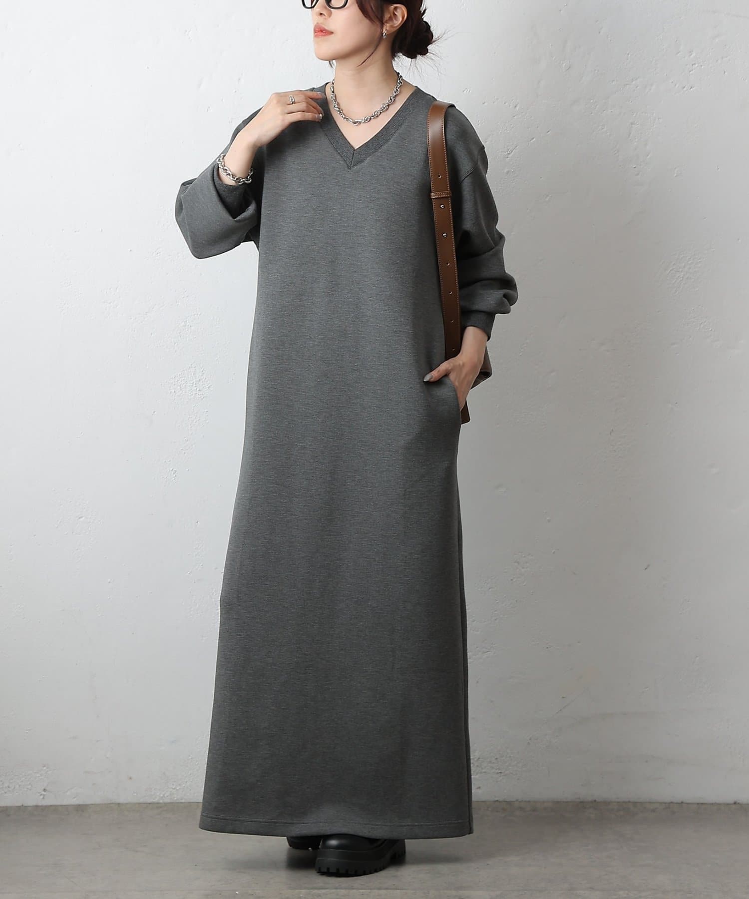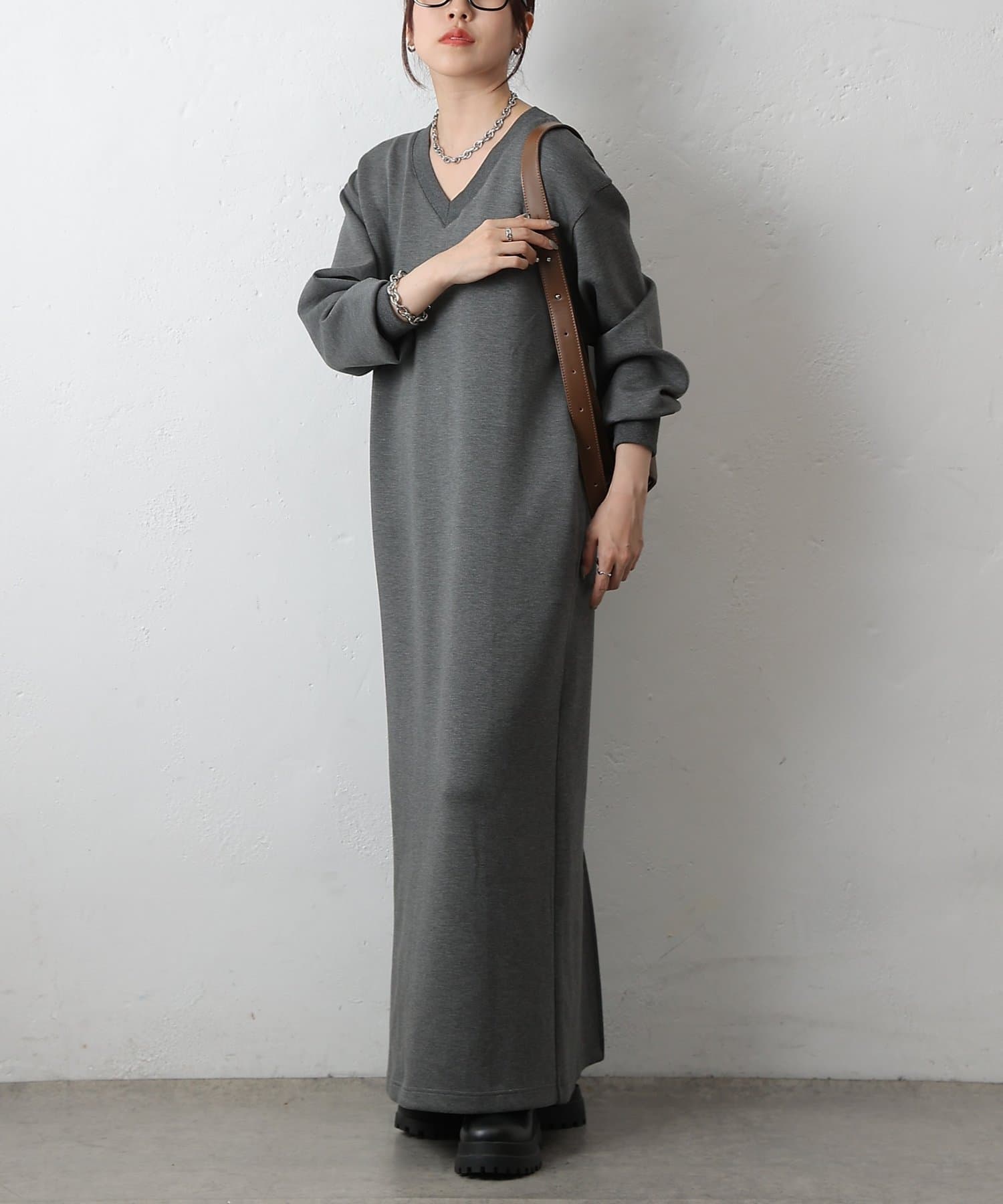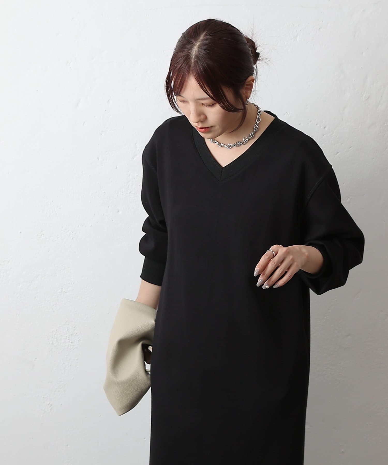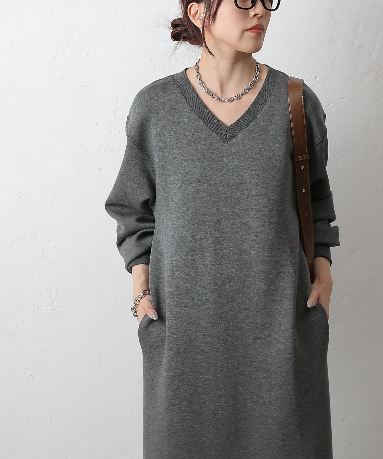 【美シルエット×快適素材、ダンボールVネックワンピース】