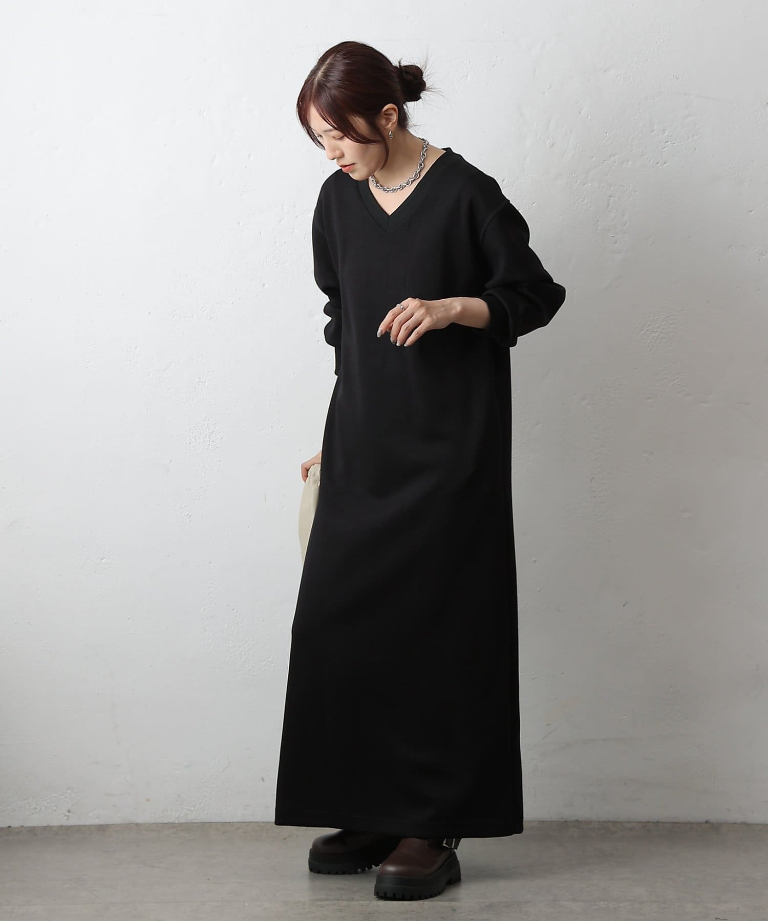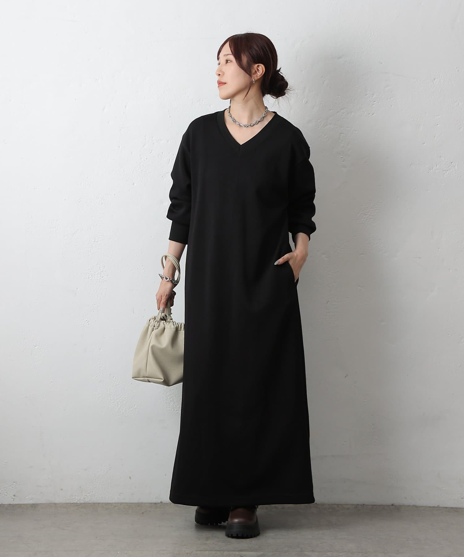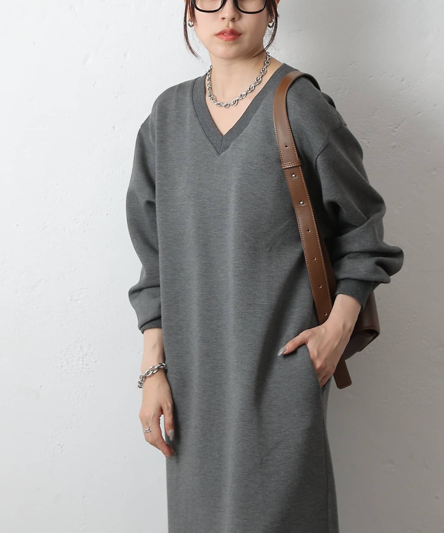 【美シルエット×快適素材、ダンボールVネックワンピース】