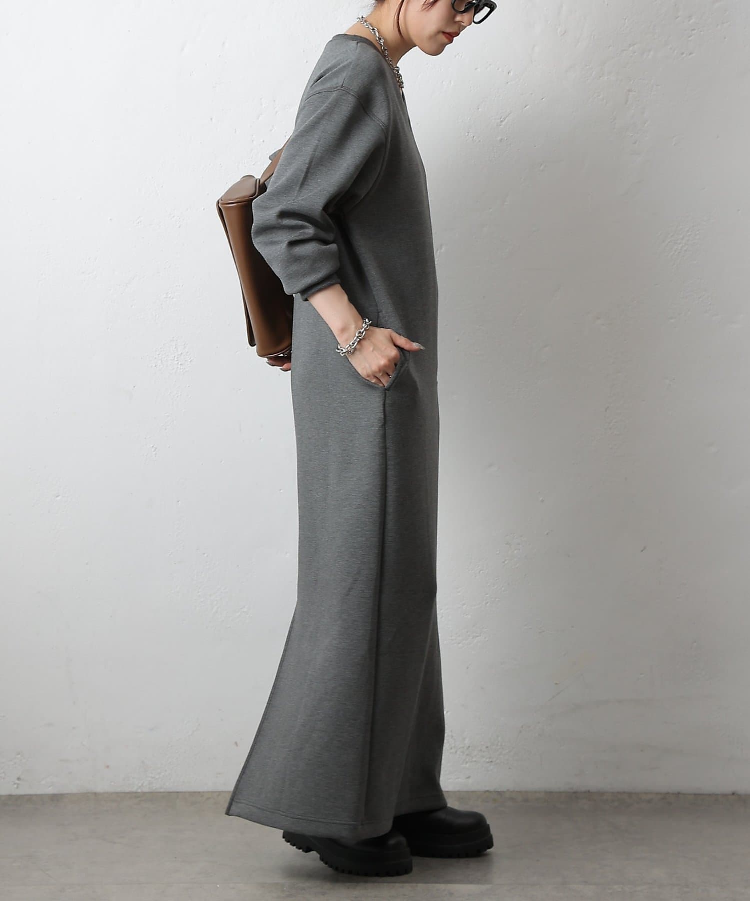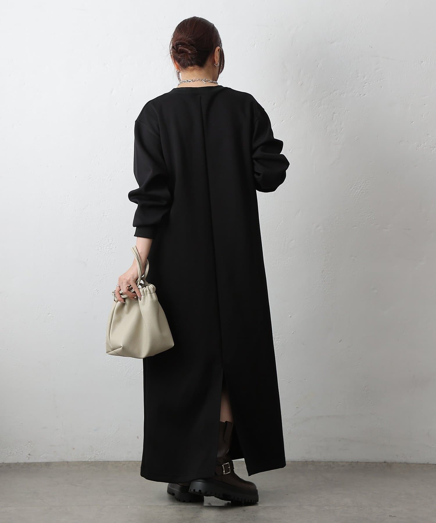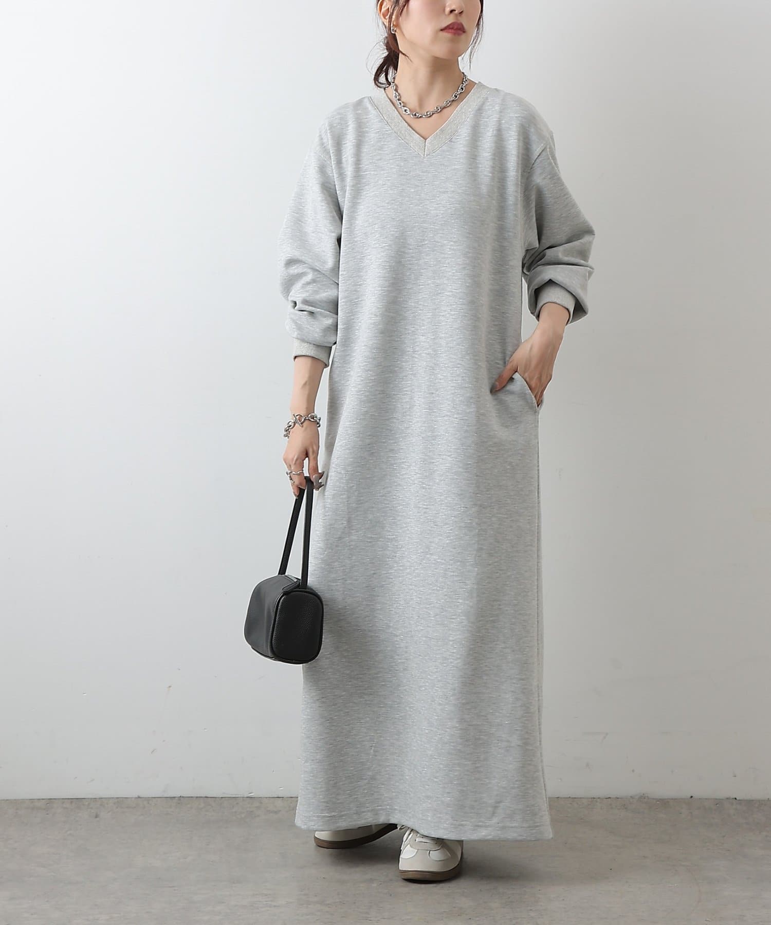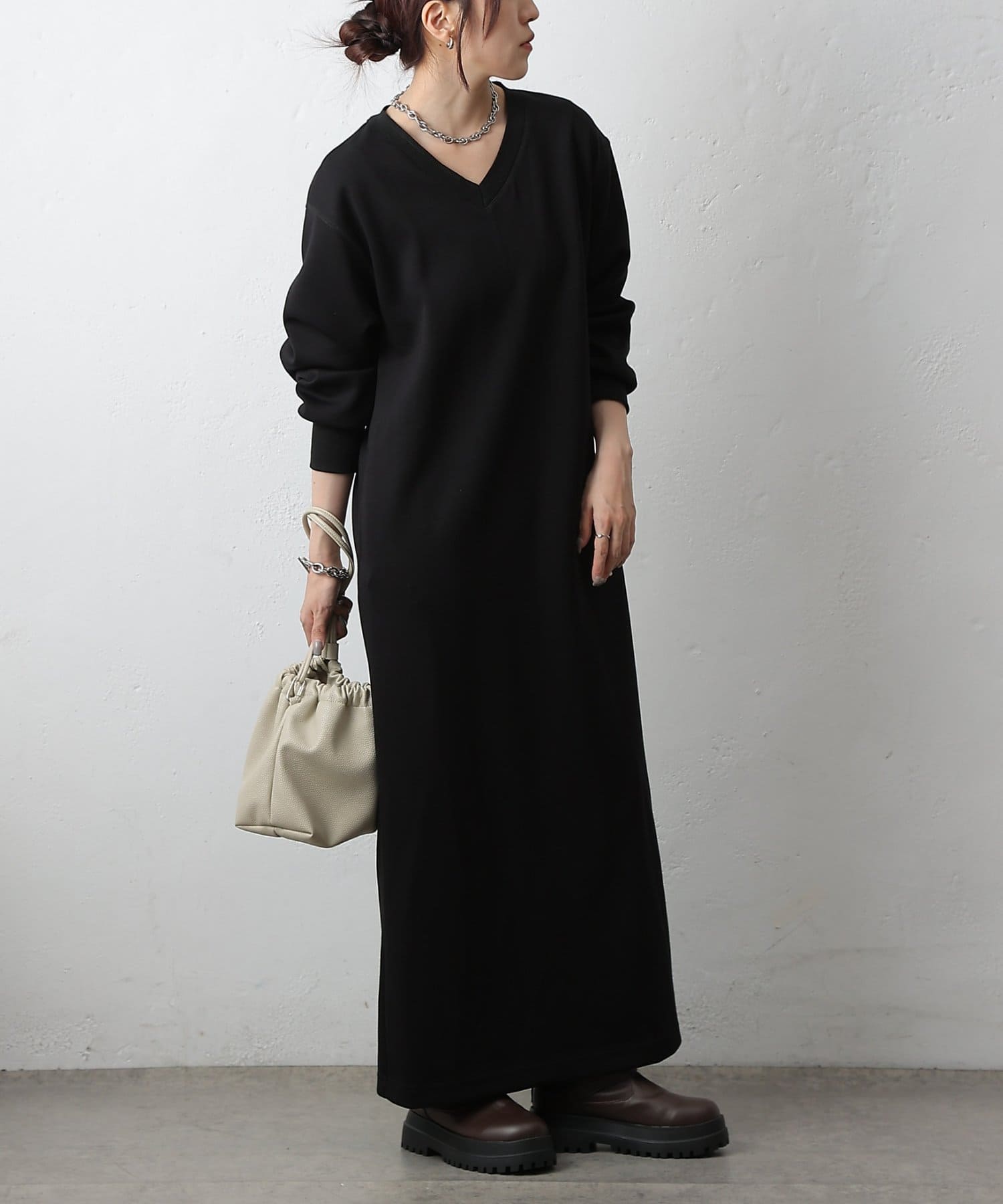 【美シルエット×快適素材、ダンボールVネックワンピース】