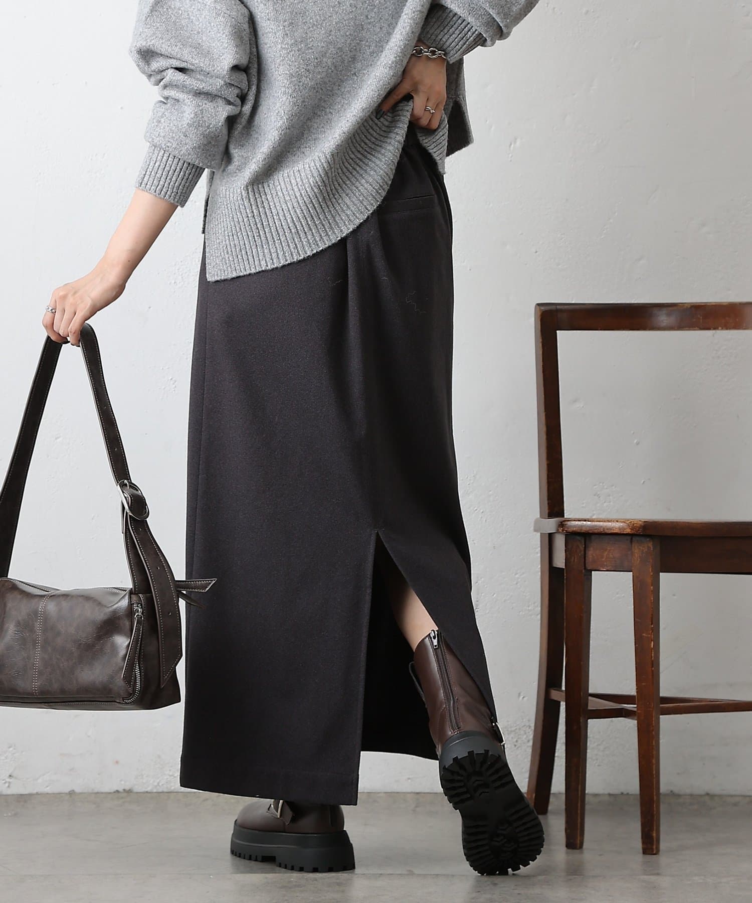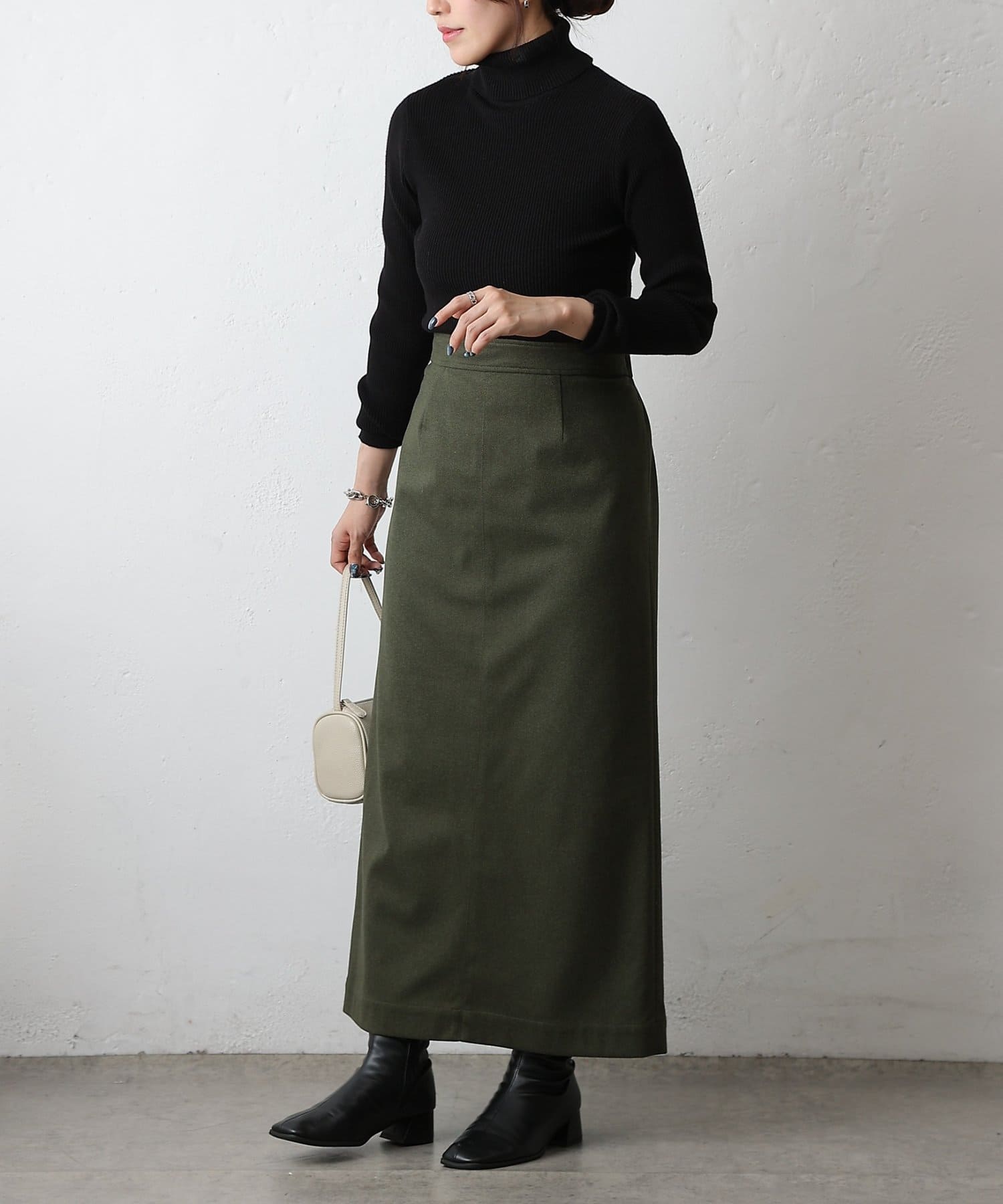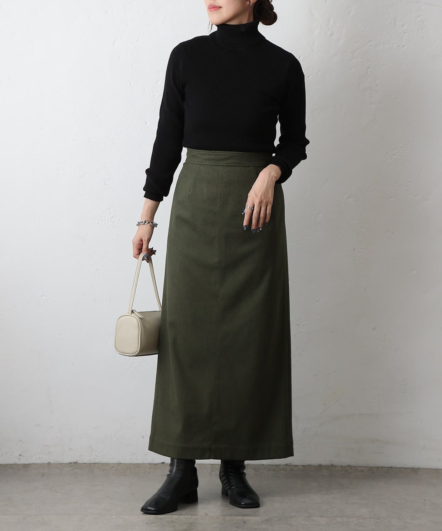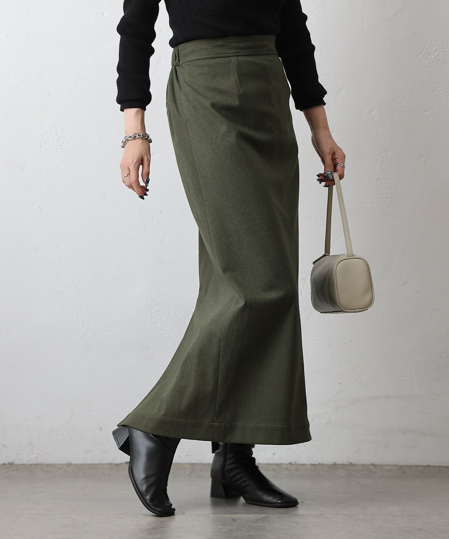 どんなアイテムとも合わせやすい、着回し力抜群のナロースカートです。