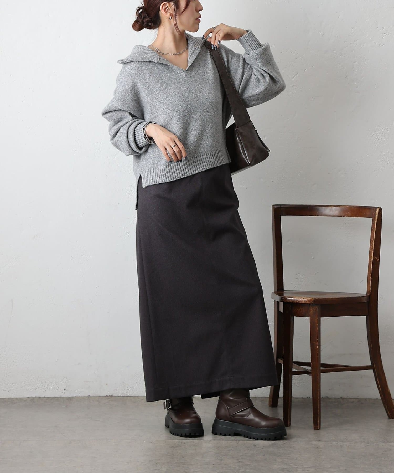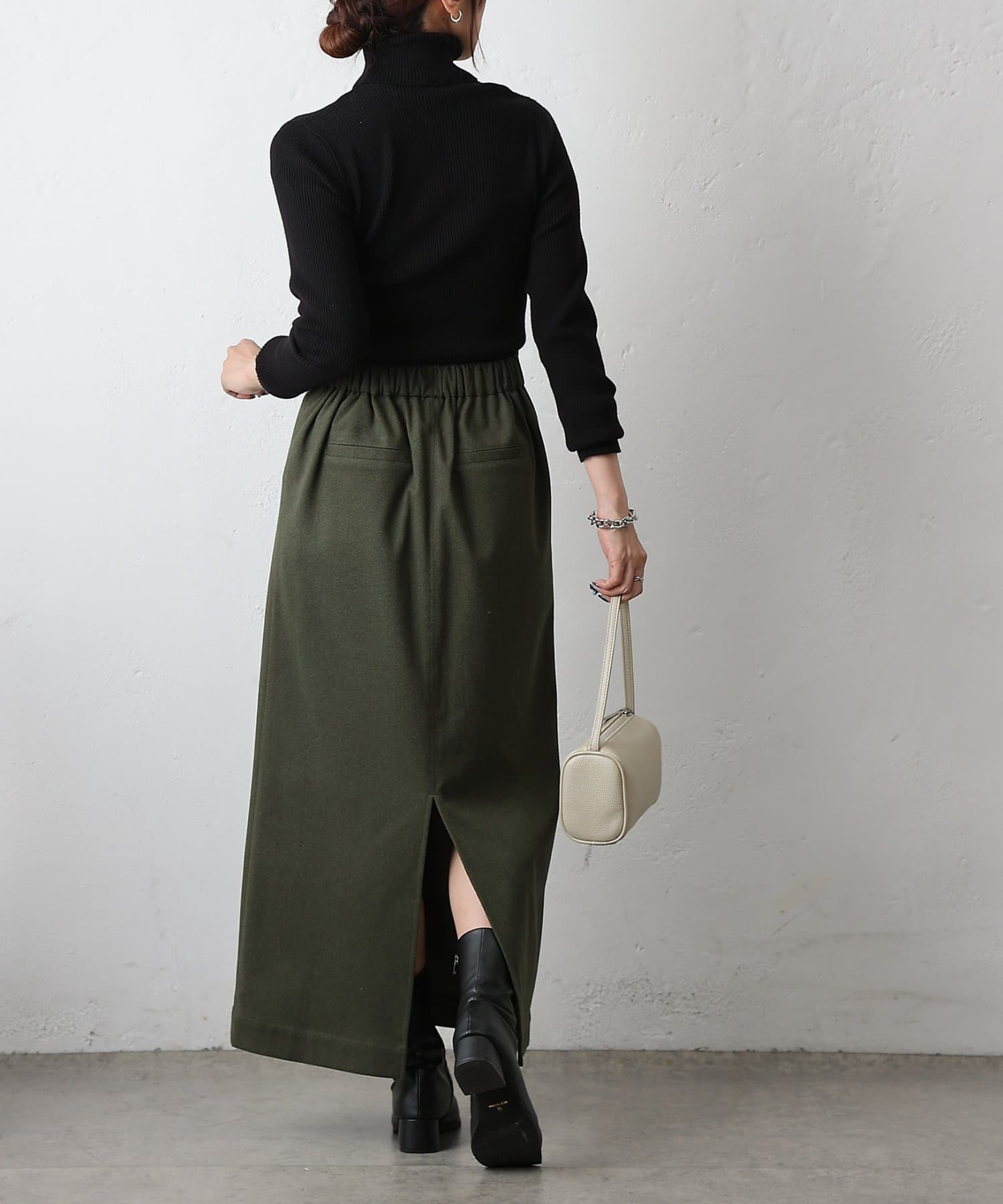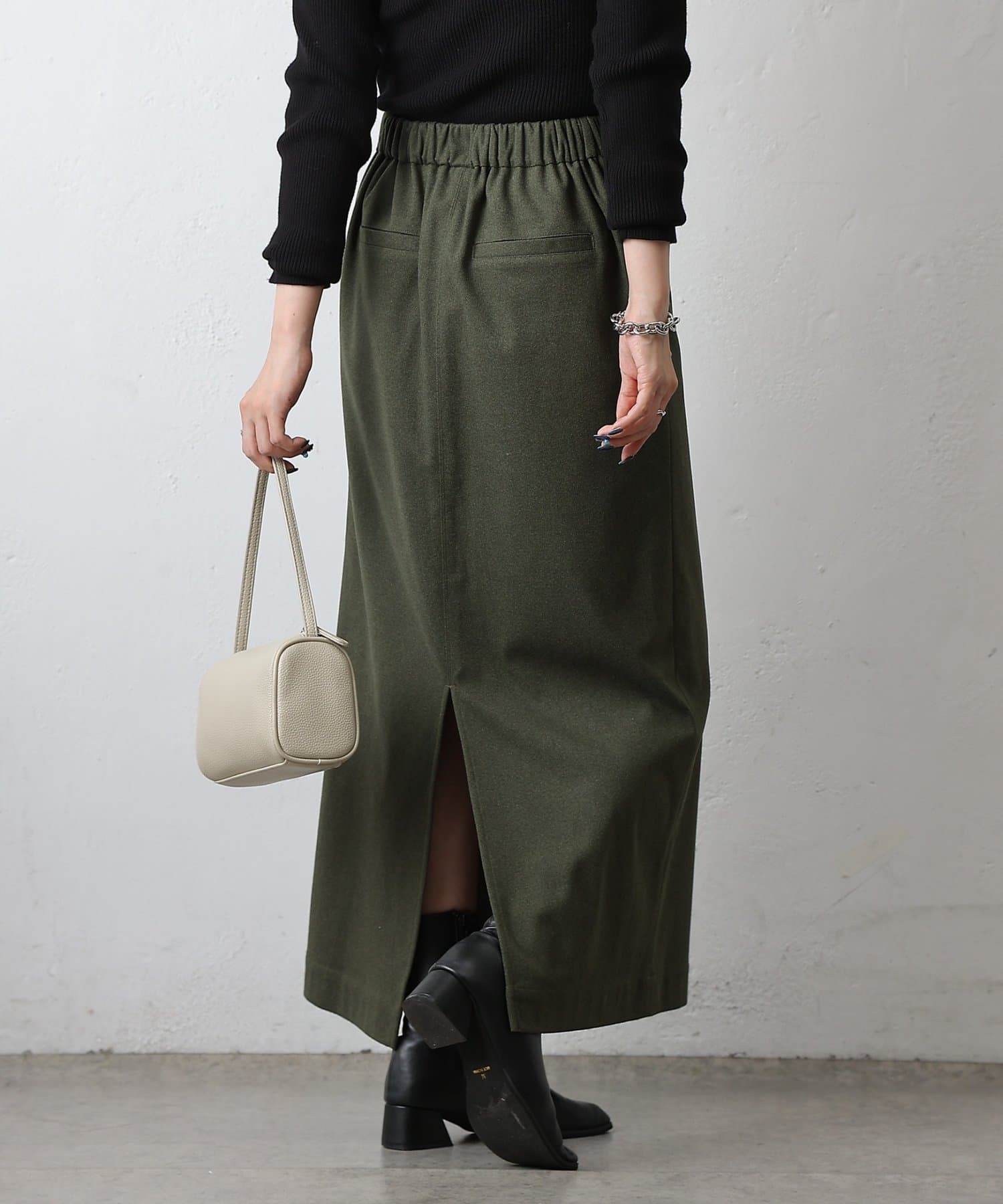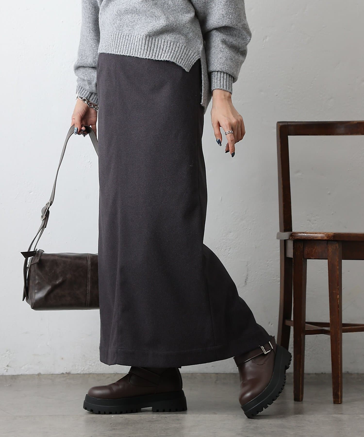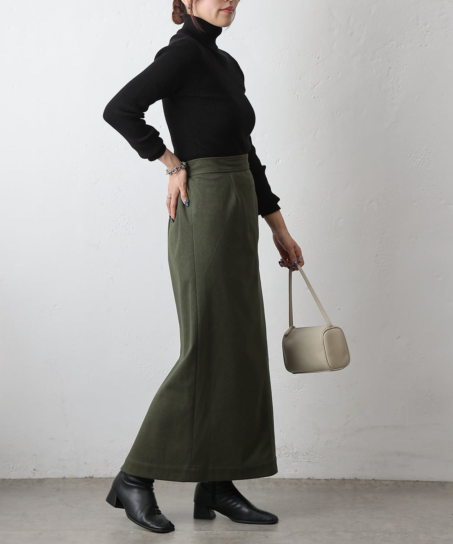 どんなアイテムとも合わせやすい、着回し力抜群のナロースカートです。