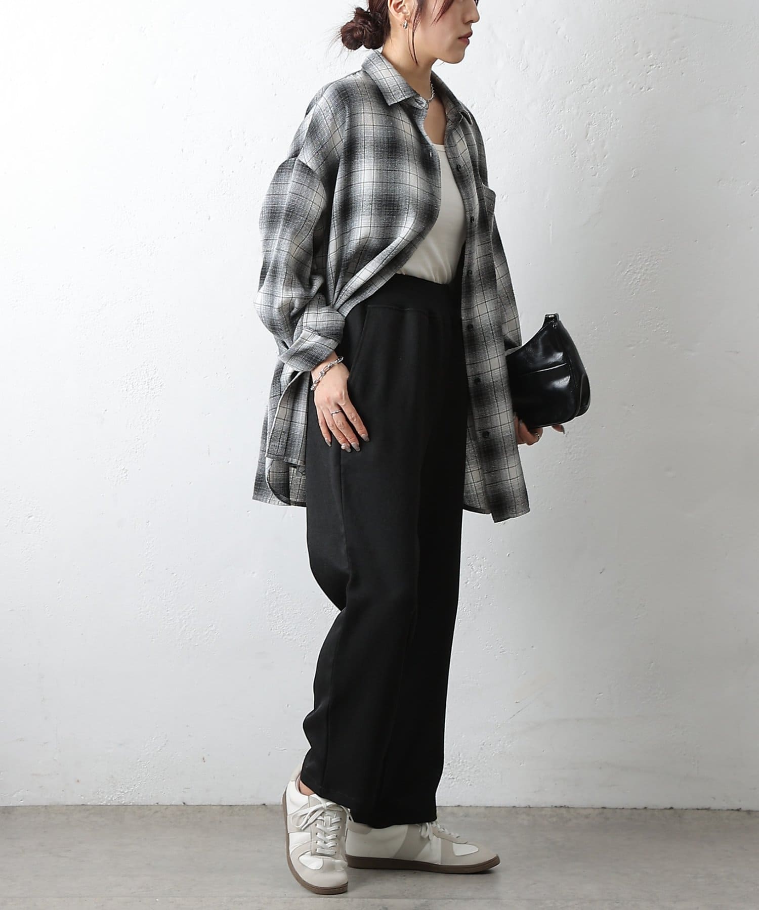 ゆったりめのイージーウエストと細めの足首ラインが絶妙なバランスでリラックス感とスタイリッシュさを両立しました。