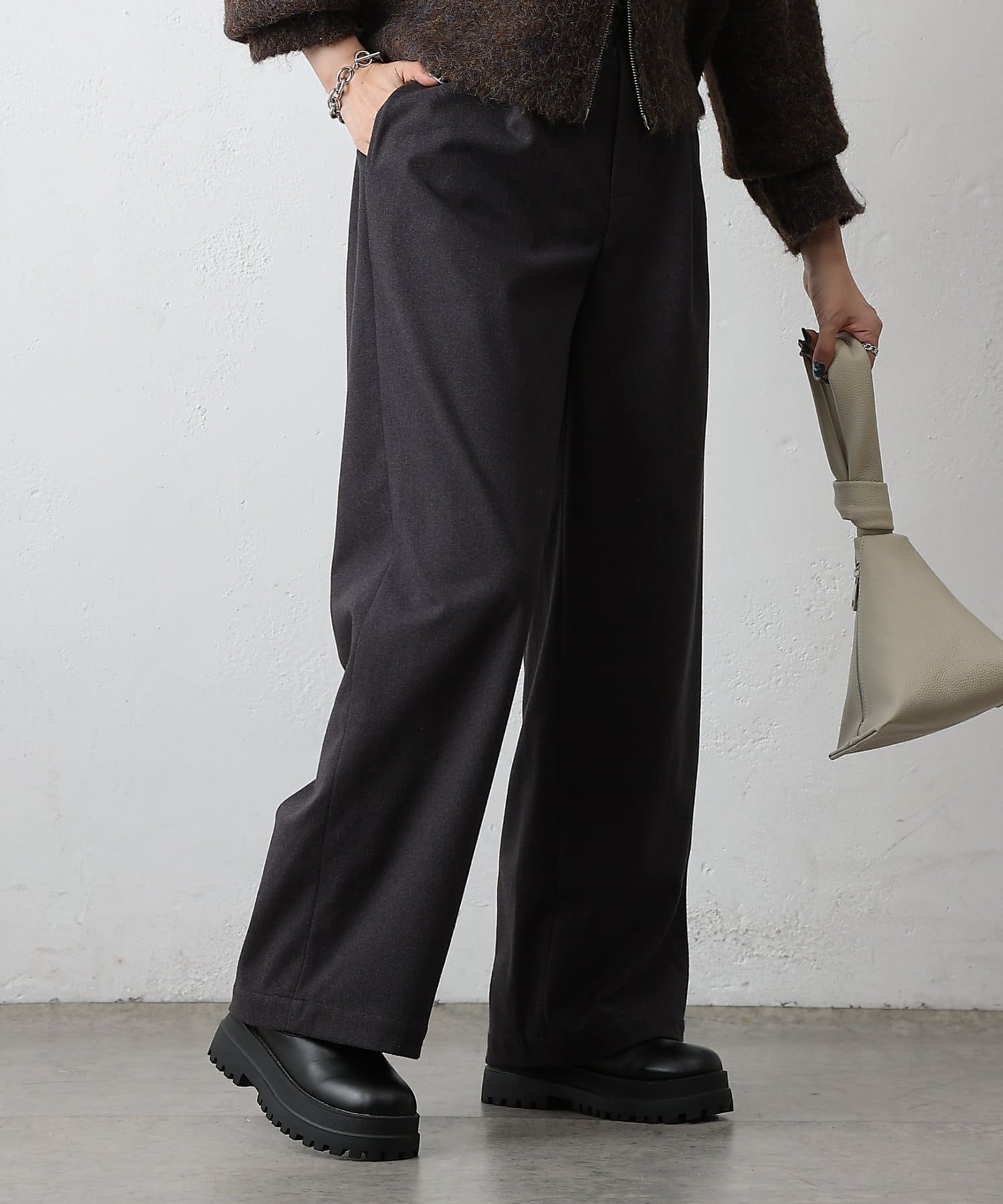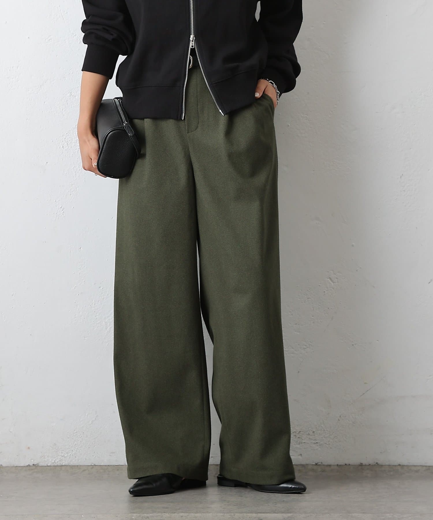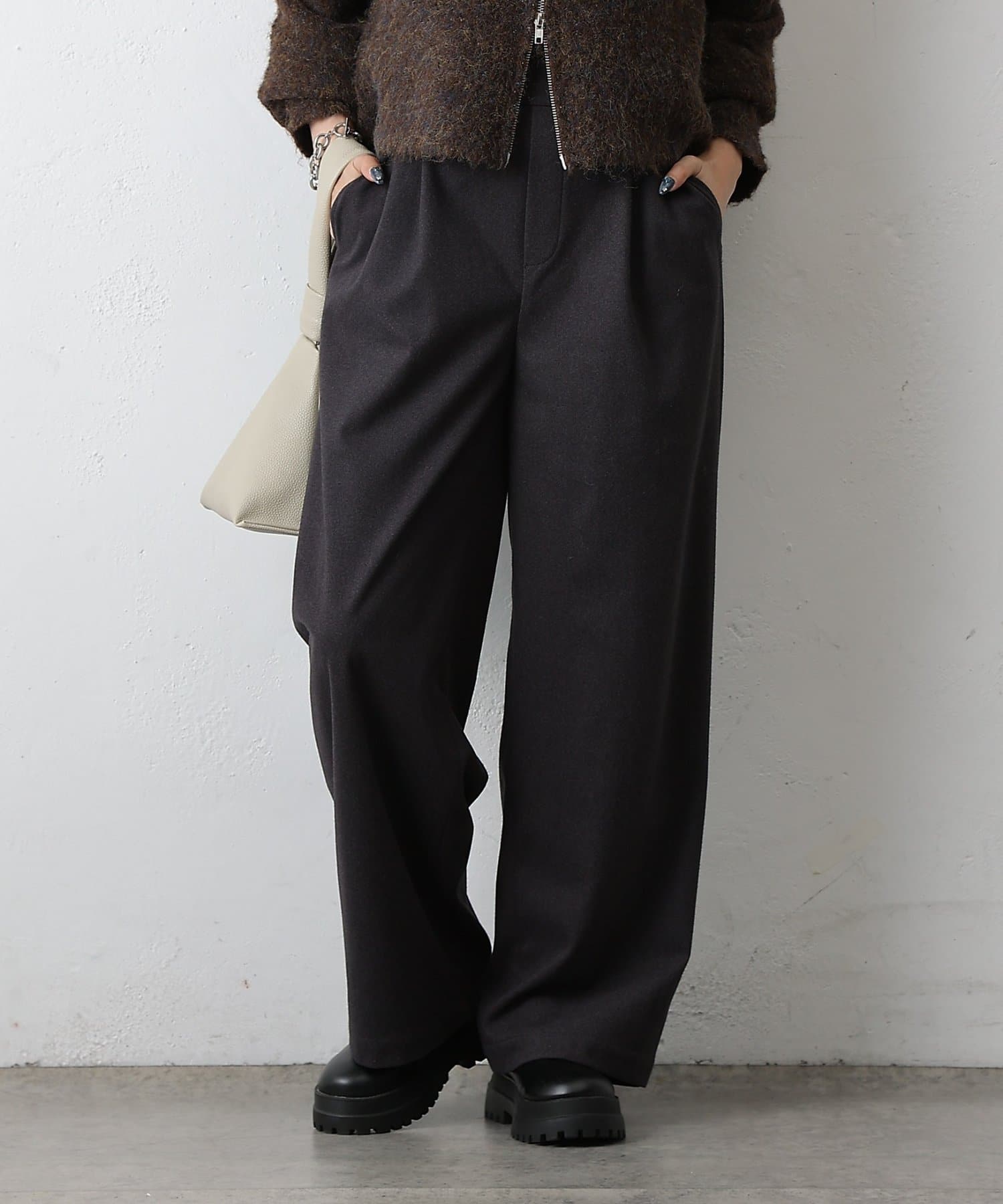 体型カバーしつつキレイめに合わせられる万能ワンタックパンツです。