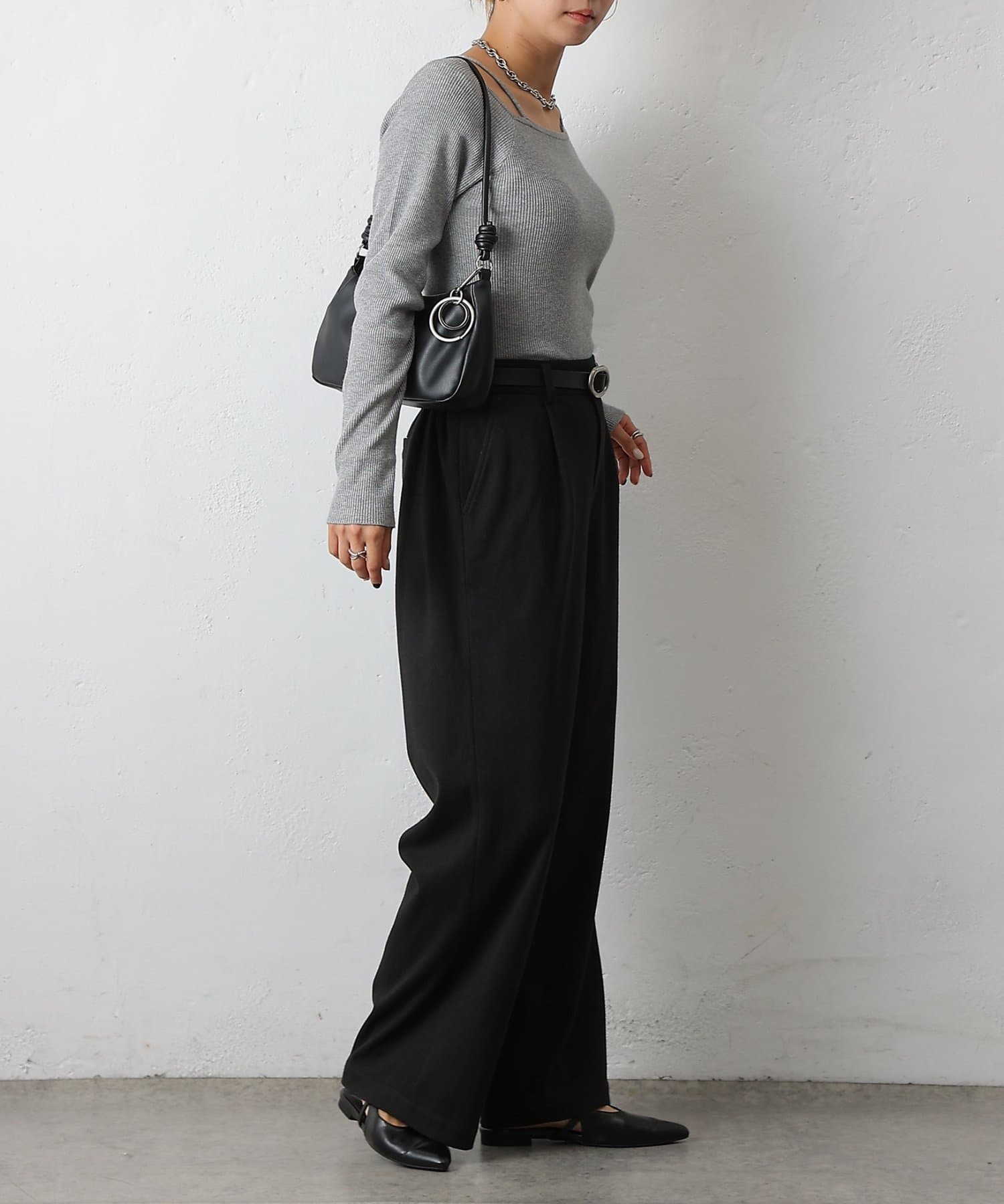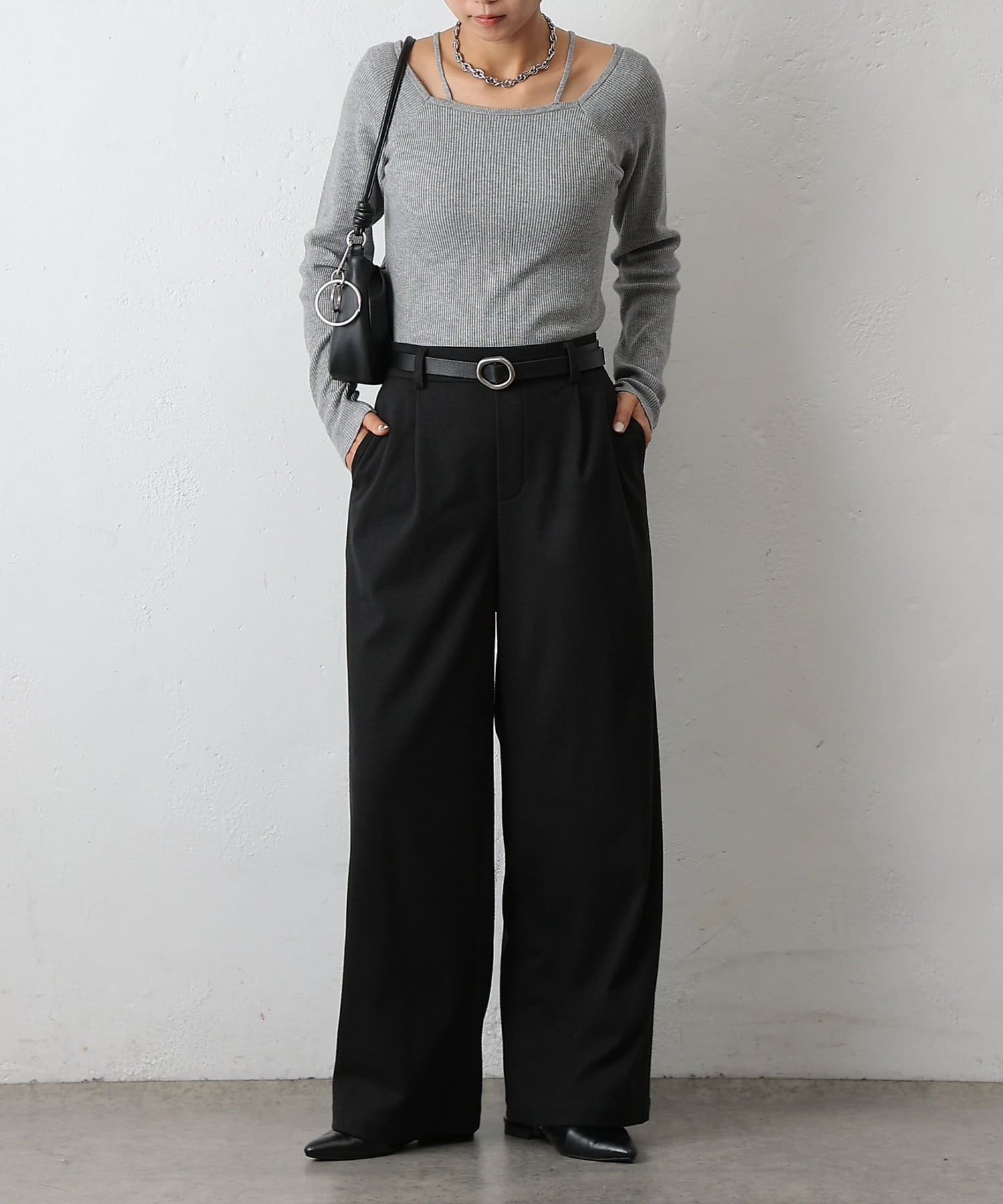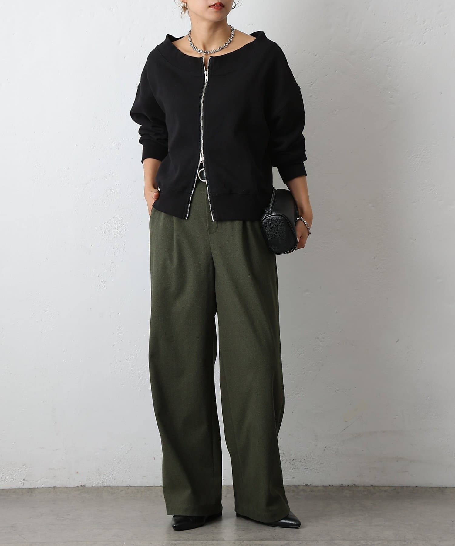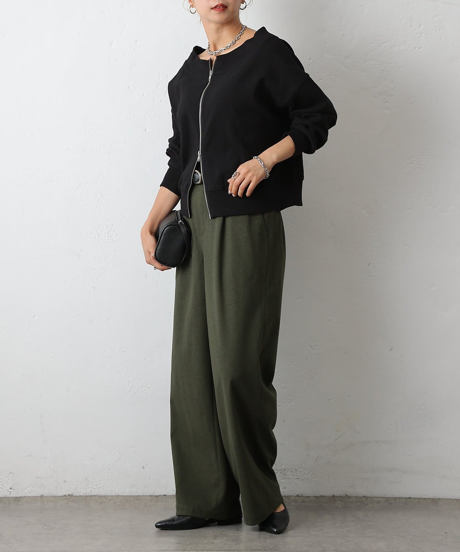 体型カバーしつつキレイめに合わせられる万能ワンタックパンツです。