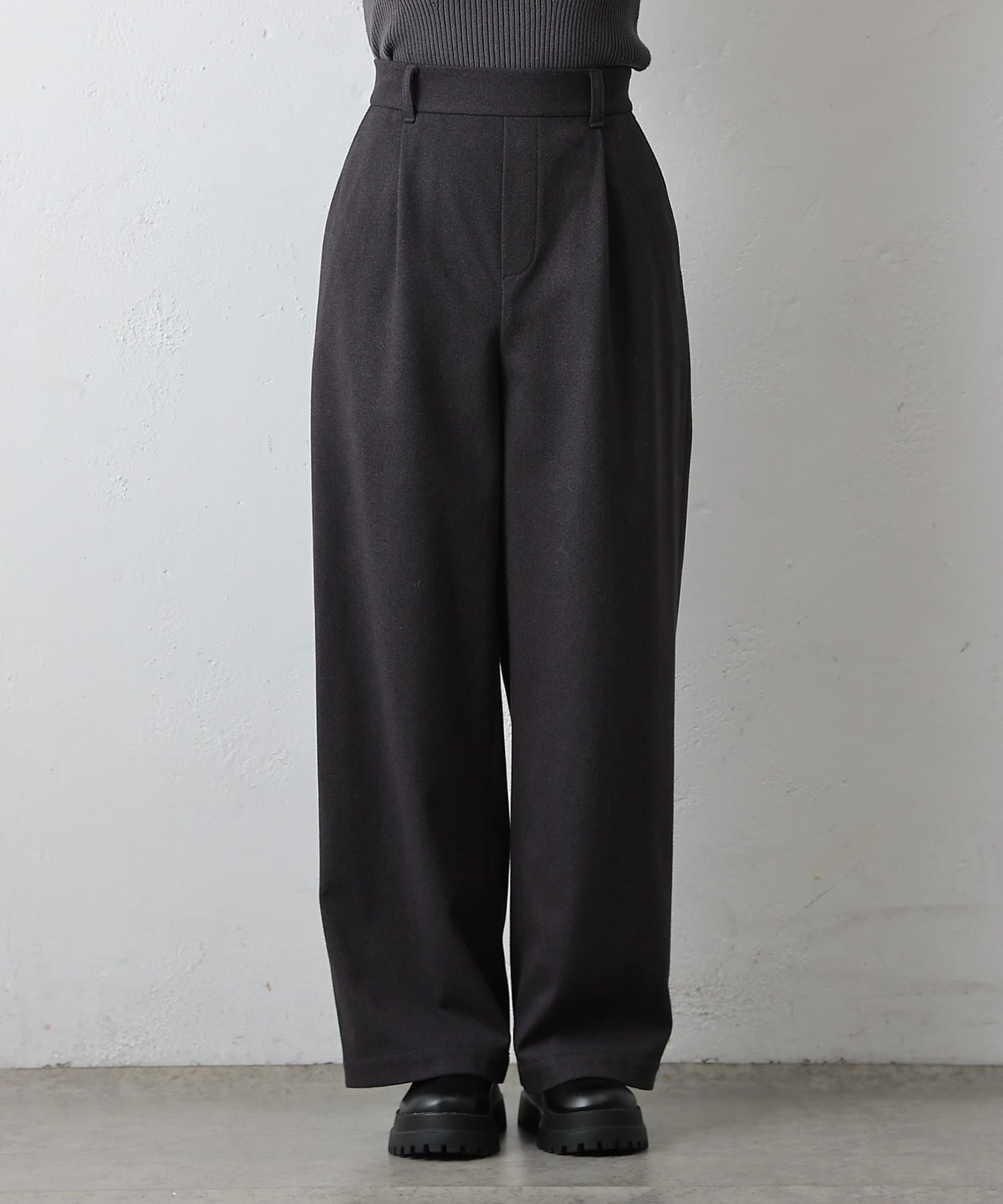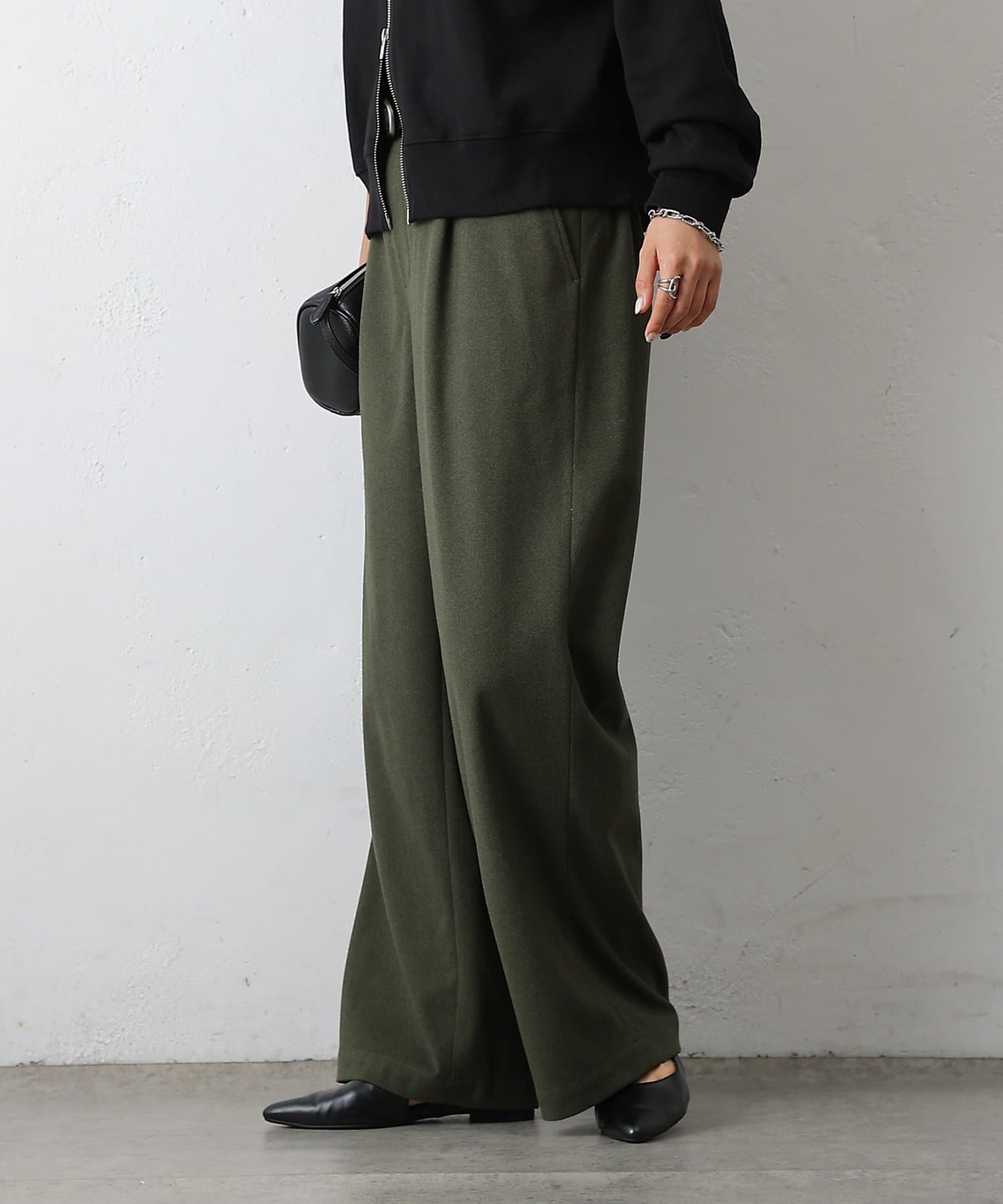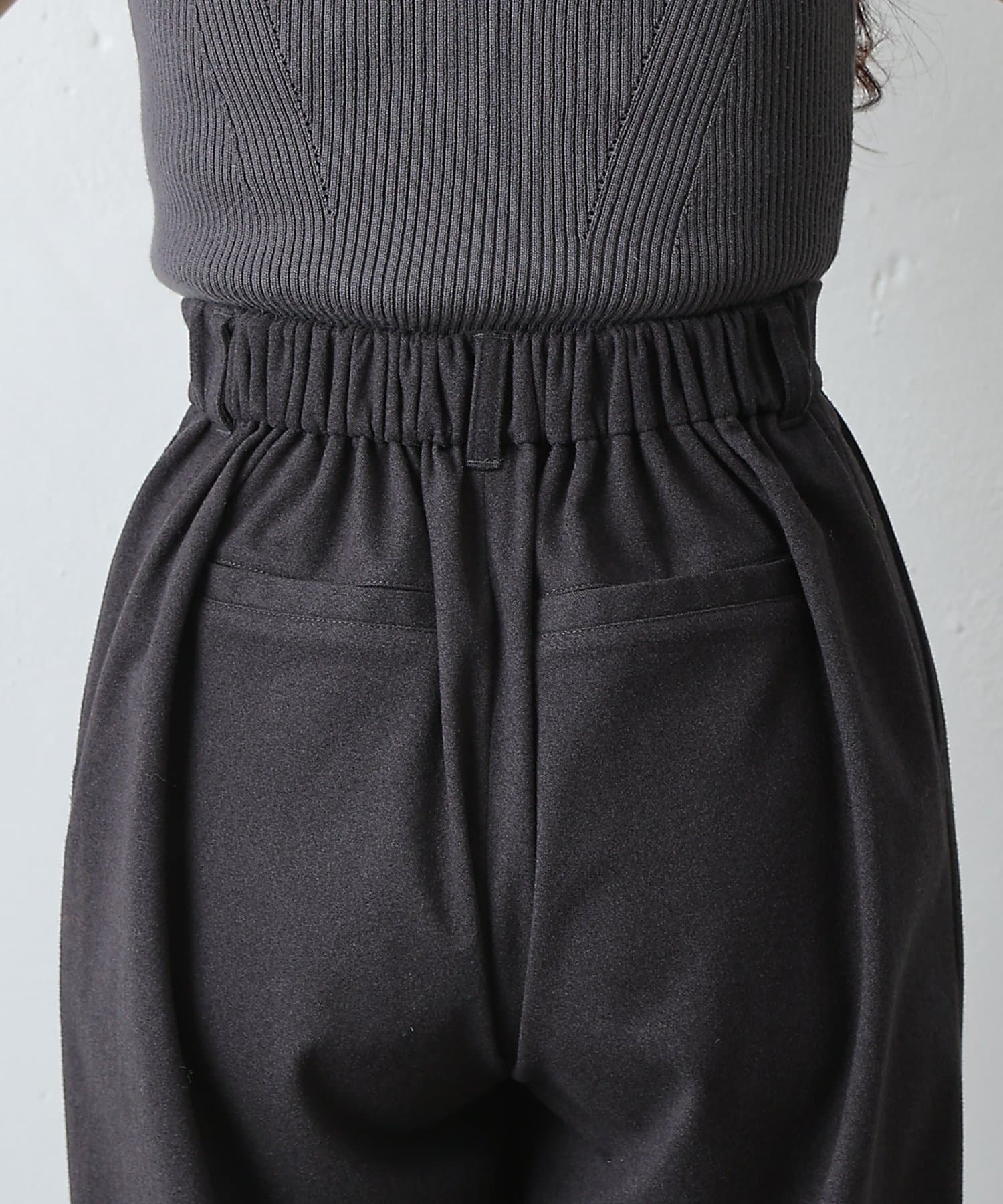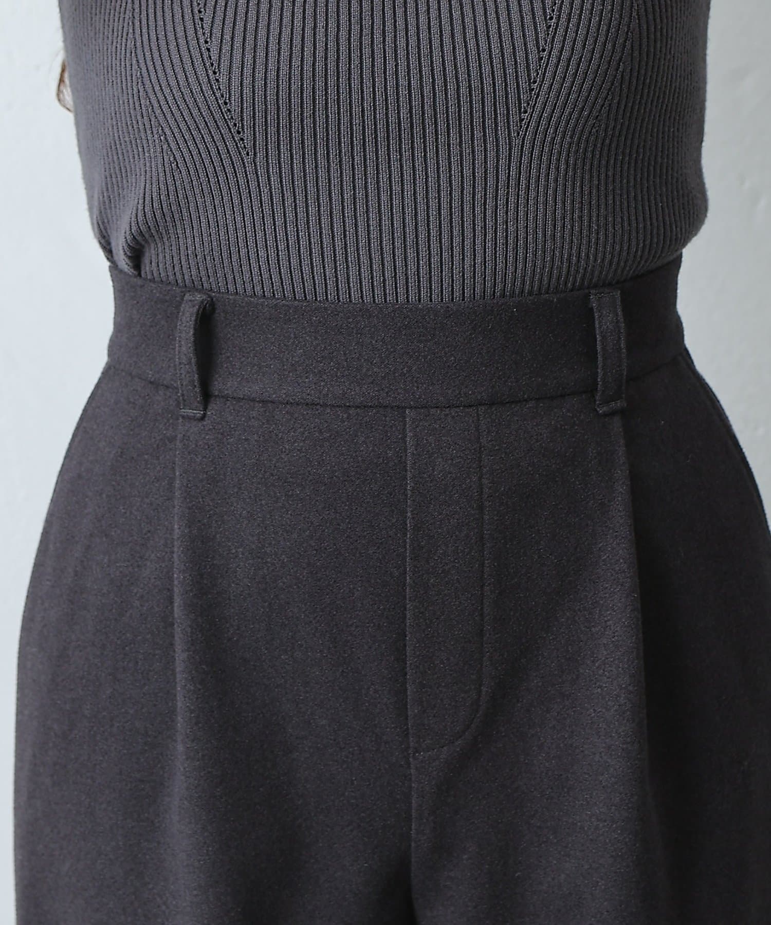 ワンタックが入っているので腰回りに程よいゆとりが生まれ、気になるお尻周りもカバーしつつ穿いていただけます。