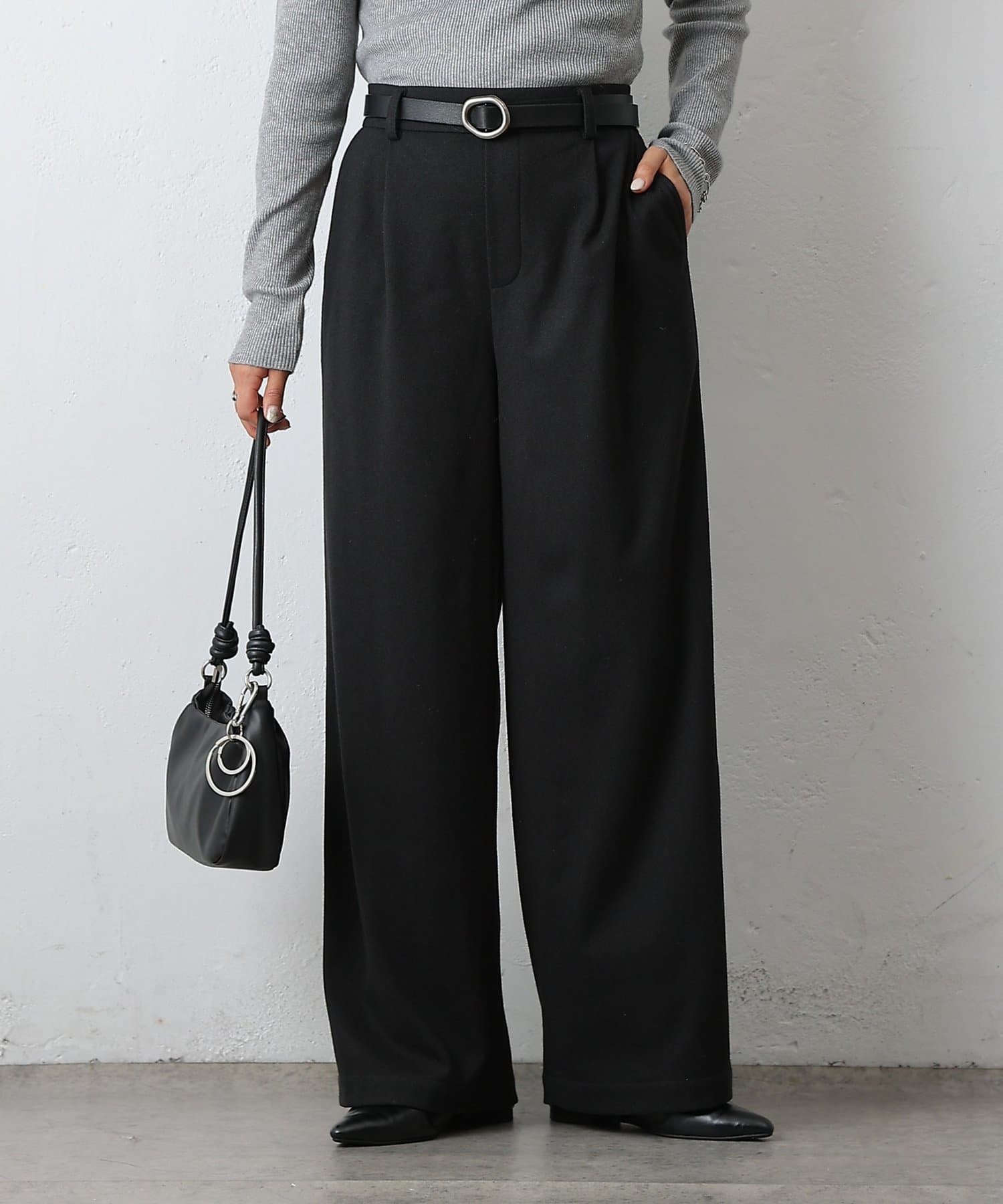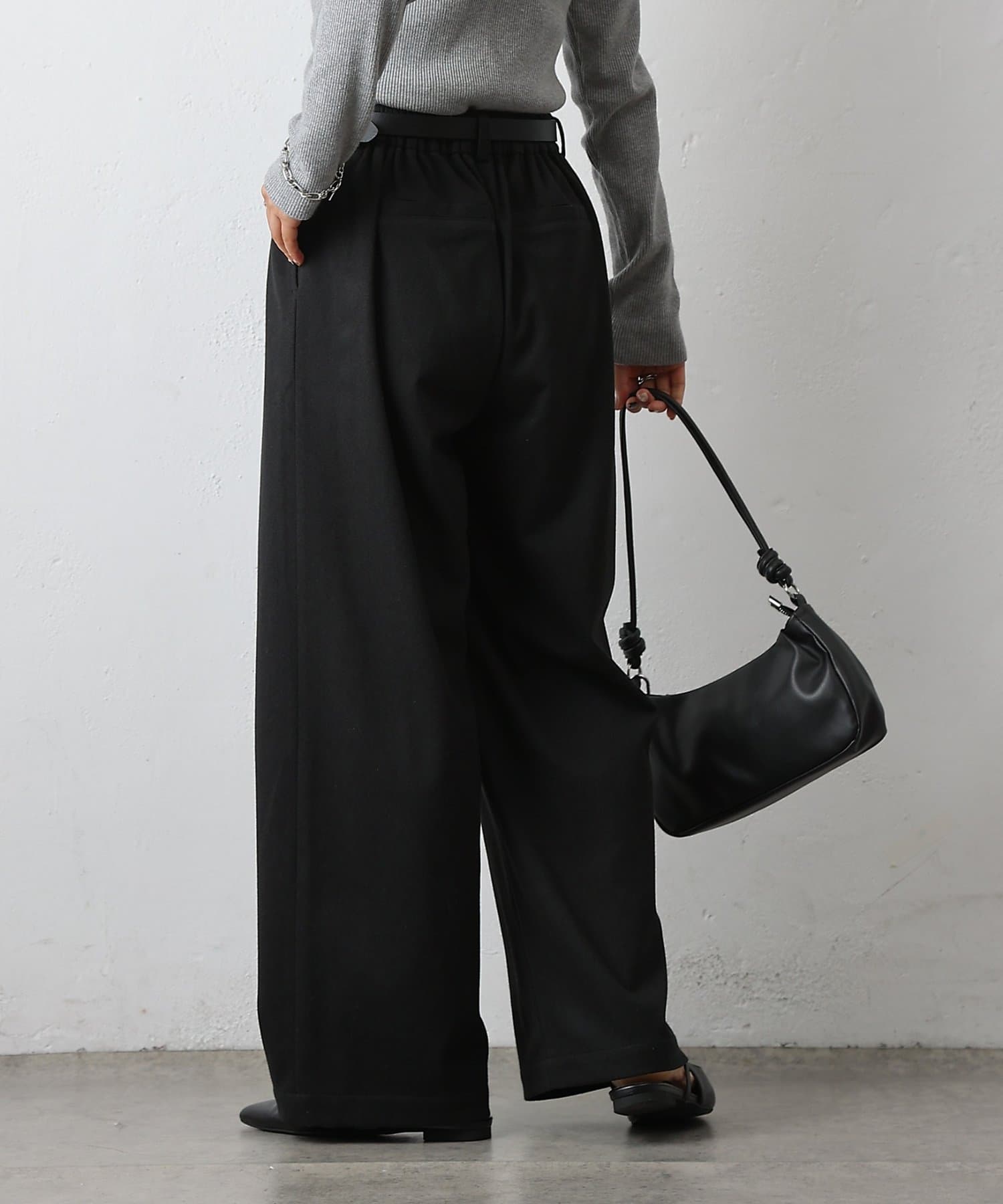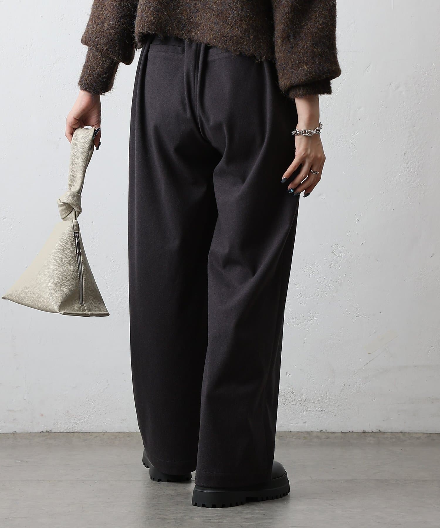 ワンタックが入っているので腰回りに程よいゆとりが生まれ、気になるお尻周りもカバーしつつ穿いていただけます。