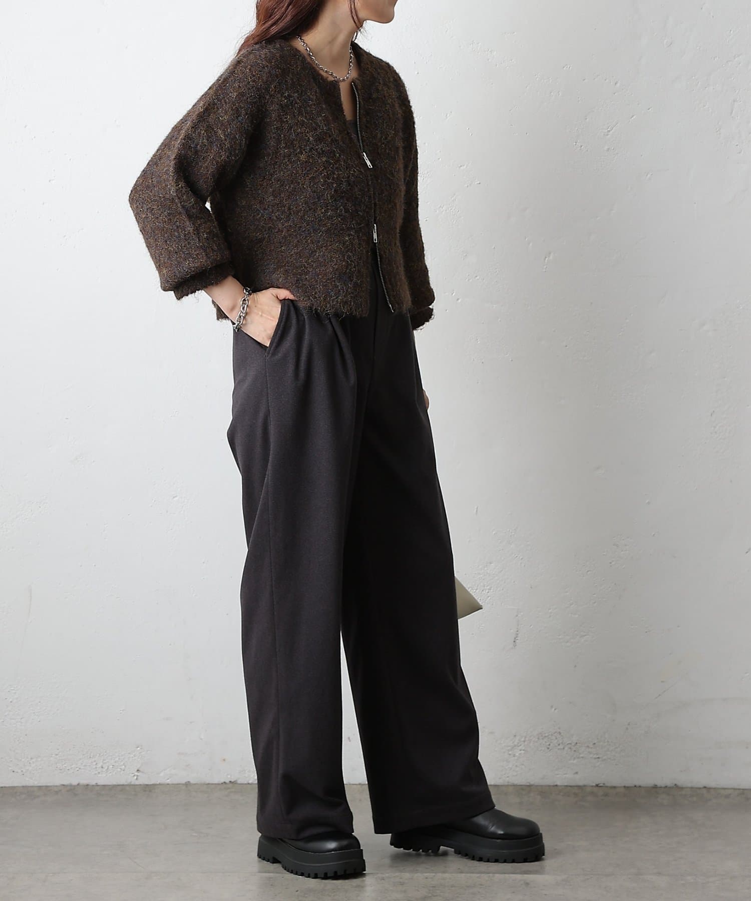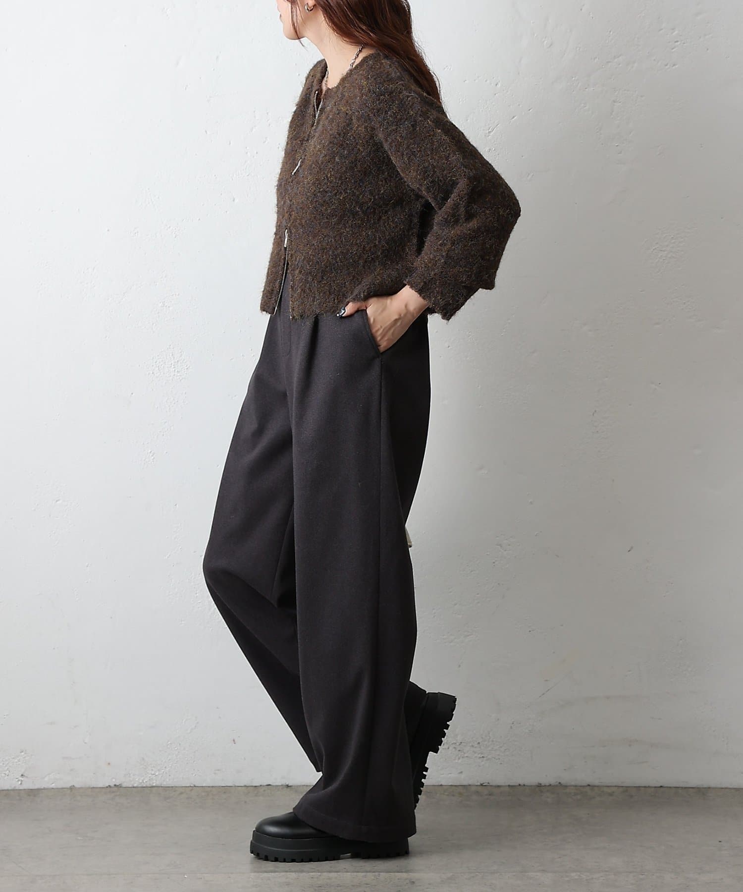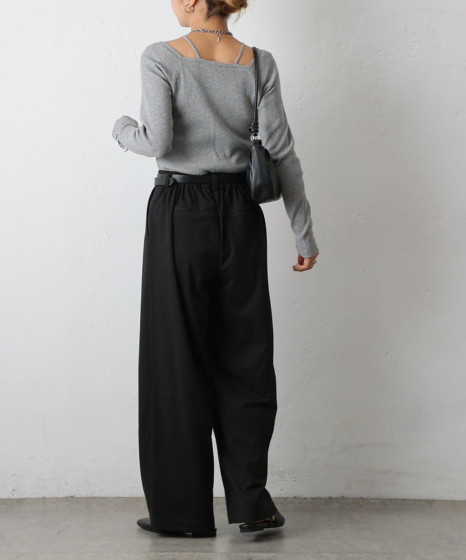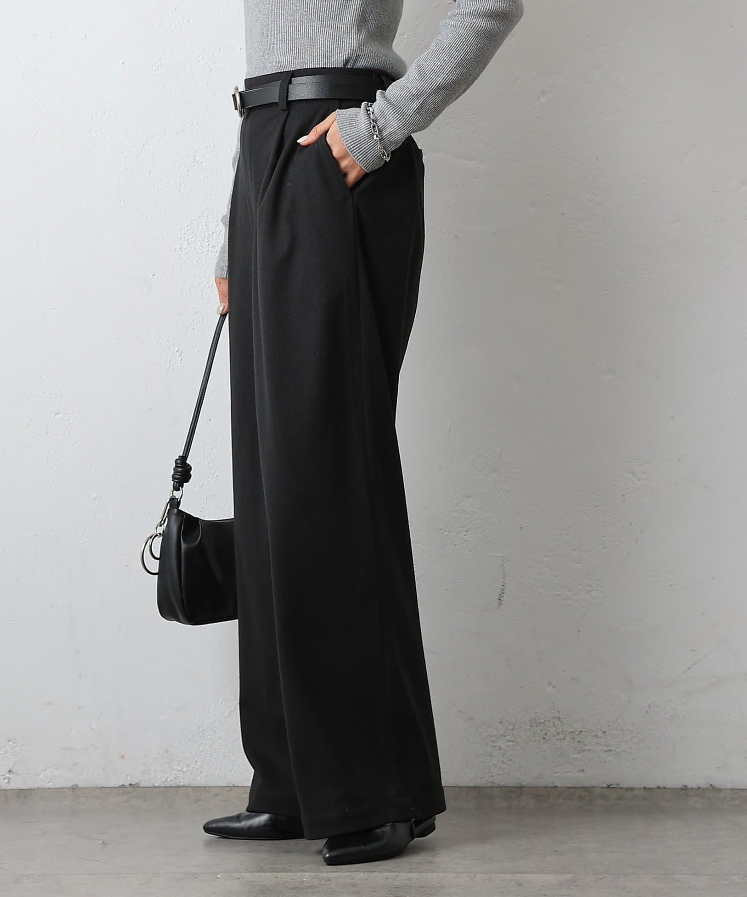 ワンタックが入っているので腰回りに程よいゆとりが生まれ、気になるお尻周りもカバーしつつ穿いていただけます。