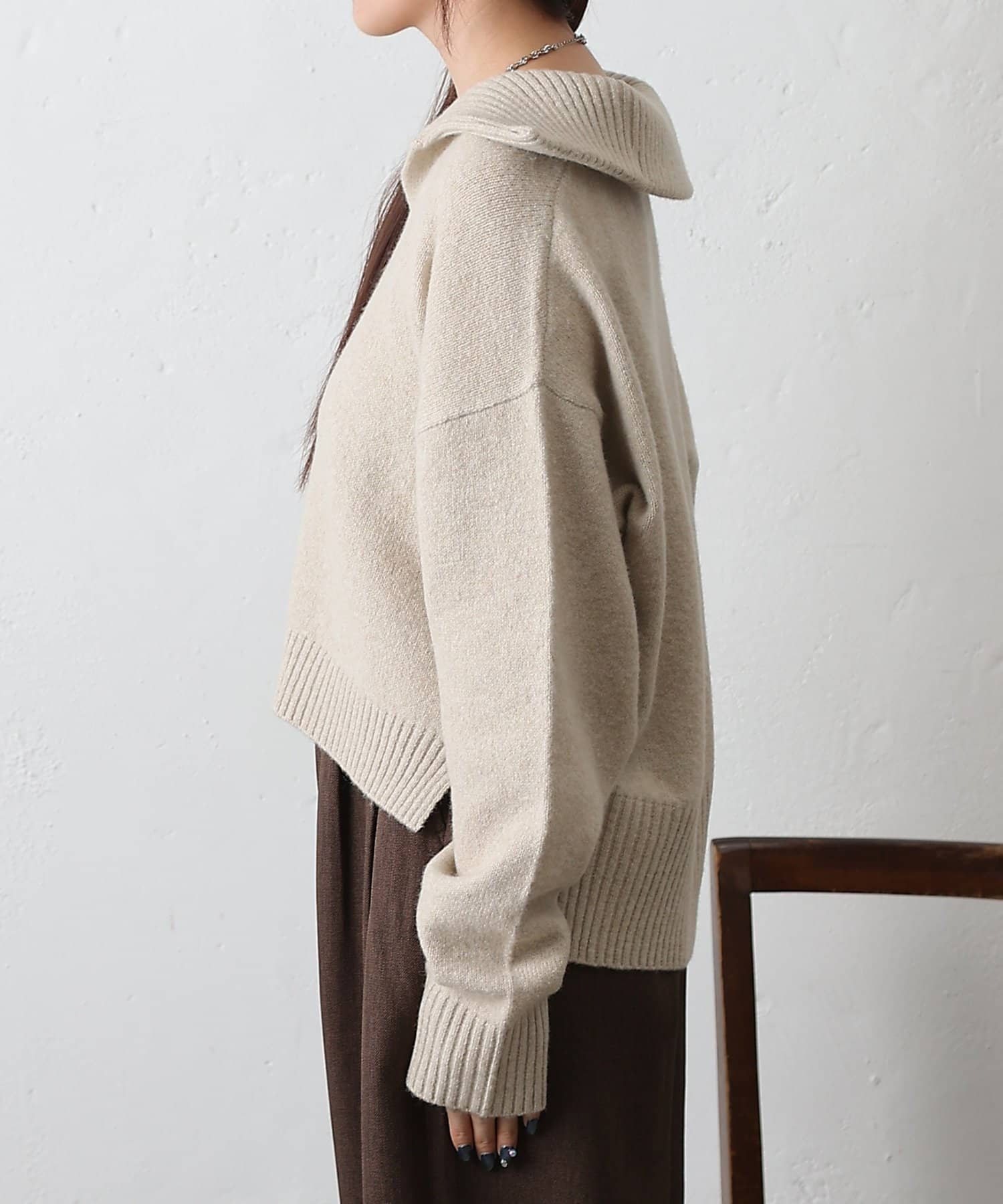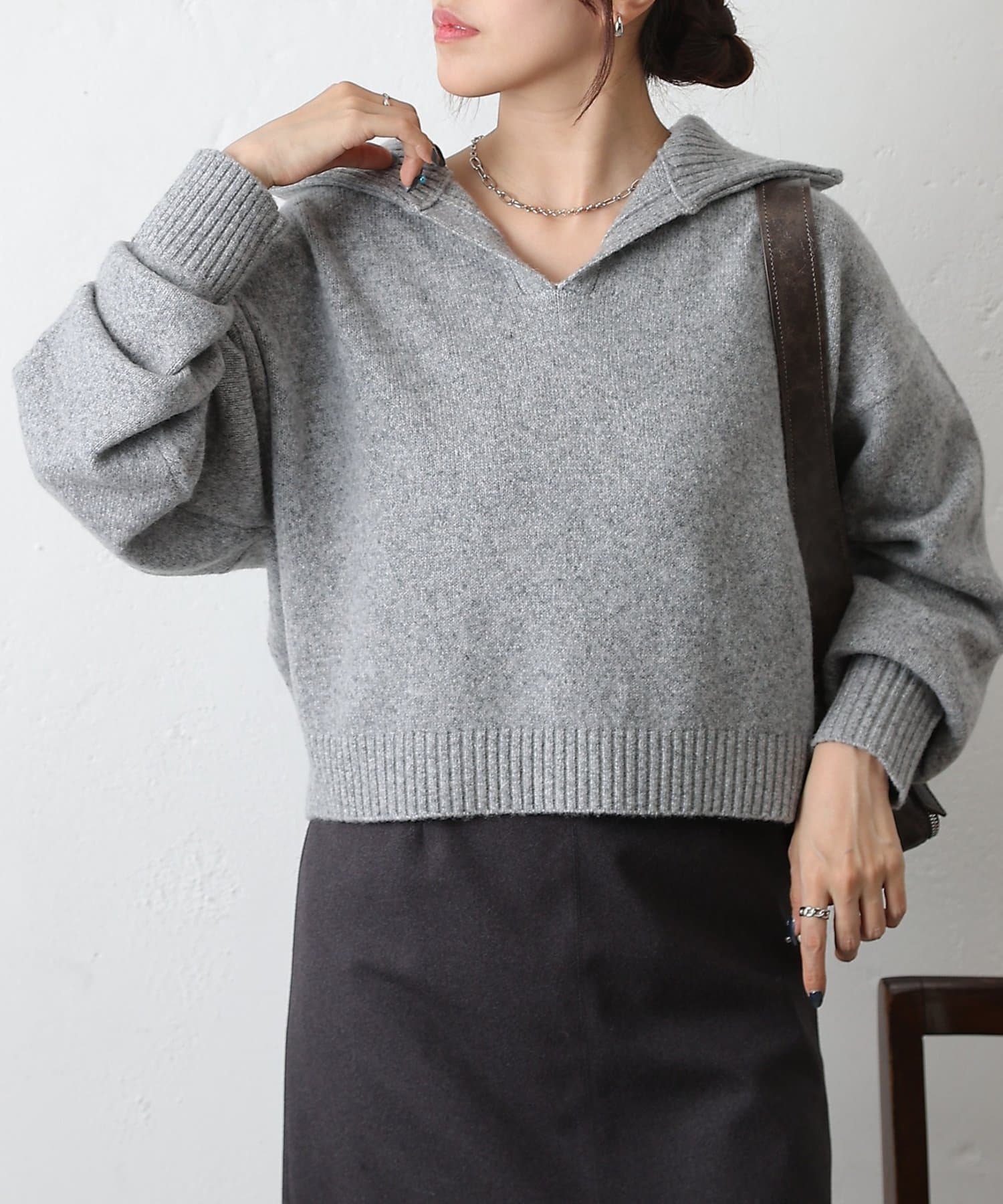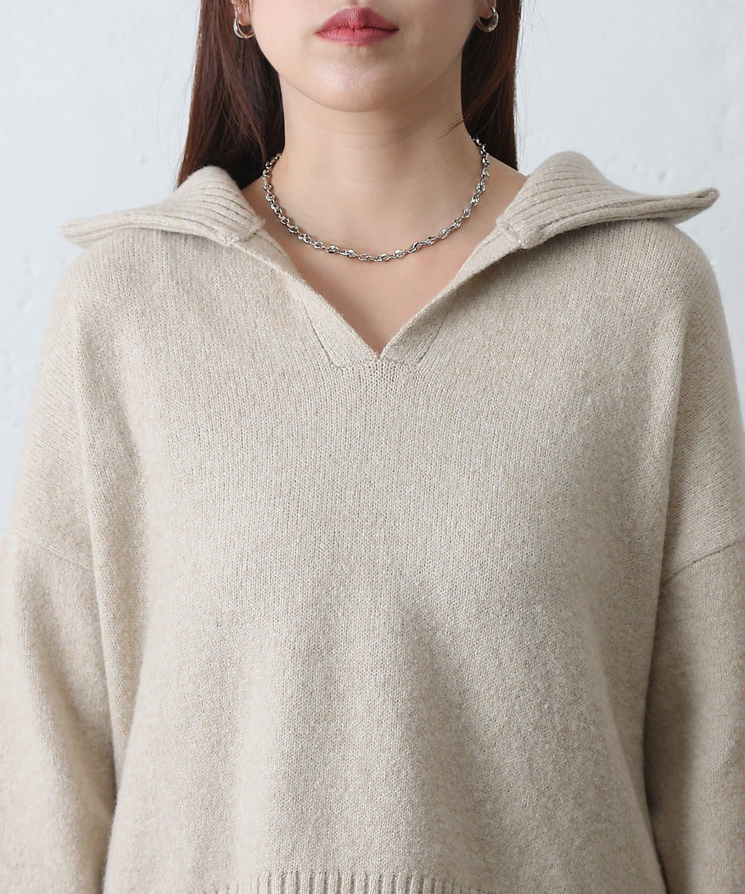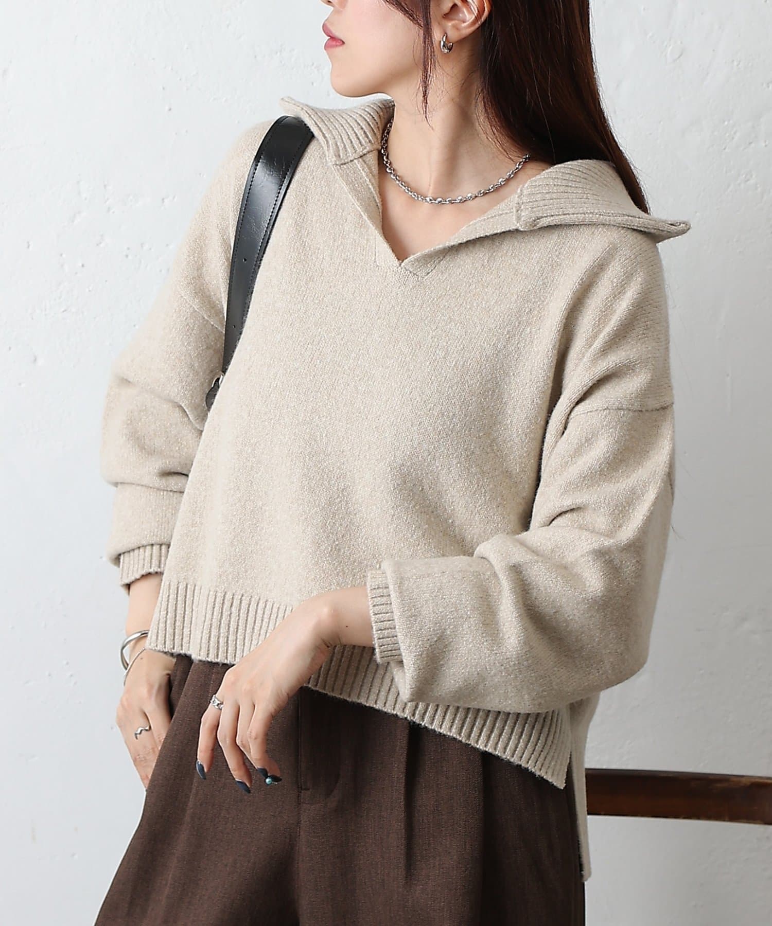 やわらかなモチモチ素材と、きちんと見えする衿付きデザインが魅力の衿付きスキッパーニットが登場。
