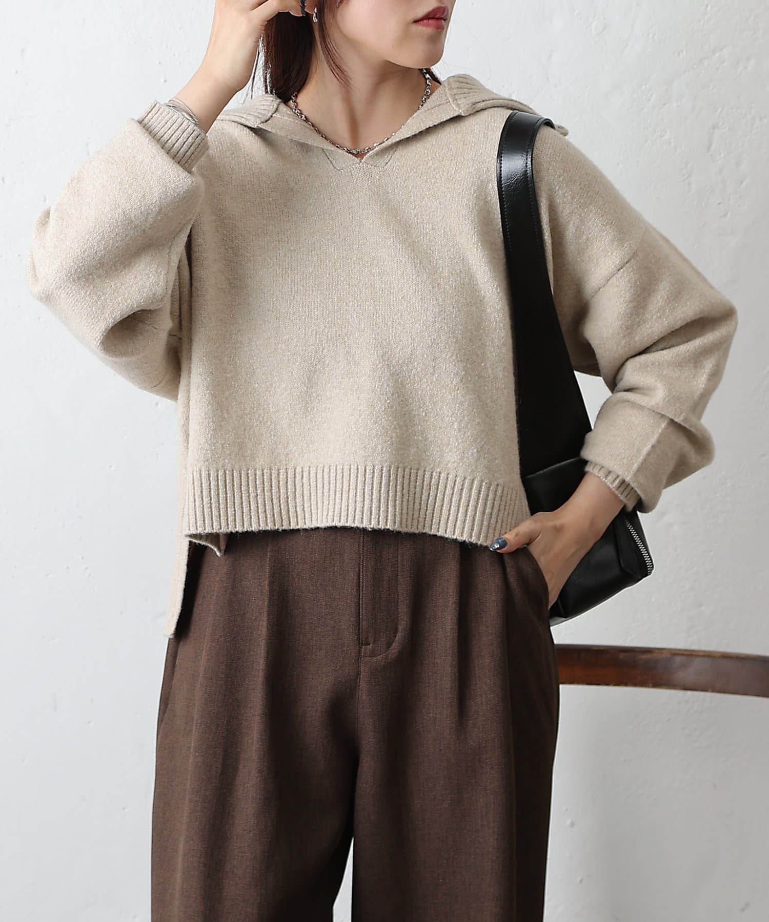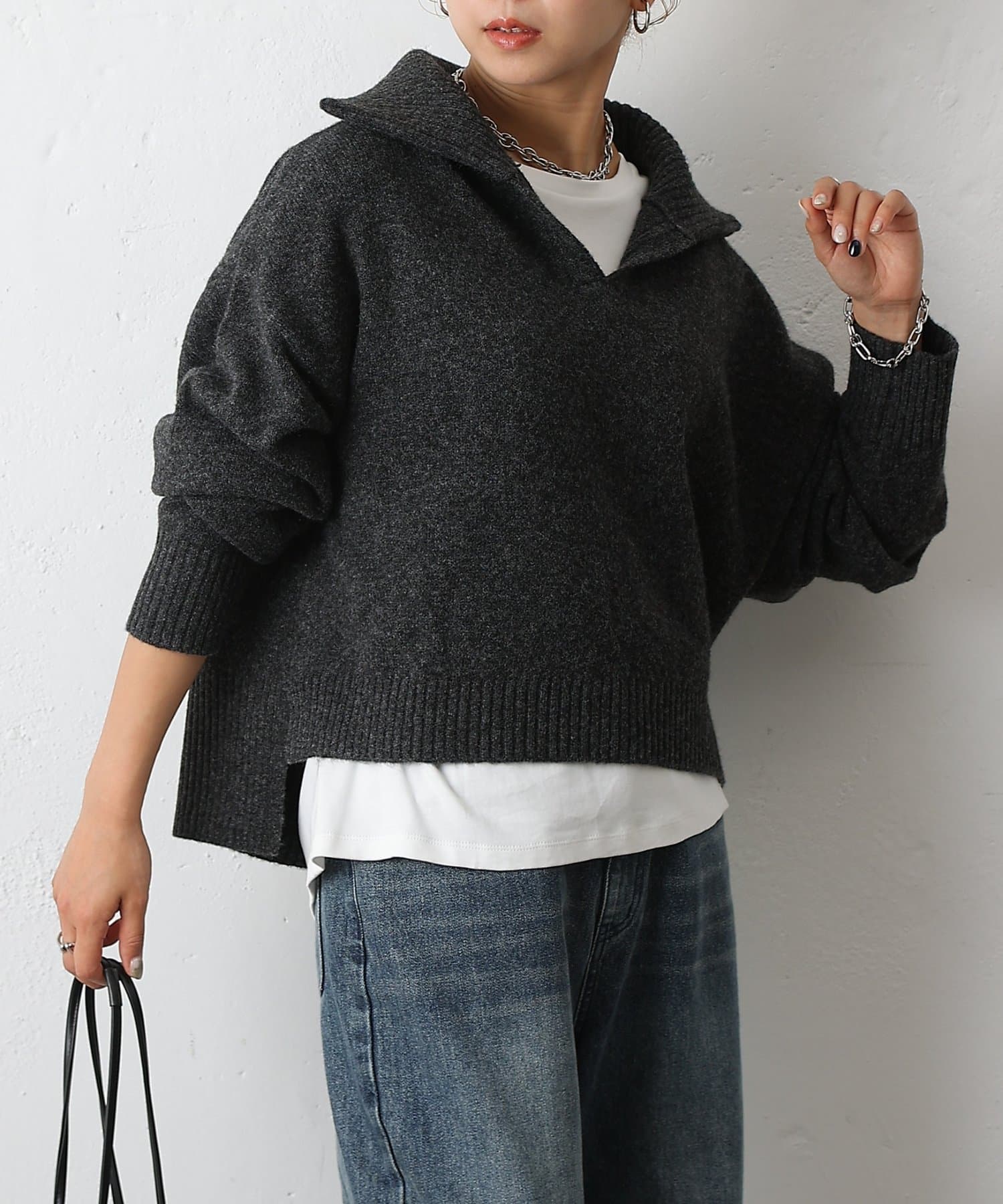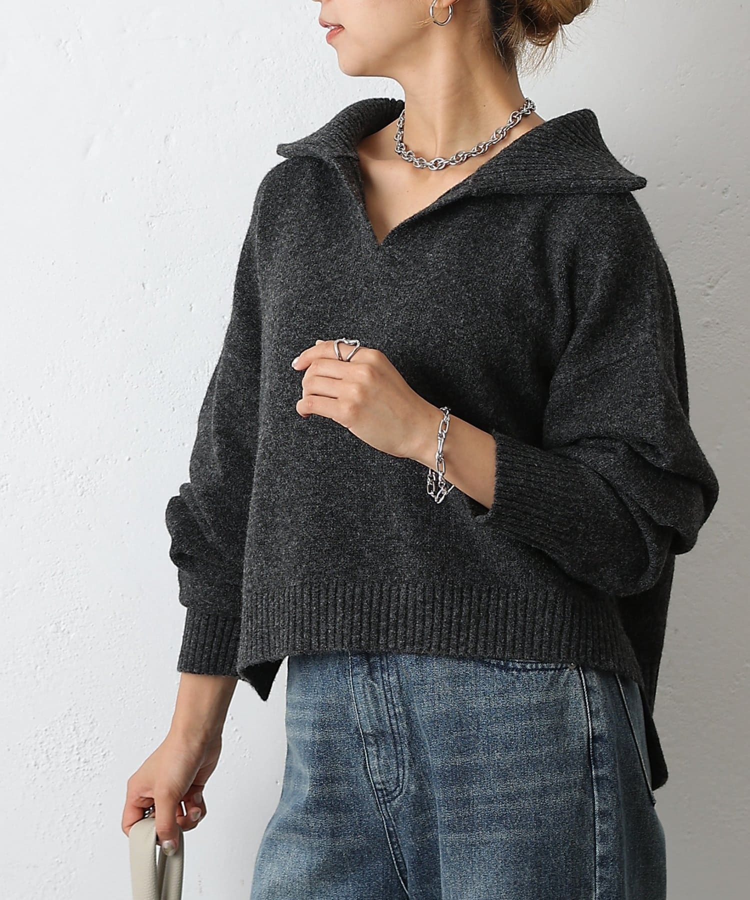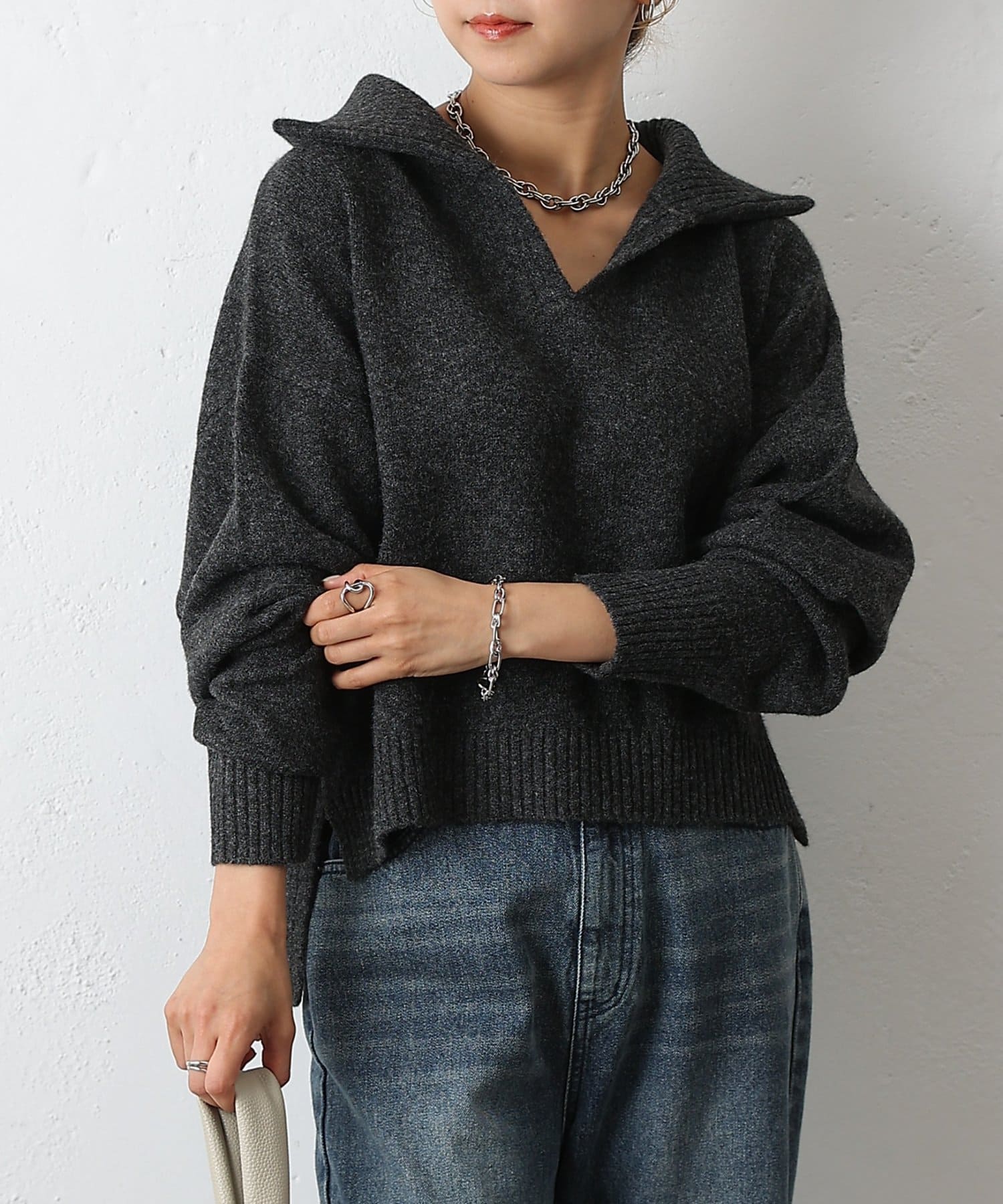 やわらかなモチモチ素材と、きちんと見えする衿付きデザインが魅力の衿付きスキッパーニットが登場。