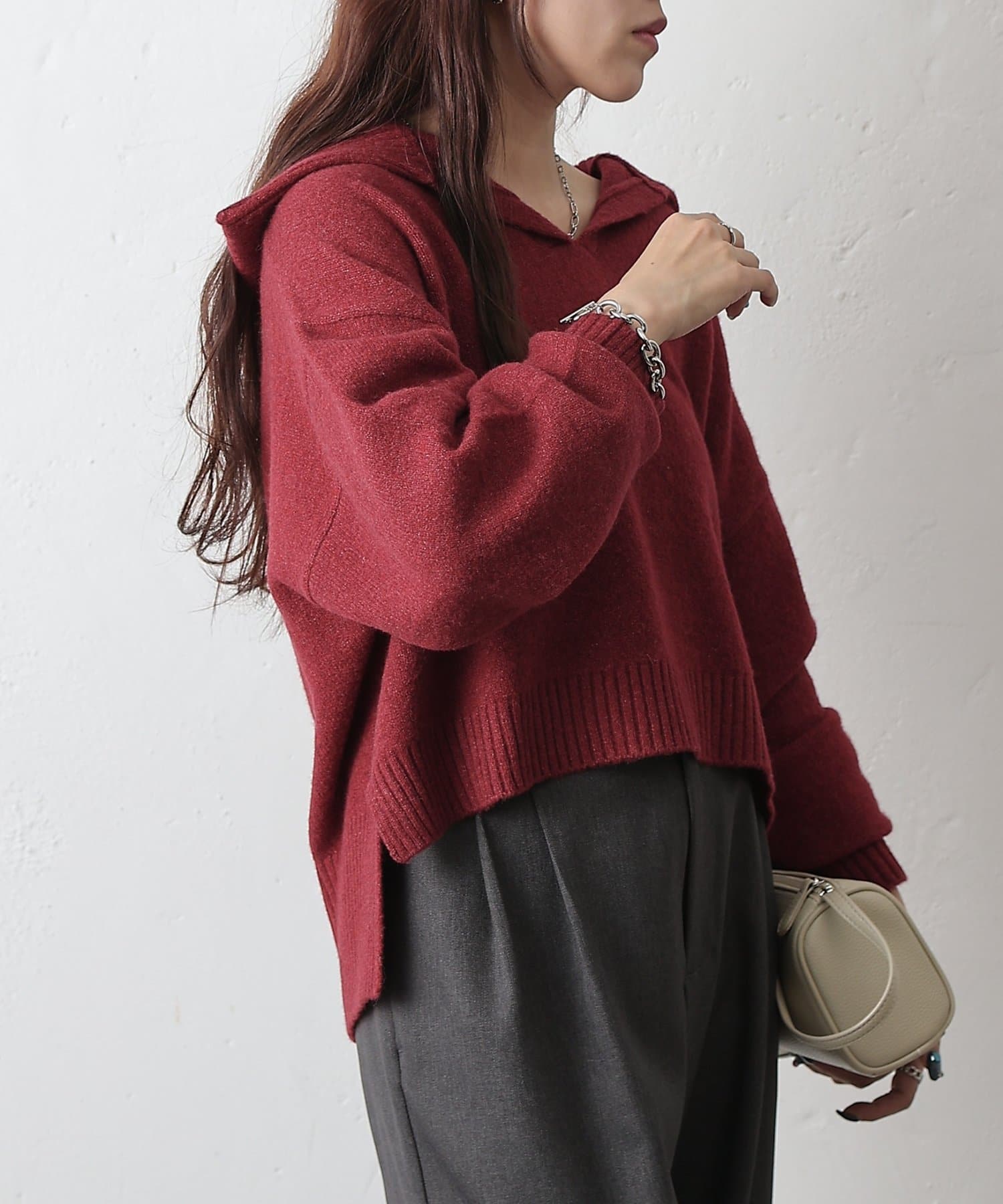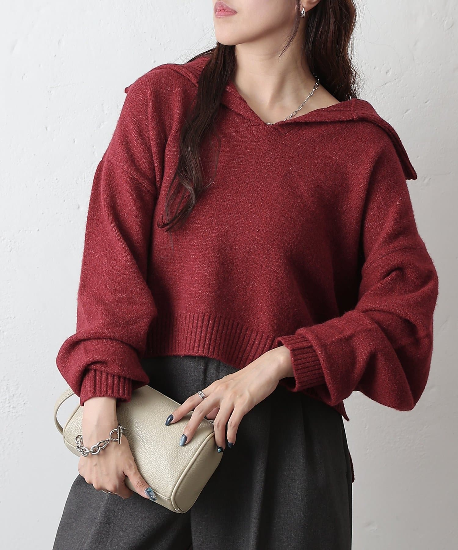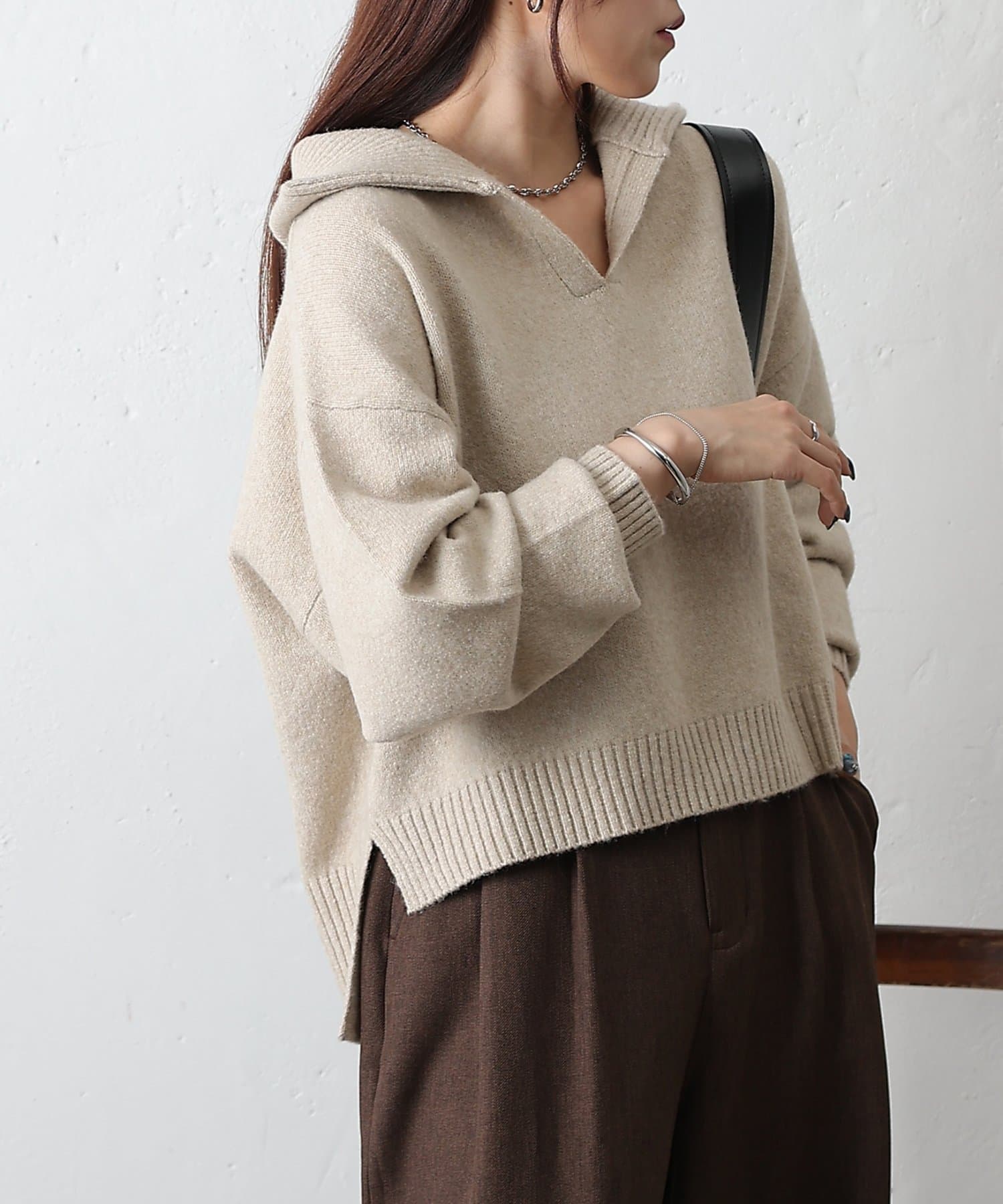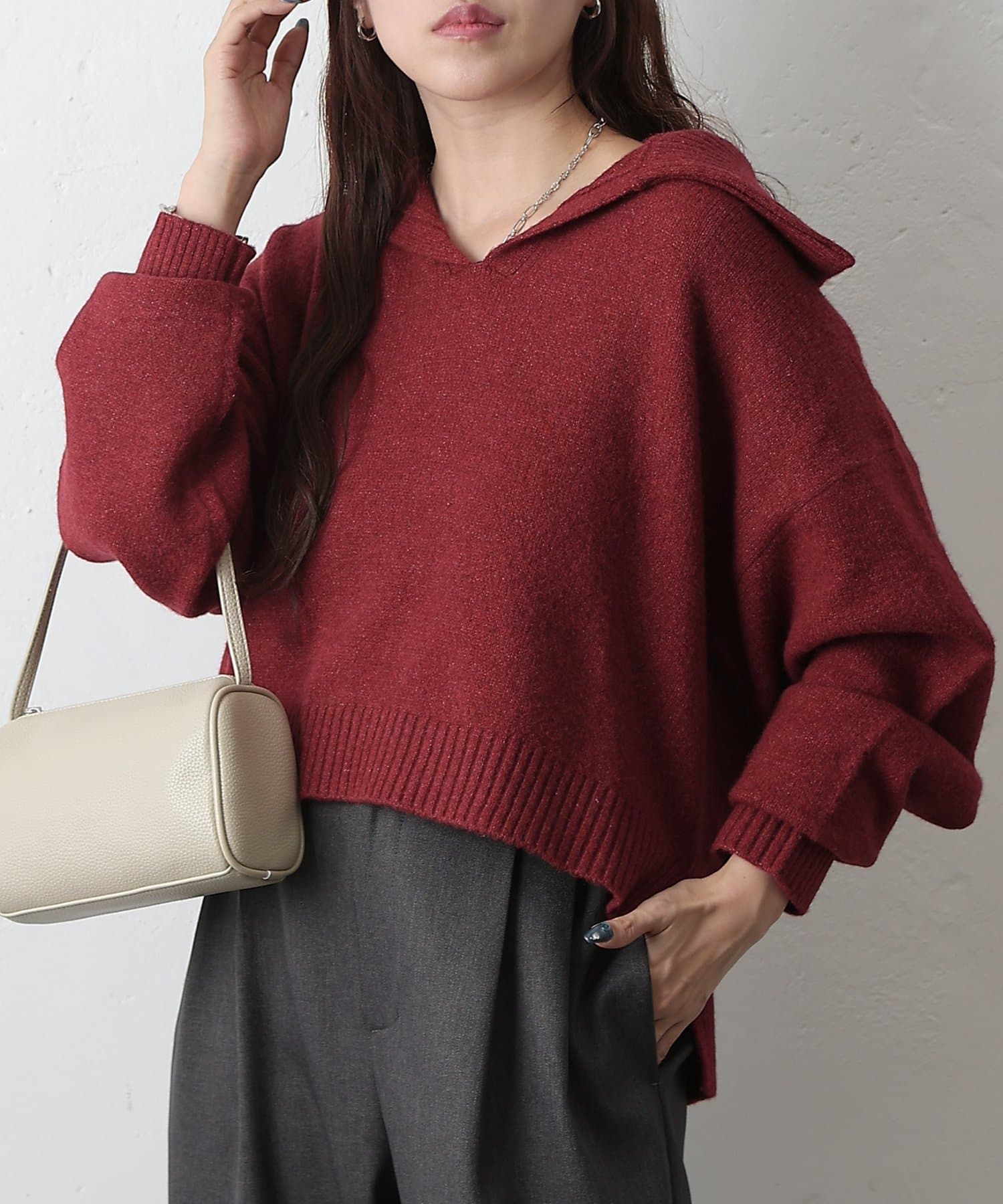 やわらかなモチモチ素材と、きちんと見えする衿付きデザインが魅力の衿付きスキッパーニットが登場。