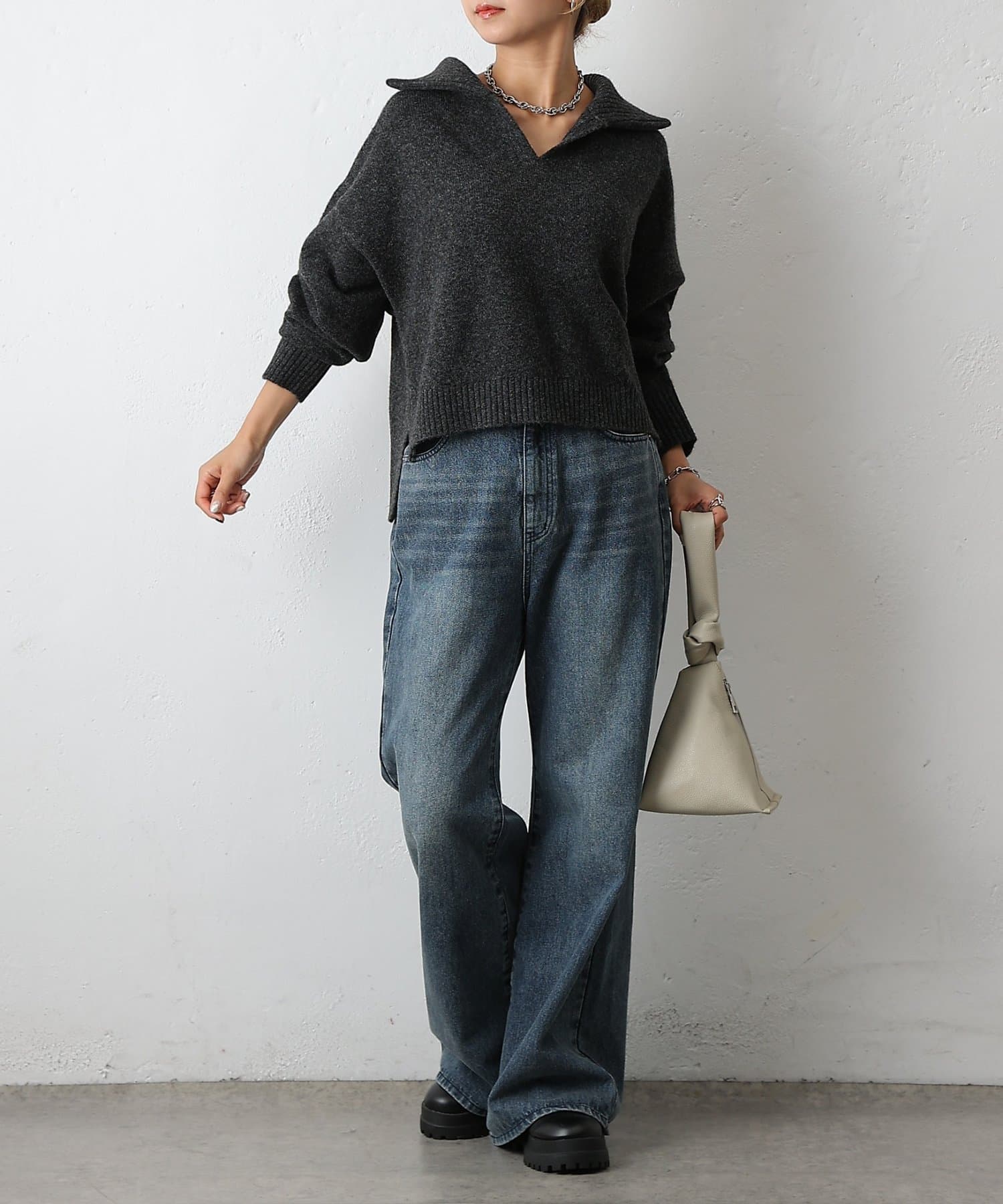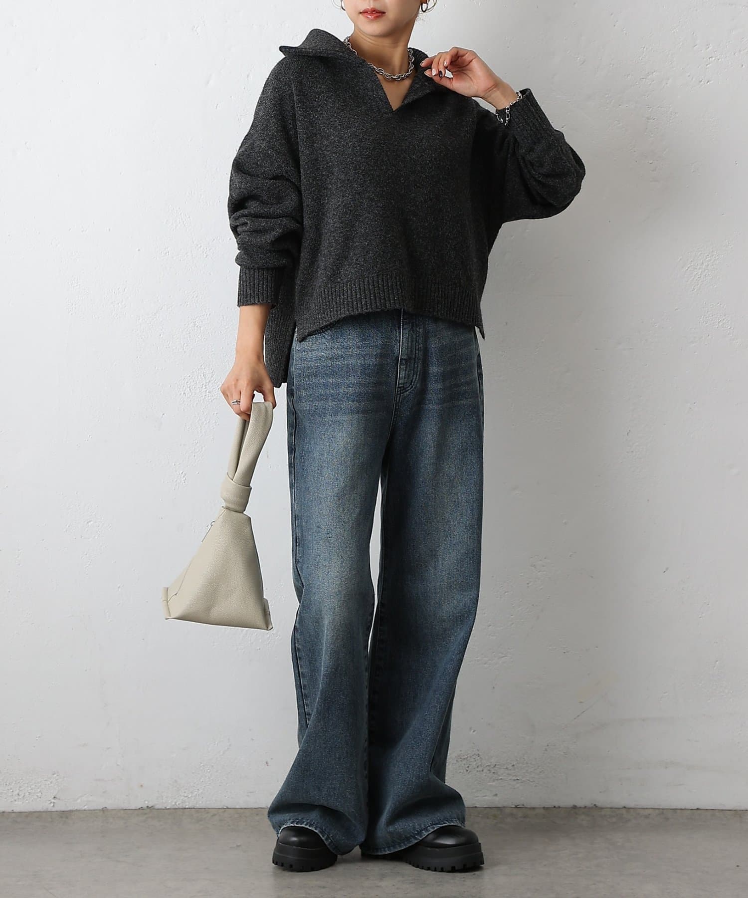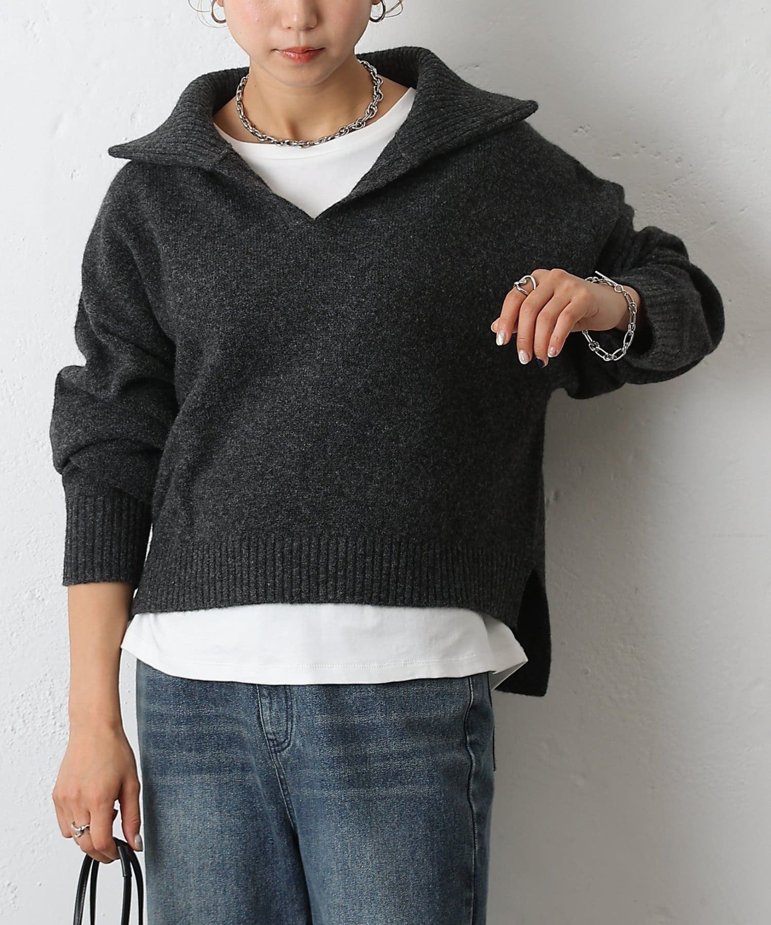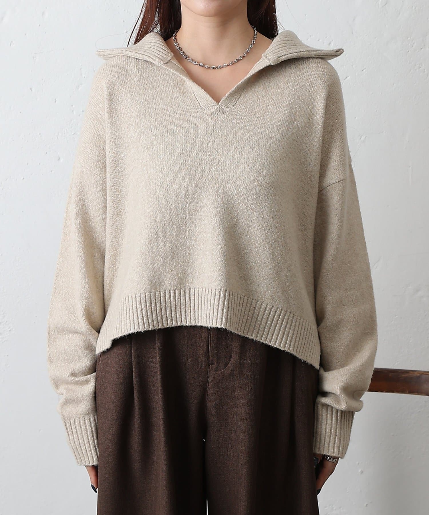 ・衿付き×スキッパーデザインで抜け感と上品さを両立