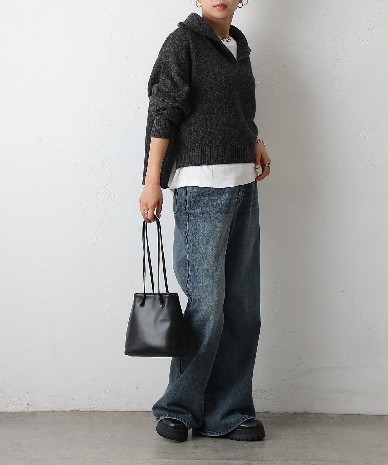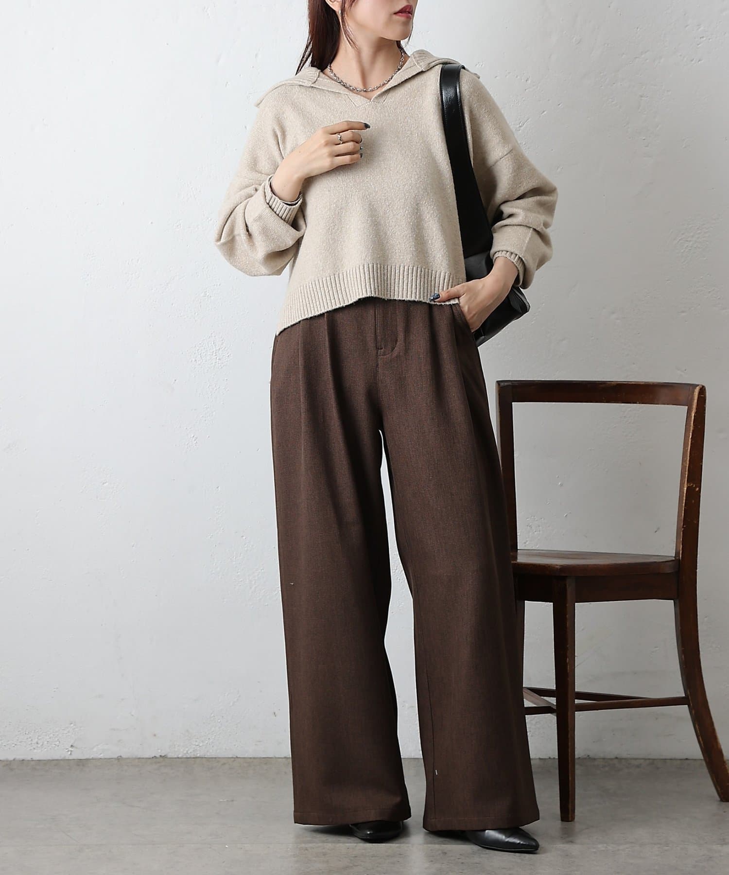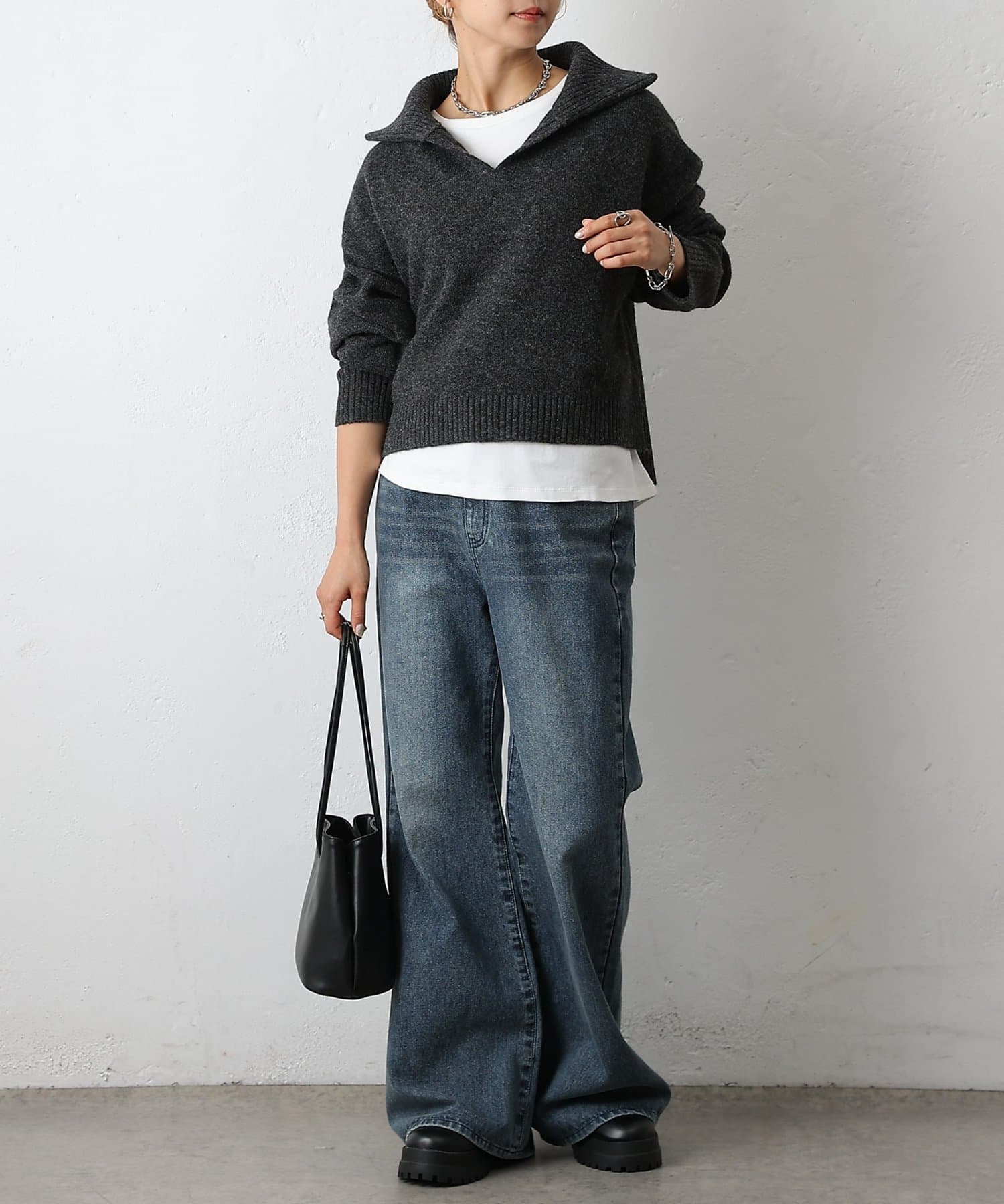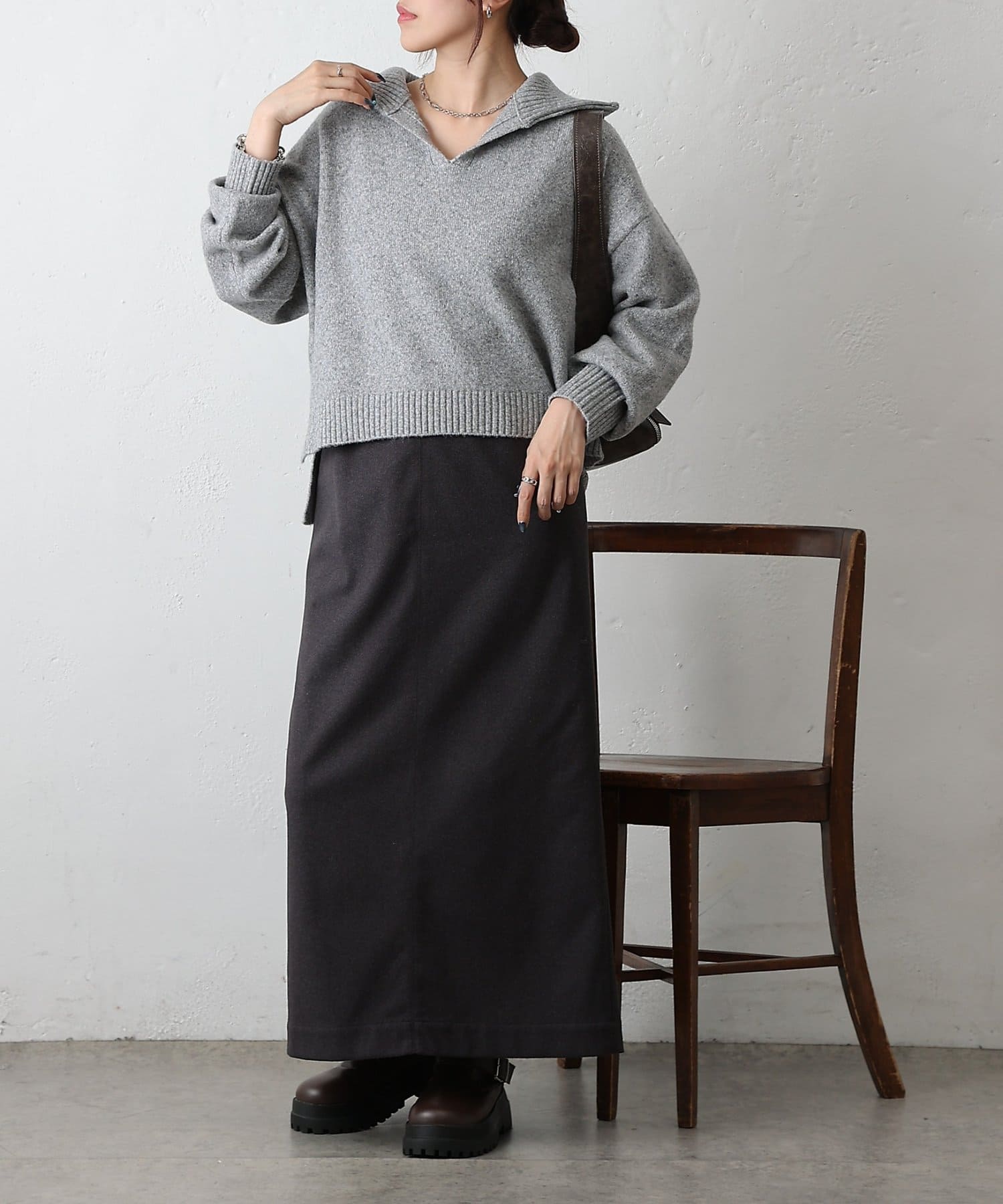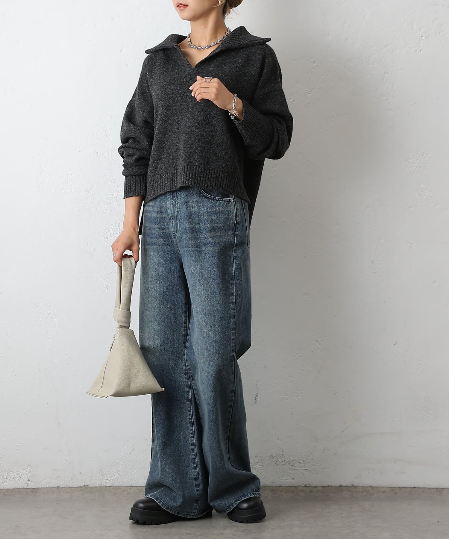 ・衿付き×スキッパーデザインで抜け感と上品さを両立