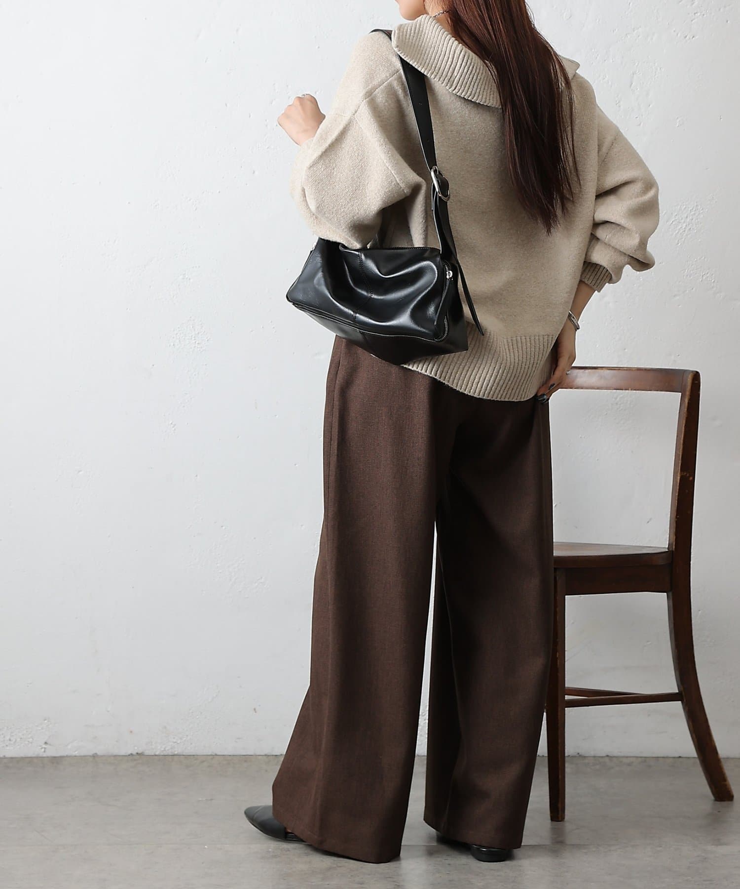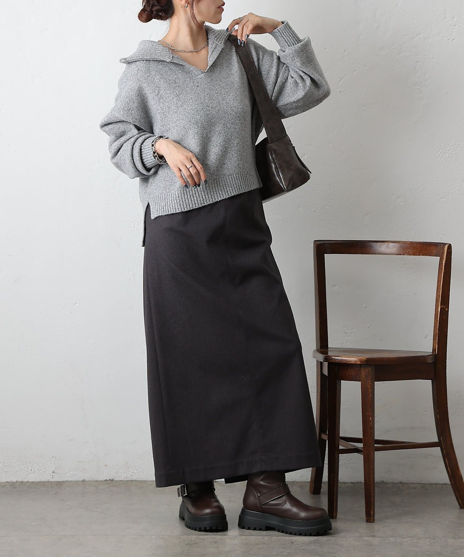 ・体のラインを拾いにくい落ち感シルエットでスタイルカバー