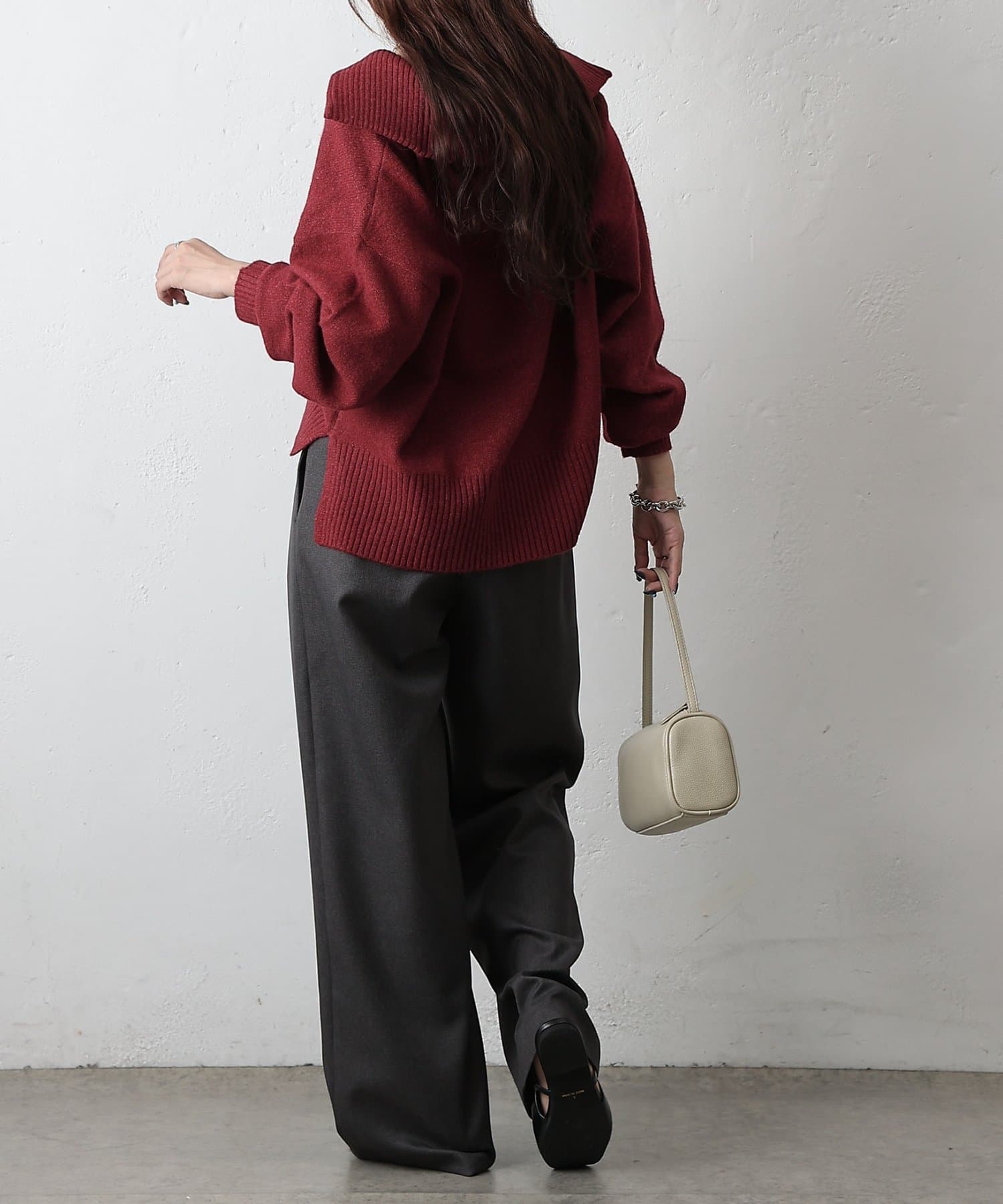 後ろはヒップラインまでしっかりカバーしてくれる安心感のある丈感で、気になる腰まわりもさりげなくカバーしてくれます。
